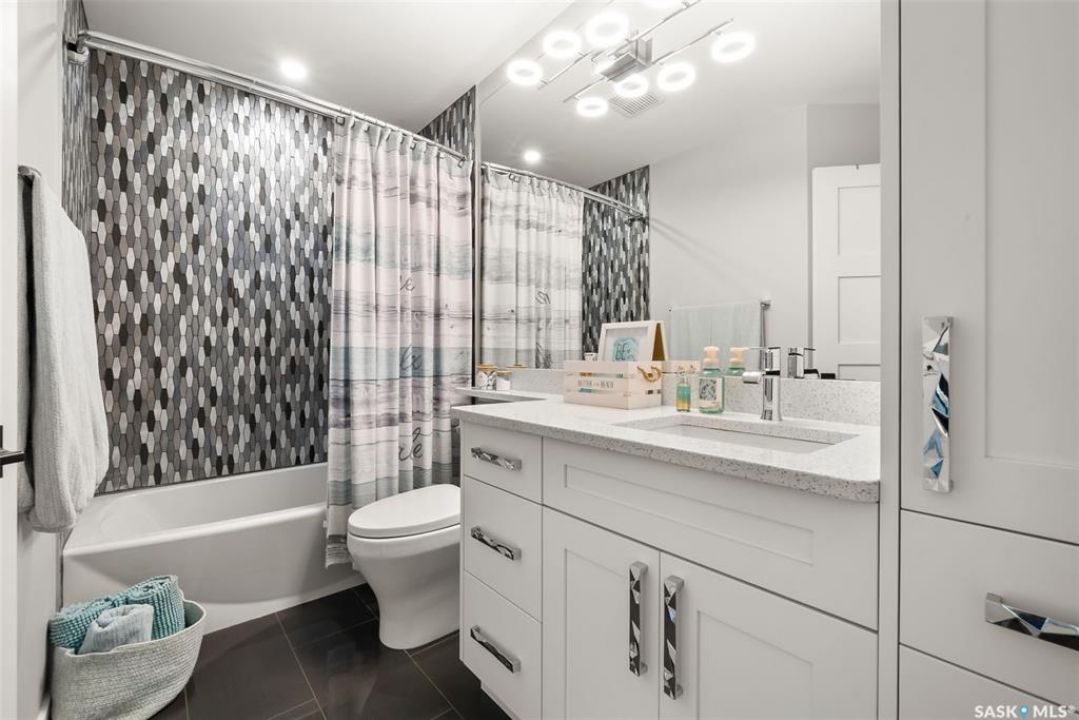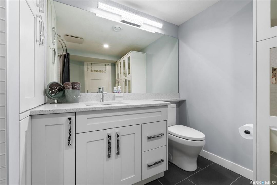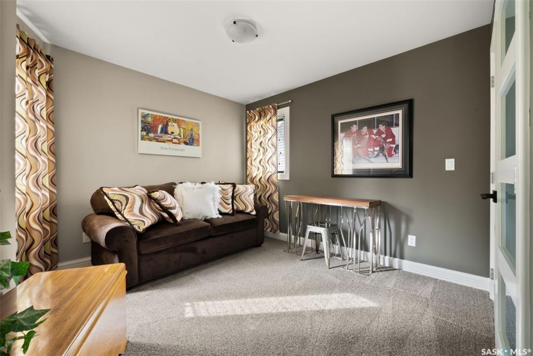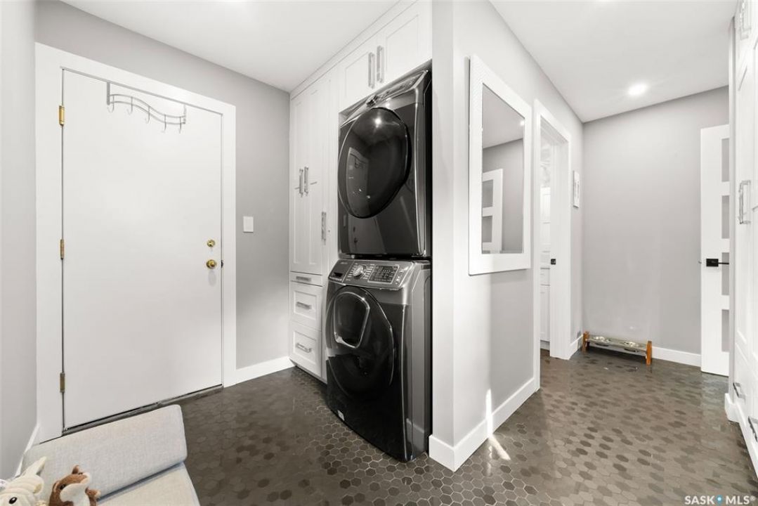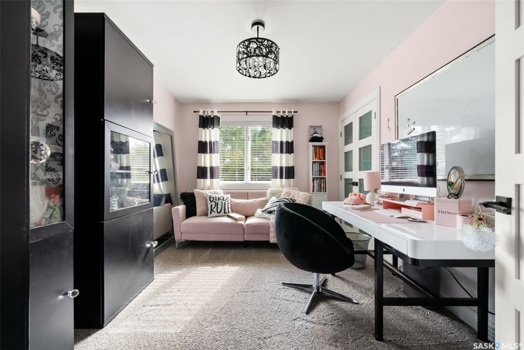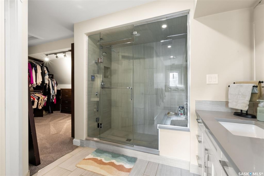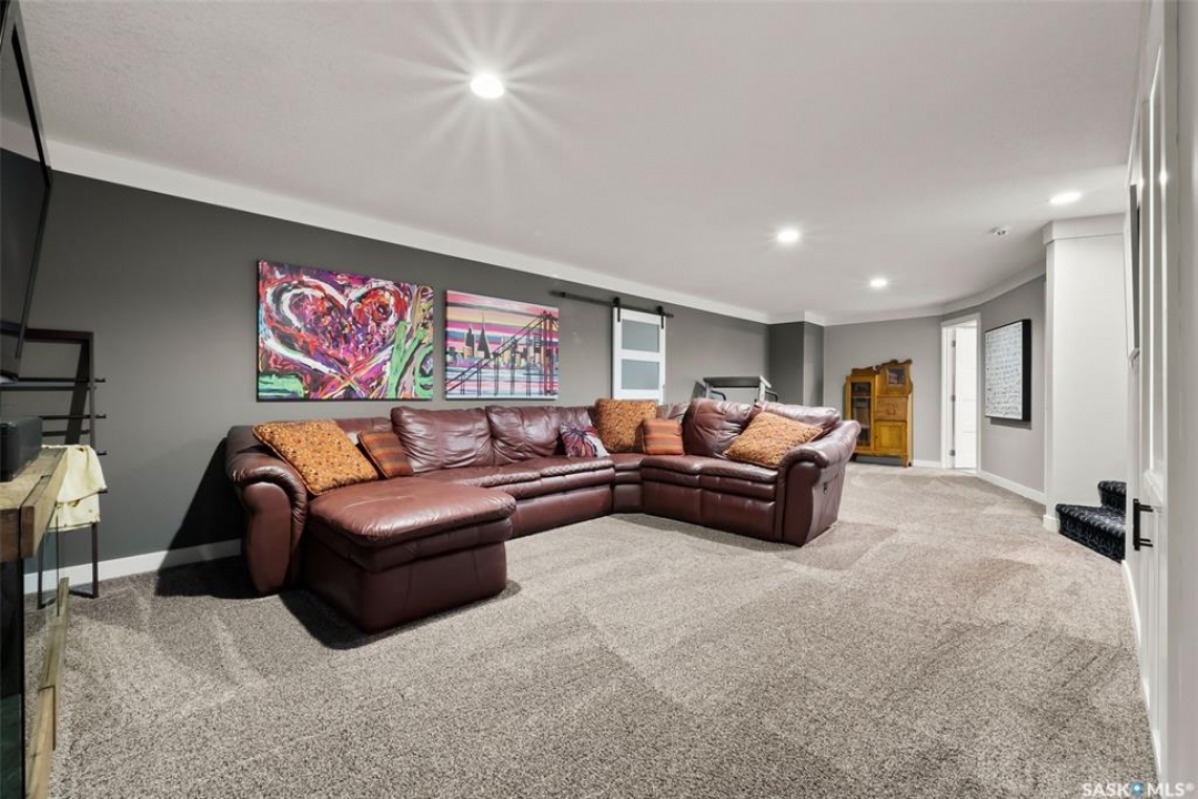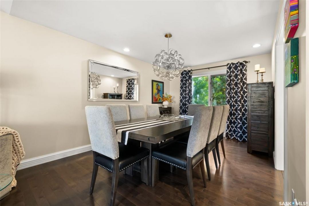 Don't miss this elegant and spacious two-storey home in prestigious Wascana View! This stunning custom-built property offers 5 bedrooms plus a large bonus room, with an exceptional floor plan and numerous upgrades. A brick façade, offset double attached garage & lush landscaping create impressive curb appeal. Inside, a sunken foyer with granite tile sets the tone. Formal living and dining rooms feature vaulted ceilings and large picture windows, filling the space with natural light. Sleek kitchen showcases Italian cabinetry, granite countertops, pot lighting, a two-tiered island with 5-burner gas cooktop and pop-up fan, built-in KitchenAid oven, built-in Panasonic microwave, and newer dishwasher (2019). Composite stairs lead to the outdoor patio, while the adjacent family room highlights a stacked-stone fireplace and media area. Custom mudroom/laundry is complete with stacking washer/dryer & built-in lockers.2-pc powder room with stylish finishes completes the main floor. The heated, boarded garage offers two direct entries to the home, including one that leads directly to the basement. Upstairs, the bonus room with gas fireplace provides flexibility as a cozy retreat or additional bedroom. The luxurious primary suite includes a spa-inspired ensuite with steam shower, double vanity, new window, and dressing area, plus a custom ClutterX walk-in closet. Two additional bedrooms and a fully renovated 4-pc bath with ceramic tile and granite vanity complete the level. Developed lower level features a large rec room, two more bedrooms and a stylish updated 4-pc bath. A hidden bookcase door reveals a secret craft room. Backyard is an entertainer's paradise with a spacious stone patio and bar area surrounded by mature landscaping. Additional upgrades include new flooring throughout most of the home, smart lighting with Lutron dimmer system, EcoBee thermostat, security system with cameras, and Telus monitors. Luxury living in one of Regina's most desirable neighbourhoods!