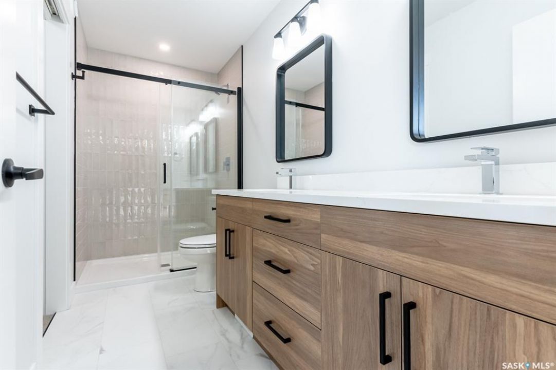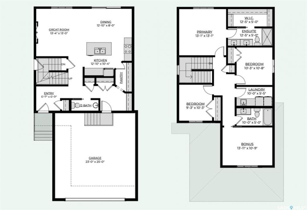 Welcome to The Escada! This beautifully designed 1,848 sq. ft. Step inside from the fully insulated garage into a convenient mudroom that leads directly to the walk-through pantry. The modern kitchen features custom cabinetry, quartz countertops, a stylish backsplash, and a spacious island. An oversized patio door in the dining area and large living room windows fill the space with natural light, while the fireplace creates a cozy atmosphere for winter evenings. Upstairs, a bonus room at the front of the home offers additional living space. The primary bedroom, located at the back, boasts a spacious walk-in closet and a 5' custom tiled shower in the ensuite, complete with dual sinks and extra vanity storage. Two additional bedrooms, a laundry area with a cabinet and sink, and a well-appointed main bath complete the second floor. Outside, the home includes a concrete driveway and front landscaping. Built by Edgewater Homes, this property is covered under the Sask New Home Warranty for peace of mind. Please note: Photos may not be exact representations of the home and are for reference only. Errors and omissions excluded. Prices, plans, and specifications are subject to change without notice. PST & GST included with rebate to builder.
