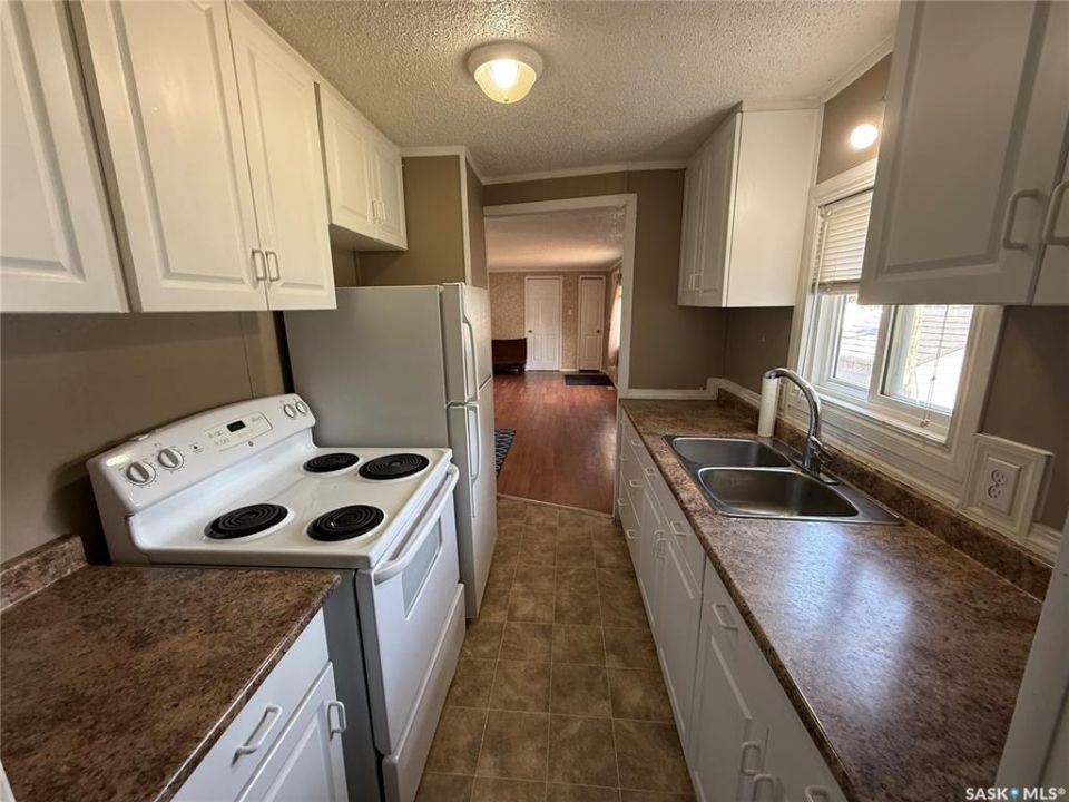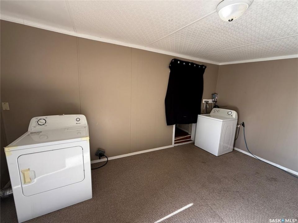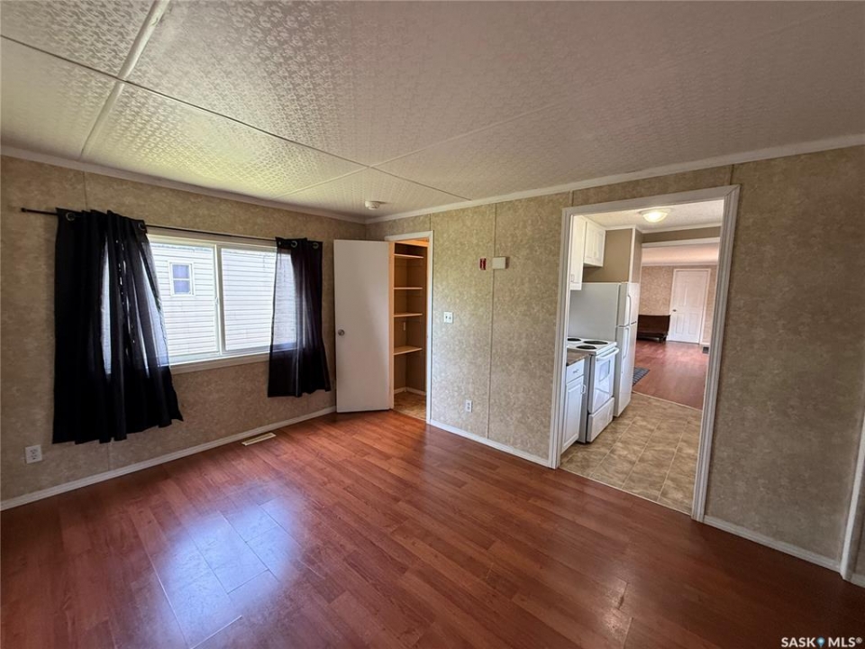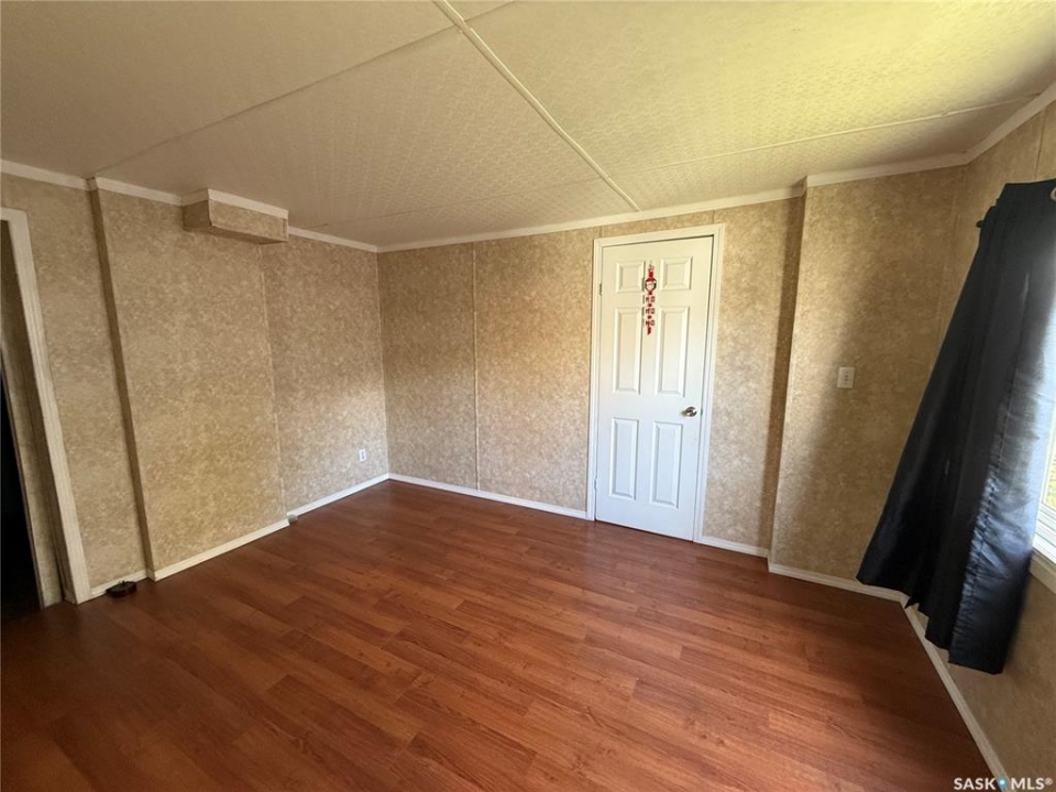 36 Heritage Estates, Kindersley. **Seller to pay the first 3 months lot rent for a buyer** This 1975 mobile home is approximately 980 square feet and has been nicely updated, waiting for its new owners! Two bedrooms, the front bedroom offers a 2 piece ensuite. Living room and dining space have access to the side entrance. The kitchen has nice updates such a new cabinets. There is a bonus room that allows space for a toy room or office. The main 4 piece bath has had an updated tub and surround. The master bedroom, laundry addition and storage complete the mobile. Features to this home include an air conditioner (wall), new deck as well as newer siding. Call today for more information and to schedule your tour! Lot rent- $725/month which includes water, town tax, sewer and garbage pickup.