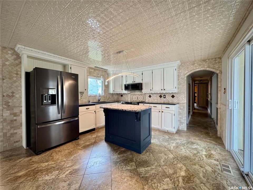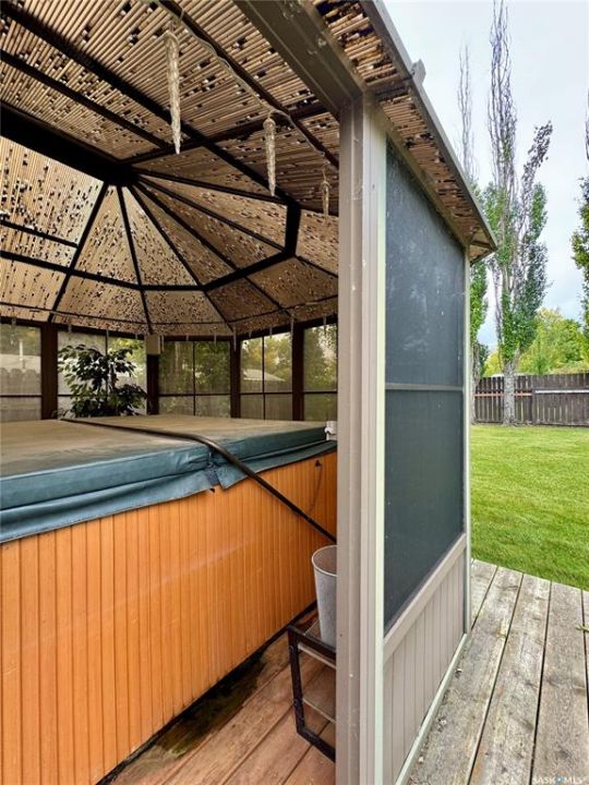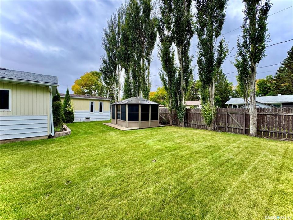 Welcome to Your Dream Home on Cottonwood Crescent! Step into a one-of-a-kind property in Churchbridge, Saskatchewan, where meticulous design meets unmatched comfort. With three spacious bedrooms, the primary suite is elegantly appointed with dual patio doors, creating a graceful entry. The bathroom is a serene retreat, boasting high-end finishes and infloor heat, ensuring comfort year-round. The heart of the home is the gourmet kitchen, featuring stone countertops, a double oven, and a uniquely designed sink, perfect for culinary enthusiasts. Two inviting living rooms offer flexible spaces—one cozy and intimate, the other ideal for larger gatherings. A see-through natural gas fireplace elegantly connects the living room, dining area, and kitchen, adding warmth and charm. Outside, you'll find your own private oasis: a hot tub nestled in a secluded gazebo, a fully fenced yard, and a covered deck with natural gas BBQ hookups, perfect for entertaining. Additional highlights include two garages, a heated studio space for business or creative endeavors, and whole-house reverse osmosis for pristine drinking water. With energy-efficient PVC windows and a tankless water heater, this home perfectly balances style and modern convenience. Don't miss your chance to make this exceptional property your own!