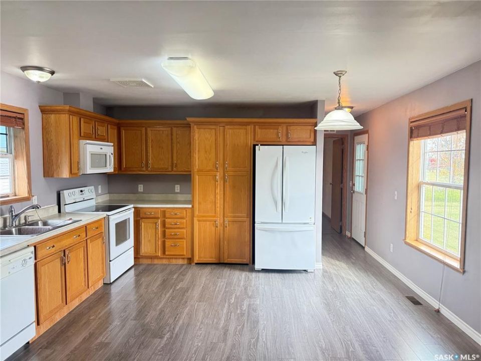 Move-in ready and freshly painted!! This charming home offers both comfort and functionality. Featuring 3 bedrooms, including a spacious primary suite with a large 4-piece en-suite bath, this home is designed for everyday convenience. A unique hidden laundry room, cleverly accessible from the kitchen, adds a touch of character and practicality. Outside, enjoy the deck and a shed, perfect for storage and hobbies. The leased lot can be purchased so ask us how if you wish to purchase the land as well! With thoughtful updates and plenty of space, this property is ready for its next owner to call home or start making a return on investment dollars! Call us today! We have a video tour available!