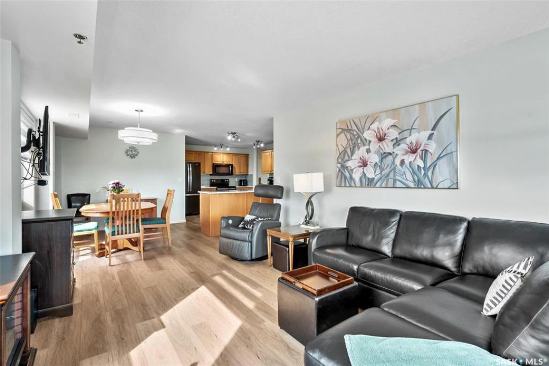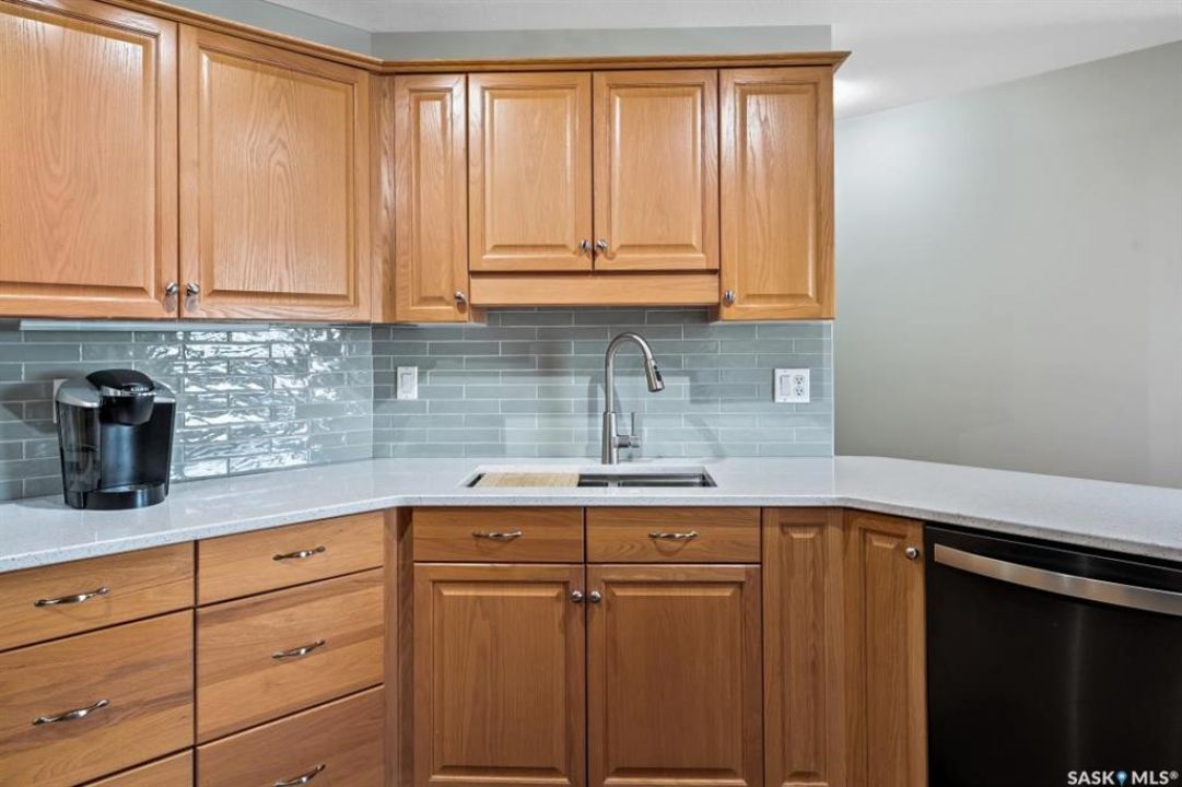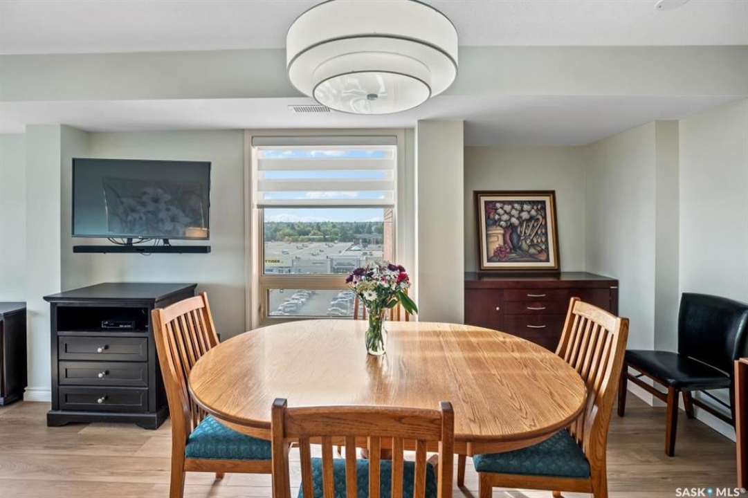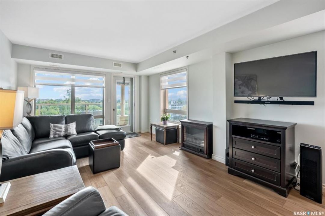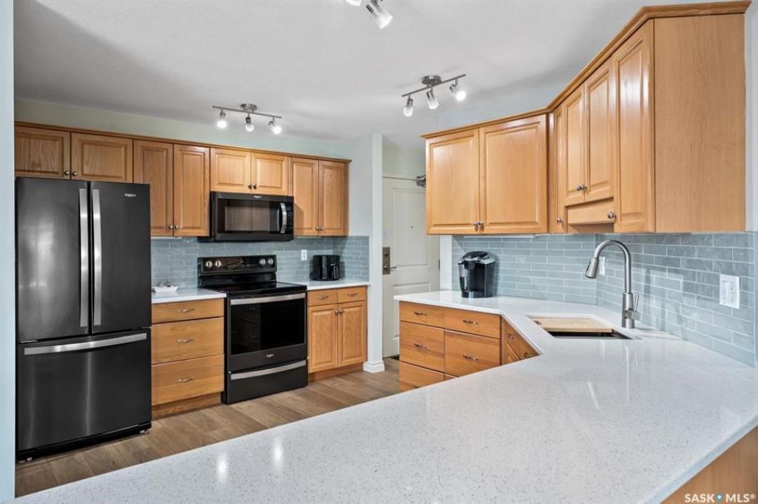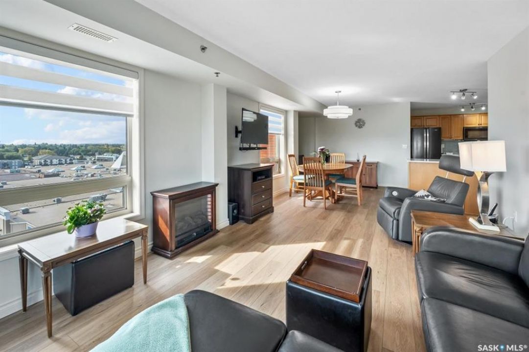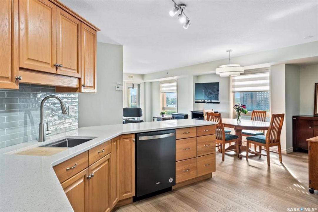 Well-Sought After Fremai Tower Corner Unit – 8th Floor, Southeast Exposure This beautifully renovated 2 bedroom, 2 bathroom corner unit offers stunning southeast views from the 8th floor. Recent updates include new vinyl plank flooring throughout, lots of new lighting, quartz countertops, and a stylish glass tile backsplash. The spacious kitchen features light oak cabinetry, sleek black stainless steel appliances, and an open design flowing seamlessly into the dining and living areas. Natural light fills the space through four large windows, showcasing the park views and creating a bright, welcoming atmosphere. Step through the French door onto the large east-facing deck—perfect for enjoying your morning coffee, or a cool, shady summer evening. The primary suite boasts a generous walk-in closet and a private 3-piece ensuite. The unit also includes one underground parking stall and a large storage room. Fremai Tower offers outstanding amenities: � � � �• � � � �Multi-purpose room � � � �• � � � �Two guest suites � � � �• � � � �Fully equipped exercise room � � � �• � � � �Scooter parking All of this is just steps away from the shopping and dining at Market Mall. ?? As per the Seller's direction, all offers will be presented on September 29, 2025, at 2:00 PM. This unit is truly a must-see!
