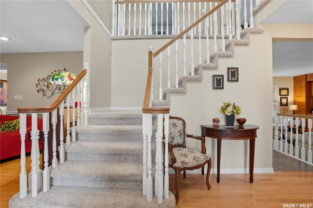 Located in prestigious Wascana View, this exquisite 2-storey residence built in 1989 offers 2,382 sq ft backing onto serene green space & a walking path. Step into 2095 Wascana Greens & experience comfortable living with 5 bedrooms, 4 baths, & a truly move-in ready home. A front veranda adds warm curb appeal & welcomes you into a beautiful home where natural light fills each room. The living room with gas fireplace & hardwood floors leads to a formal dining area also adorned with hardwood – perfect for hosting. The kitchen is bright, with ample cabinetry, an eat-up island, & pantry. A large window overlooks the oasis of a backyard & is a must-see! Continuing on the main floor is a cozy, sunken family room with built-in cabinets, a 2nd gas fireplace, hardwood flooring, & stunning views of the yard with colonial shutters. A charming 2 pc bath, large front walk-in closet, & main floor laundry/mudroom with direct entry to the garage complete this level. Upstairs, four bedrooms - all very generous in size adding great value to such a lovely home. The large loft area above the garage easily accommodates as a bedroom or could be a fabulous bonus room. All bedrooms have walk-in closets & one bedroom has a balcony overlooking the backyard. The primary bedroom with unique lines of design offers an upgraded 3 pc ensuite with granite. Lastly, a large full bathroom with granite showcases a very well-designed upper floor. Vaulted ceilings soar above the airy stairwell adding sophistication to a lovely area of the home. A fully developed basement offers a versatile rec room (perfect for a pool table or games area), a 5th bedroom, 3 pc bath, & large storage/utility areas. The fenced yard is simply a zen dream - featuring a composite deck, manicured greenery, fire pit area, stampcrete patio/walkway, mature trees/perennials, leading to a walking path/green space. Upgrades incl: windows, furnace, some new appliances, shingles, & more! Location & neighborhood are fabulous!