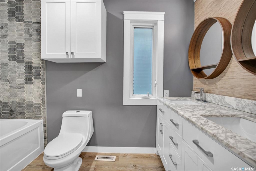 Welcome to 614 McPherson Ave — just steps from scenic river trails and parks. This beautifully renovated home (2022-2023) with great victorian street appeal is loaded with windows has been completely redone with new, stucco, shingles, windows, and upper-level balconies on the exterior. Inside you'll find a spacious kitchen, large living room and huge primary suite with 5 piece ensuite and two separate closets. Vinyl plank flooring throughout. Upstairs offers two more bedrooms (no closets), each with access to either a front or rear balcony, a 4 piece bathroom, and wet bar area, along with additional laundry hook ups. There's also a charming sunroom at the back of the house, perfect for relaxing. The basement offers great potential for rental income with its separate entrance, two bedrooms, a second kitchen, and its own laundry setup. Home comes complete with a double detached garage!