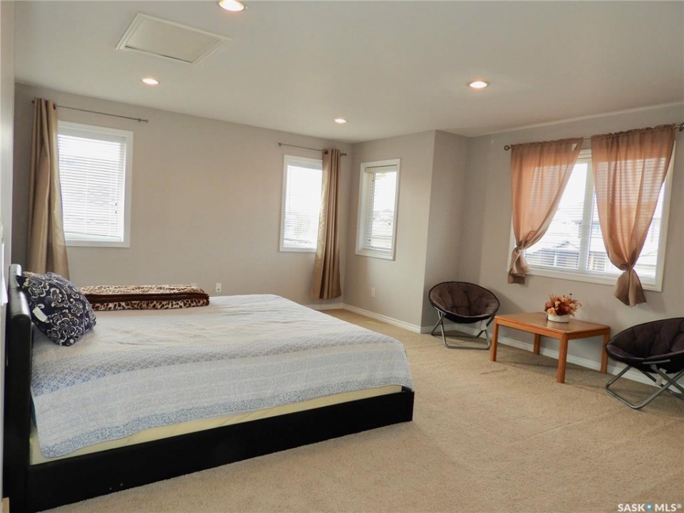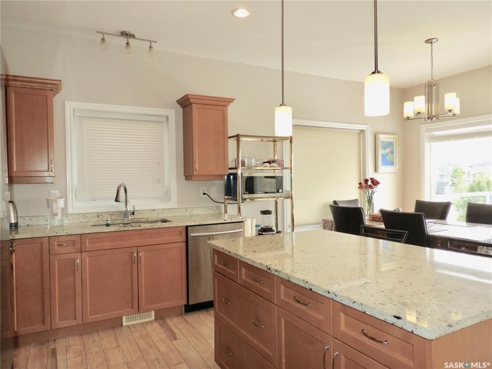 Executive walk-out style family home located on one of the finest lots Stonebridge offers backing Howard Harding Park. This spacious park backing home sits on a oversized rectangular lot. This generous home offers approx 1741 sq/ft through the main & 2nd level, plus a full walk-out level! A total of 5 bedrooms & 3 full bathrooms! The main floor with 9' ceilings offers an inviting foyer, great room, loads of east facing windows & a stone accented gas fireplace. The kitchen has an abundance of cabinet & counter space and large island, dinning overlooks the yard with great views of the park and lake with walking trails. Down the hall to the primary bedroom with large east facing windows, an ensuite with soaker tub and walk in shower. There are 2 additional bedrooms, 4 piece bath and main floor laundry. Up to the 2nd level is a huge bonus room with ample space to add your home theatre or just bonus living space. Down the stairs to the walk-out level offers a family room, a gym area, Den/office flex room, a bedroom (does not have closet), a full bath, 2nd bedroom with Dbl closets, storage/mechanical rooms with laundry, The attached 2 car garage finished. Moving outside, the huge well planned backyard overlooking park, walking trails & lake. The home is 2 min to endless shops and amenities with quick access to circle drive & Hwy 11 South.
