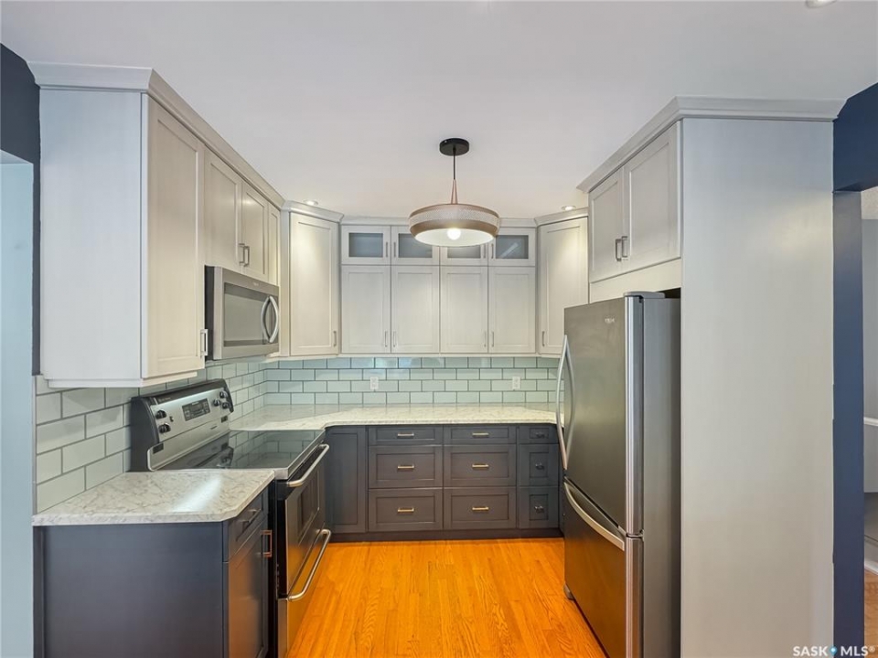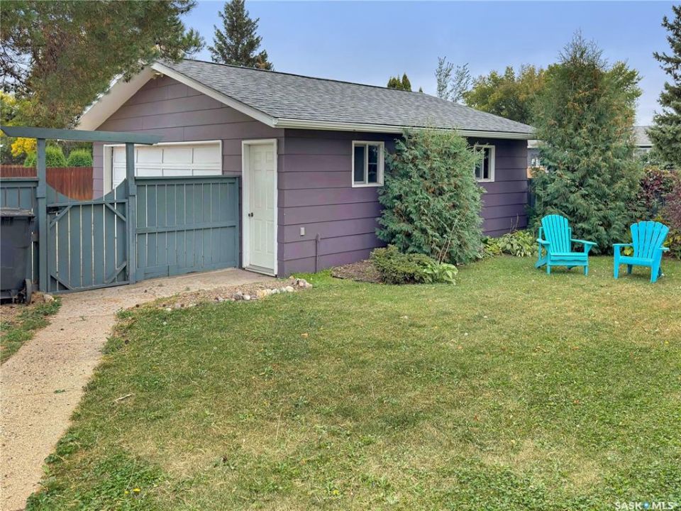 Welcome to a Westside gem offering both comfort and convenience. Perfectly positioned near schools and the scenic Territorial trail, this home combines modern updates with timeless charm. This 3 bedroom 3 bathroom home is designed with a family in mind. The master bedroom features a walk through closet to the 2-pc ensuite. A renovated kitchen with soft close cupboards and island(2019) opens to a light-filled family room addition where a gas fireplace sets the tone for cozy evenings. The Floor to ceiling windows add ample natural light while giving you a panoramic view of the beautifully landscaped back yard. Hardwood floors, an upgraded bathroom (2023), and main floor laundry bring ease to daily living, while a formal living room provides extra space for hosting. With upgrades like a new water heater (2023), garage shingles (2024), improved attic ventilation, plus updated windows, doors, and blinds, you can simply move in and enjoy. Central air (2022) and central vac are thoughtful extras. The finished basement expands your living options with a roomy rec space, 3-piece bath, and multiple flex rooms for hobbies, a gym or work. Step outside to discover mature trees, underground sprinklers, a sunny patio, and a double detached garage with alley access. A well-cared-for home in a neighborhood you'll love. Don't miss out, call today for a private showing.