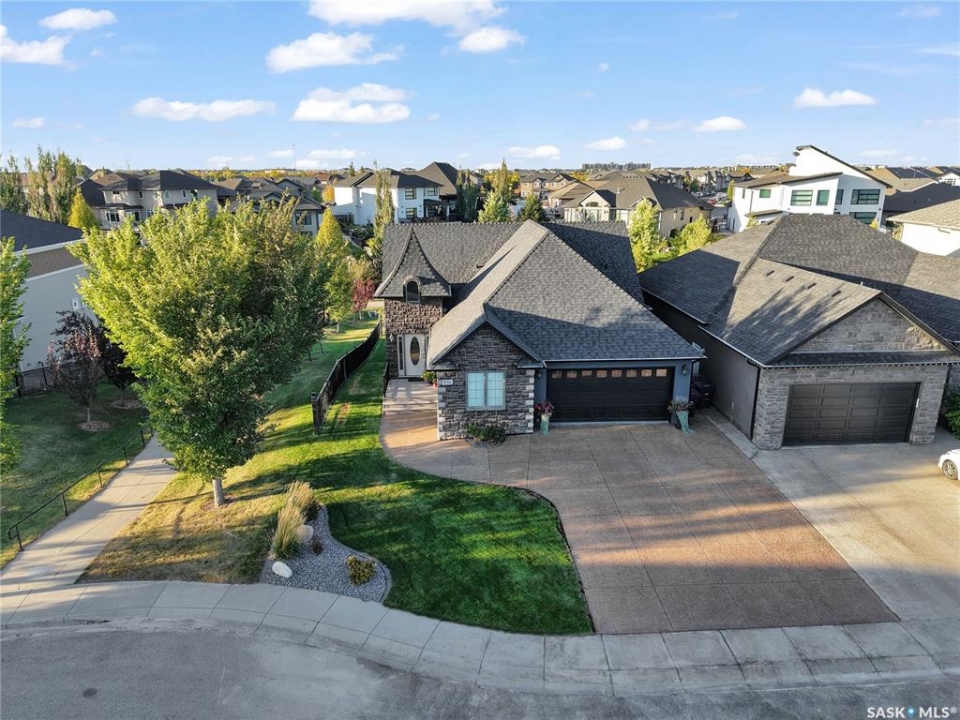 406 Trimble Crescent offers the best of both worlds—bungalow-style convenience with the bonus space of a second storey. This 1,754 sq. ft. one-and-a-half storey home is set on a desirable Willowgrove street, backing onto peaceful green space. The main floor is designed for easy everyday living with 9-ft ceilings, a bright open-concept kitchen, dining, and living area, a 2-piece bath, and a primary suite right on the main level. The primary suite features a spacious walk-in closet and a private ensuite with a jetted tub and tiled shower. Off the main living space, step out onto the massive 40-foot deck that spans the full width of the house—an incredible spot for entertaining, relaxing, and enjoying the backyard and greenspace views. Upstairs, two generous bedrooms each with walk-in closets share a full bathroom, giving family or guests their own private space. The fully developed walkout basement adds even more living options, complete with two additional bedrooms, a full bath, laundry, and a wet-bar that's ideal for hosting or movie nights. The landscaped yard ties it all together, with direct access to the green space behind. To top it off, the triple car garage is fully insulated, drywalled, and heated, with durable epoxy floors—perfect for vehicles, storage, or a home workshop.
