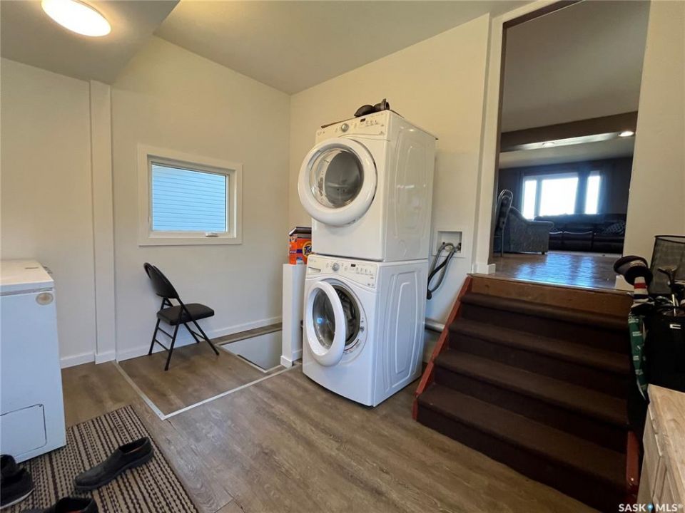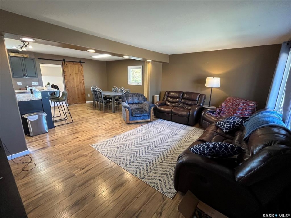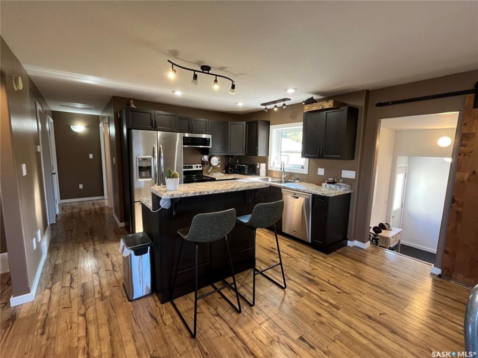 232 5th Ave. W. – Immaculate Bungalow on a Double Lot! Welcome to this beautifully maintained 1,114 sq. ft. open-concept bungalow that is move-in ready and filled with updates. Step inside to find bright, airy living spaces with consistent vinyl plank flooring throughout. The modernized kitchen features a breakfast island with built-in wine rack, sleek stainless steel appliances (2020), and ample lighting. The main floor includes a spacious primary bedroom with his & her closets, a comfortable second bedroom with unique detailing, and a versatile den/office that could also serve as a great butler's pantry. A well-appointed 4-piece bathroom with a large soaker tub, and at the rear a generous porch doubles as a convenient laundry space with a stackable washer and dryer. The basement is framed, insulated, and fitted with subfloor, giving new owners a head start to customize and finish to their taste. Outside, a massive, well-kept backyard, perfect for entertaining or relaxing. A double concrete driveway and patio (poured in 2022) provide plenty of parking and outdoor living space. The oversized single detached garage is partially insulated and finished with plywood. Recent updates and features include: Newer windows (2020), Siding, soffit & fascia (2020), shingles(2020) Garage door opener (2023), garage eves (2023), Central air conditioning, RV parking, microwave hood fan (2023). This property checks all the boxes: priced right, well-kept, updated, and ready for its new owners!