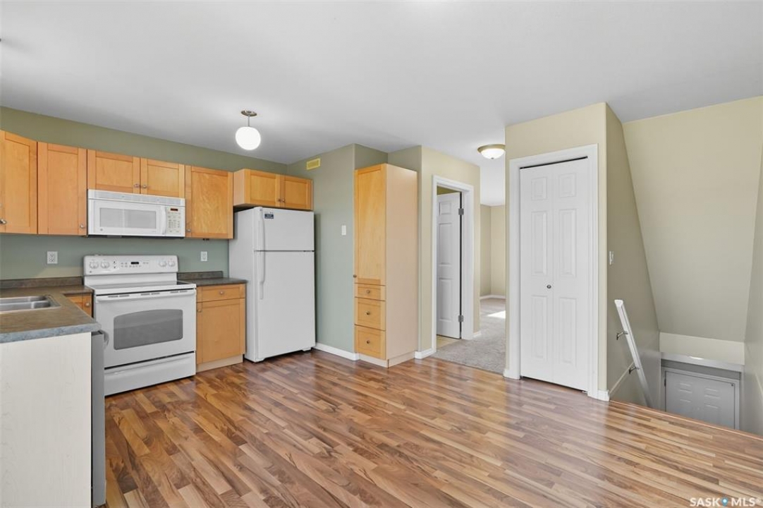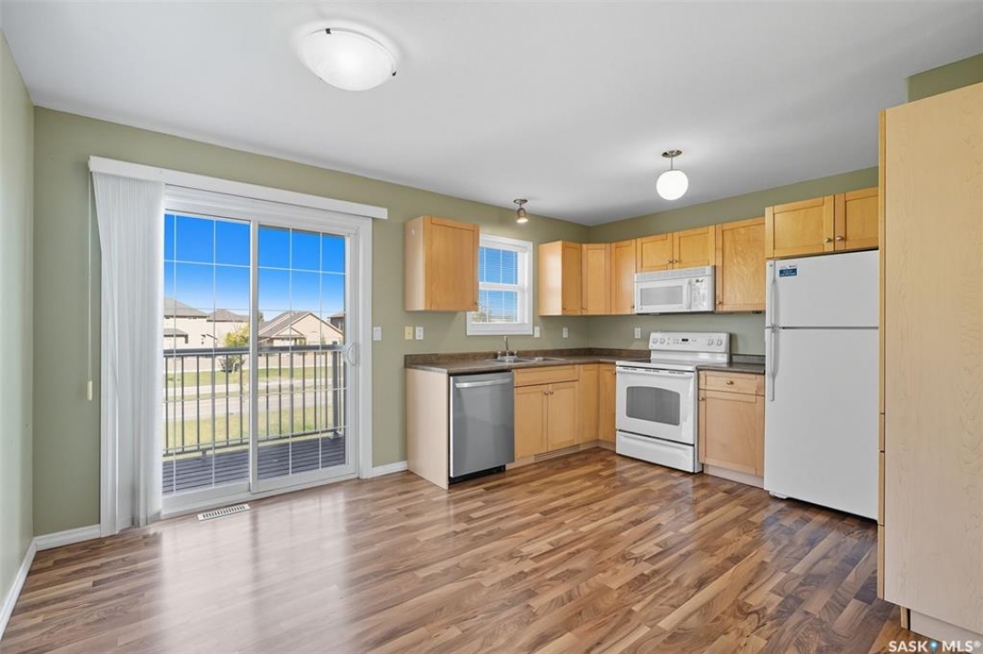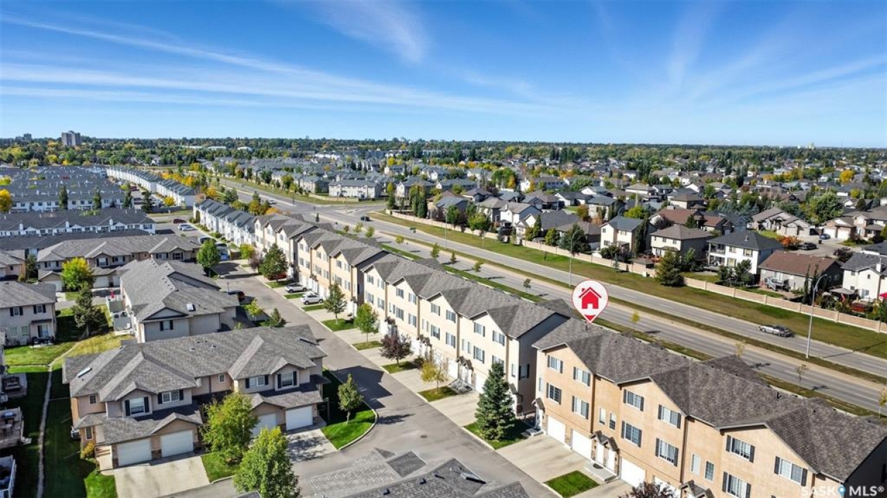 Welcome to 50-118 Pawlychenko Lane, a very well-maintained end-unit townhome offering a functional layout, thoughtful updates, and a convenient location close to all area amenities, close to bus stops, and easy access to 8th Street. With the convenience of an attached garage, you'll appreciate warmer starts and easier routines throughout our Sask winters. Off the garage, you'll find a fully finished flex room, perfectly suited as a home office, workout/yoga space, or additional storage area. The second floor features a bright kitchen and dining area - you'll love the extra windows that a corner unit provides. Adjacent to the kitchen and dining area opens onto a balcony that provides an ideal spot for morning coffee, grilling, or evening relaxation. The spacious living room with large south-facing windows also fills the space with natural light. This level also hosts a 2 piece bath for added convenience and comfort. Upstairs, you'll find two comfortably sized bedrooms, a four-piece bathroom, and convenient laundry, now complete with a brand-new washer and dryer in 2024. Notable upgrades include a new air conditioning unit in 2022, recently cleaned furnace ducts, and central vacuum. This home is move-in ready, and an excellent opportunity for those seeking comfort, functionality, and value in a desirable community.