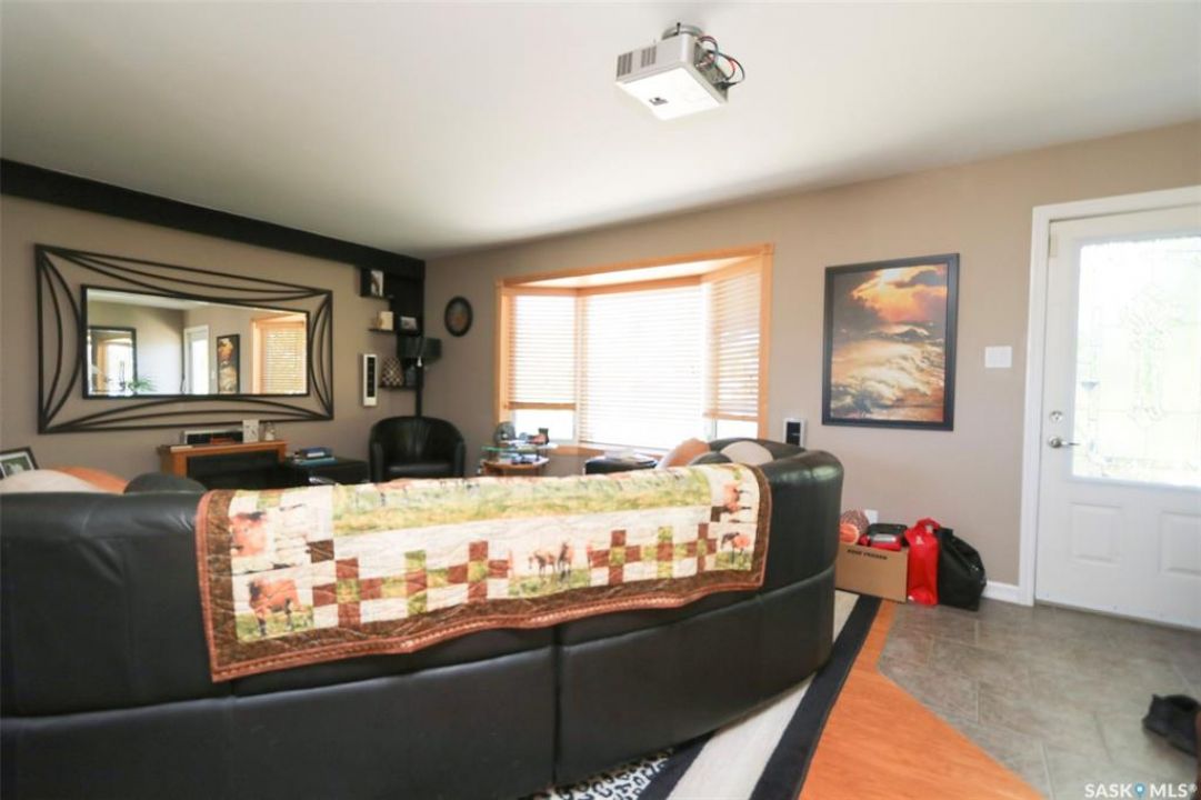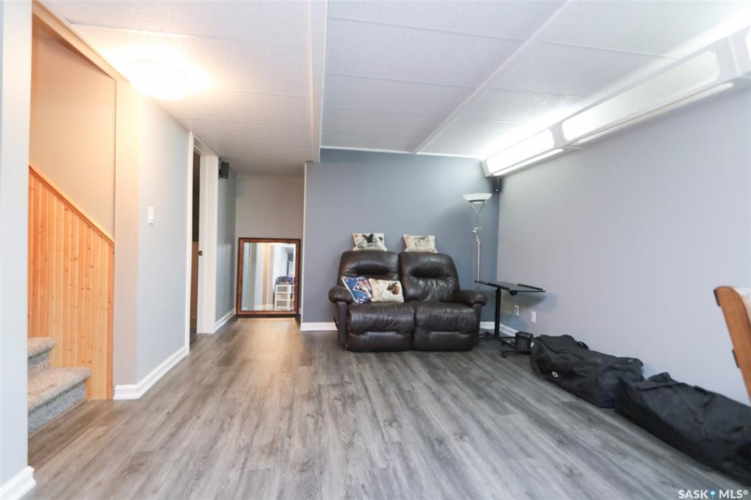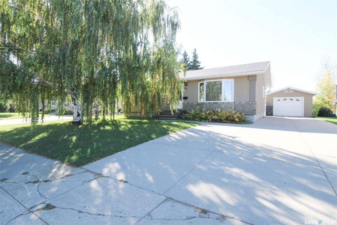 Welcome to 54 Mackenzie Drive, a beautifully upgraded home in Yorkton's sought-after Heritage Heights neighbourhood. This ideal location is perfect for active families—just steps away from newly upgraded pickleball and tennis courts, paved basketball courts, walking trails, and a spacious park. Plus, elementary schools and shopping are all within walking distance. Situated on a generous fenced lot, this property backs directly onto Heritage Heights Park, offering scenic views and added privacy. The 14x42 tandem garage provides plenty of space for two vehicles or the flexibility to create a workshop or hobby area. Inside, the home impresses with modern upgrades and a smart layout. The chef-inspired kitchen is a highlight, featuring extensive cabinetry, ample counter space, and a large sit-up island perfect for hosting and entertaining. The open-concept living room flows seamlessly from the kitchen, making it easy to relax or gather with family and friends. The main floor includes 3 bedrooms and a stunning 5-piece jetted bathroom with direct access to the primary bedroom—your own private retreat. Downstairs, the fully developed basement offers a massive recreation room, an oversized fourth bedroom, a den/office space, a 3-piece bathroom, and plenty of storage options. With durable stucco and brick exterior, updated windows, and a prime location in a family-friendly neighbourhood, this home is truly move-in ready. Whether you're into sports, nature, or just want a quiet, well-located home—54 Mackenzie Drive checks all the boxes.
