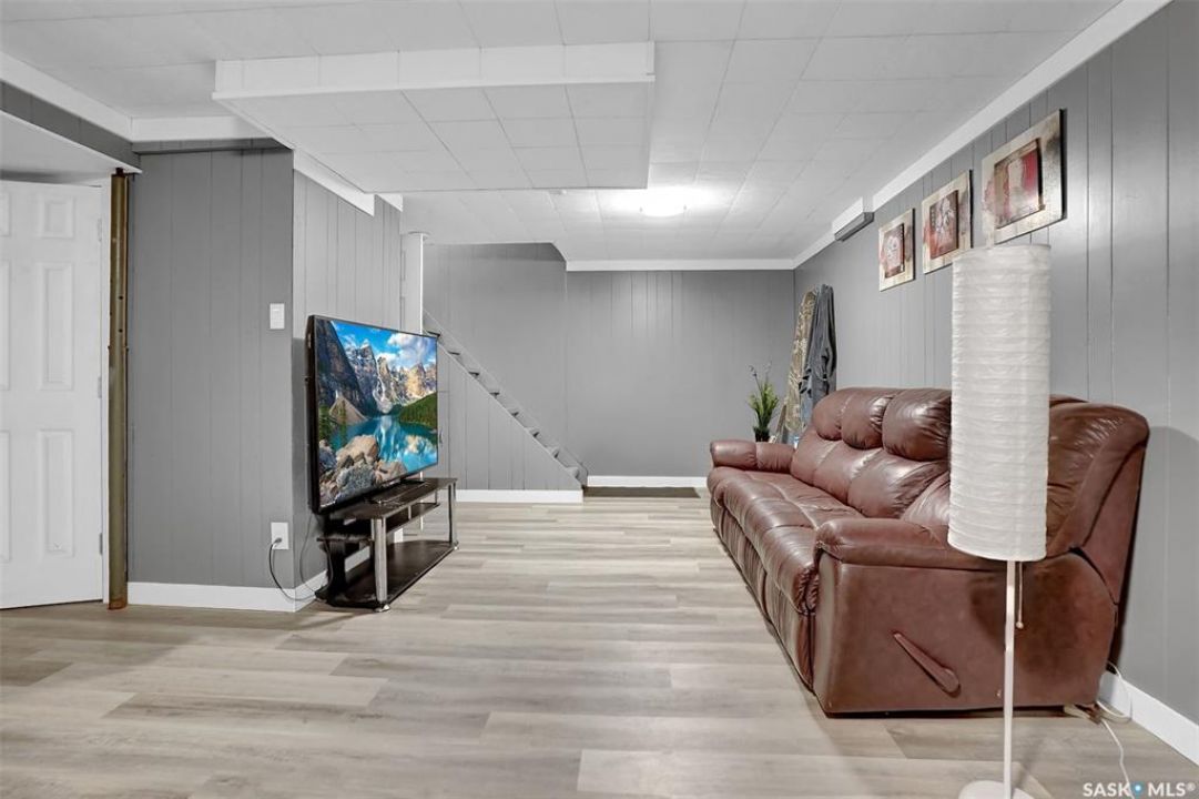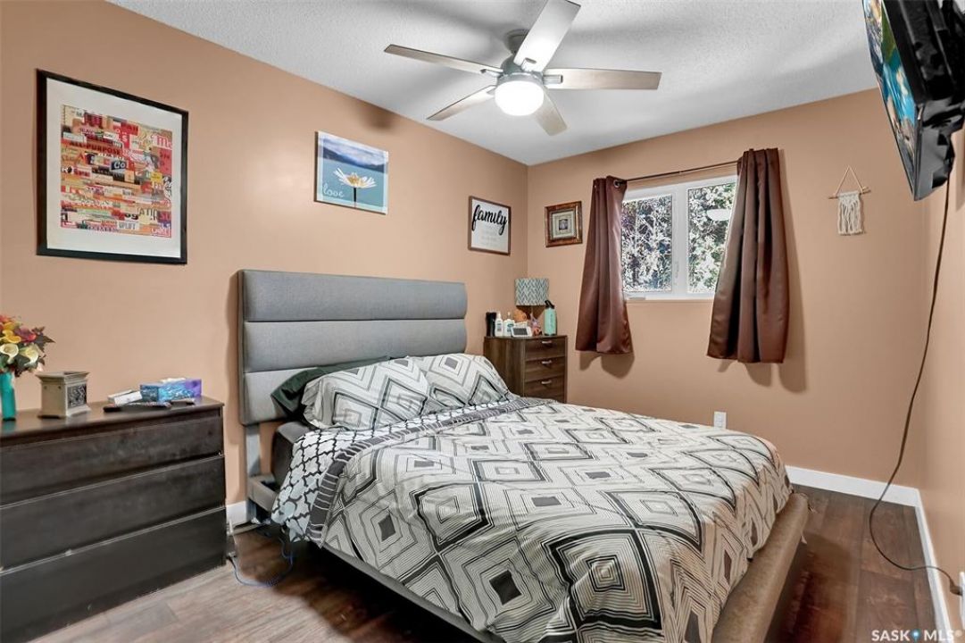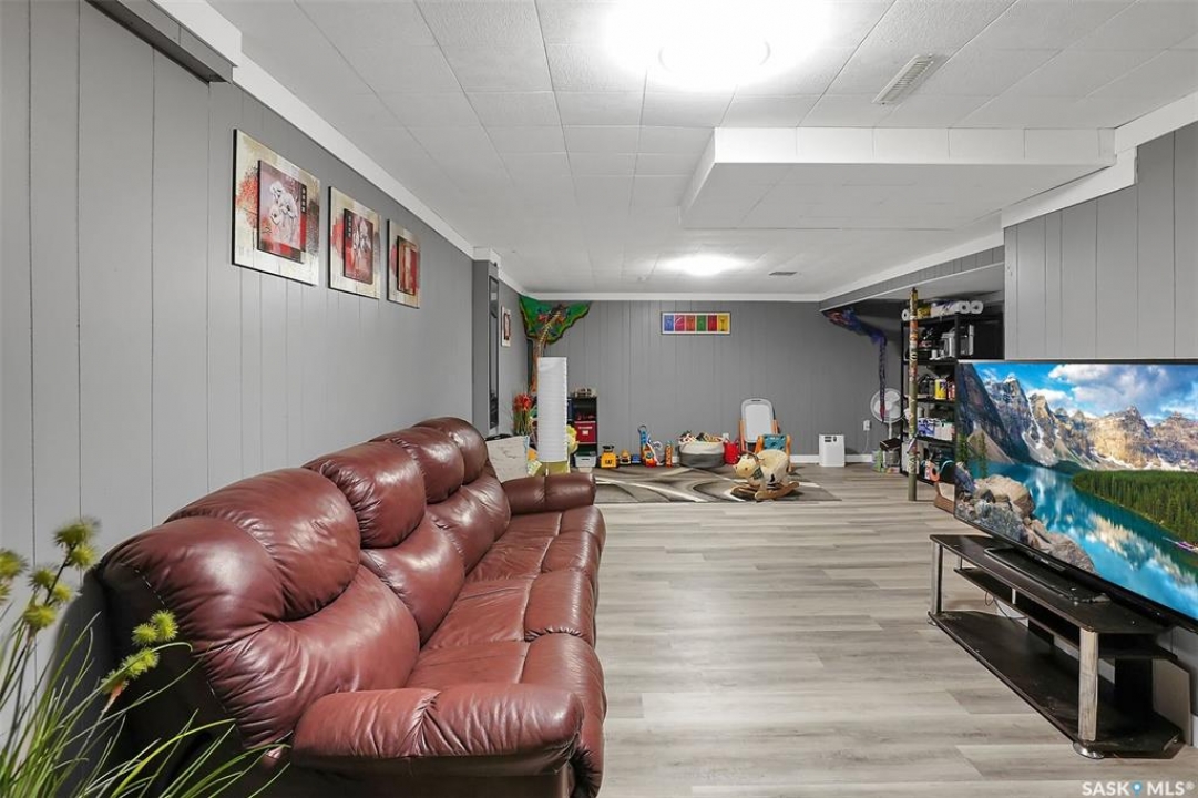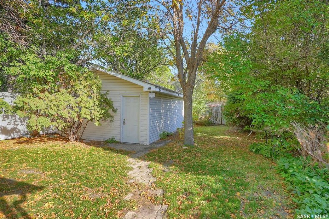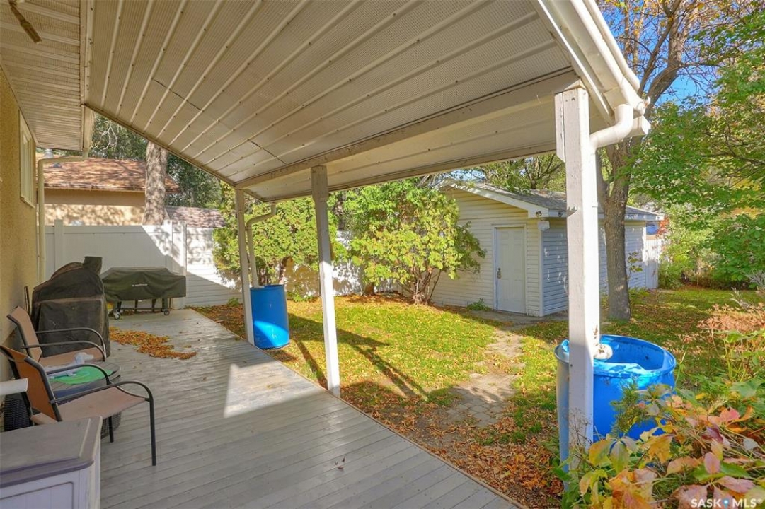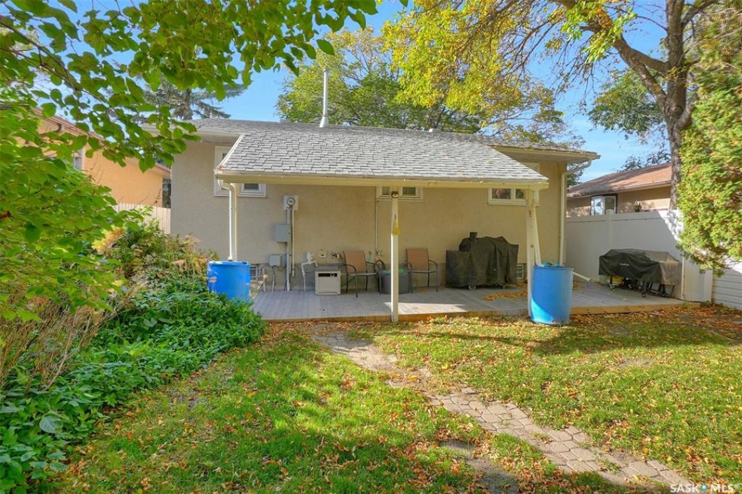 Lovely, well-cared-for bungalow with many updates and renovations is located close to a park and within walking distance of schools. The main floor offers a spacious east-facing living room, an updated eat-in kitchen, three bedrooms, and a full four-piece bath.The finished basement includes a huge recreation room, a two-piece bath, and a den that could serve as an additional bedroom (window does not meet egress). Completing the lower level is the laundry, storage, and utility area.The fully fenced backyard features a covered deck and convenient access to a single garage with back alley access. Extras include- A/C 2023 still under warranty. The TV with mount in the primary bedroom, a TV mount in the living room, and the upright freezer in the third bedroom (negotiable). Water softener has never been used by current owners and can not warrant.