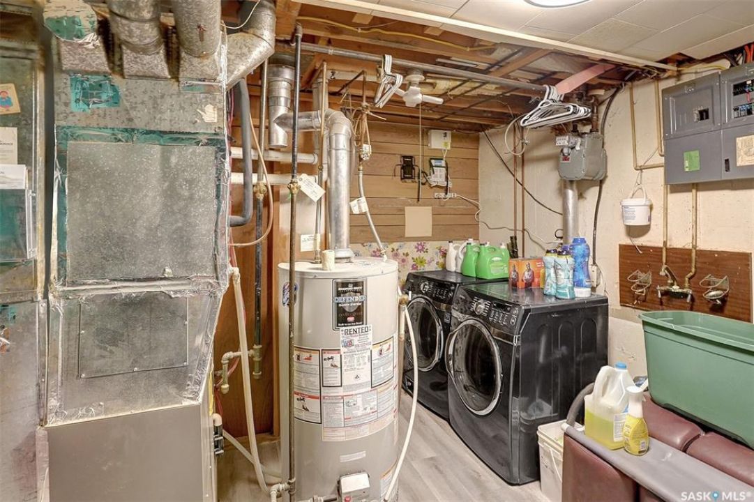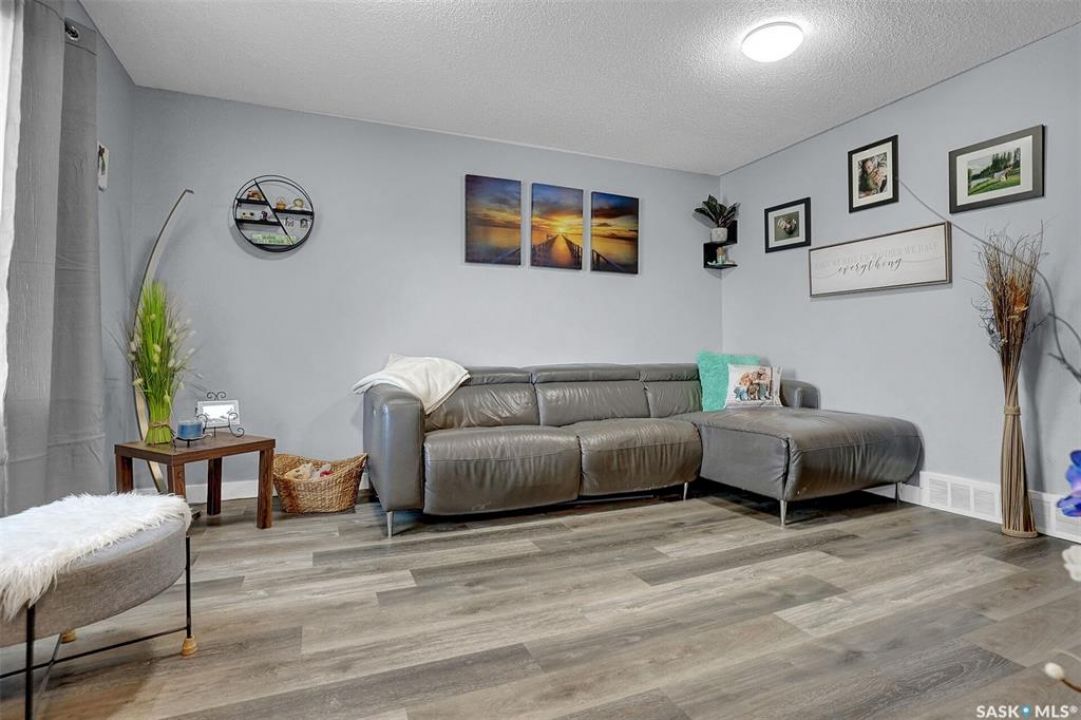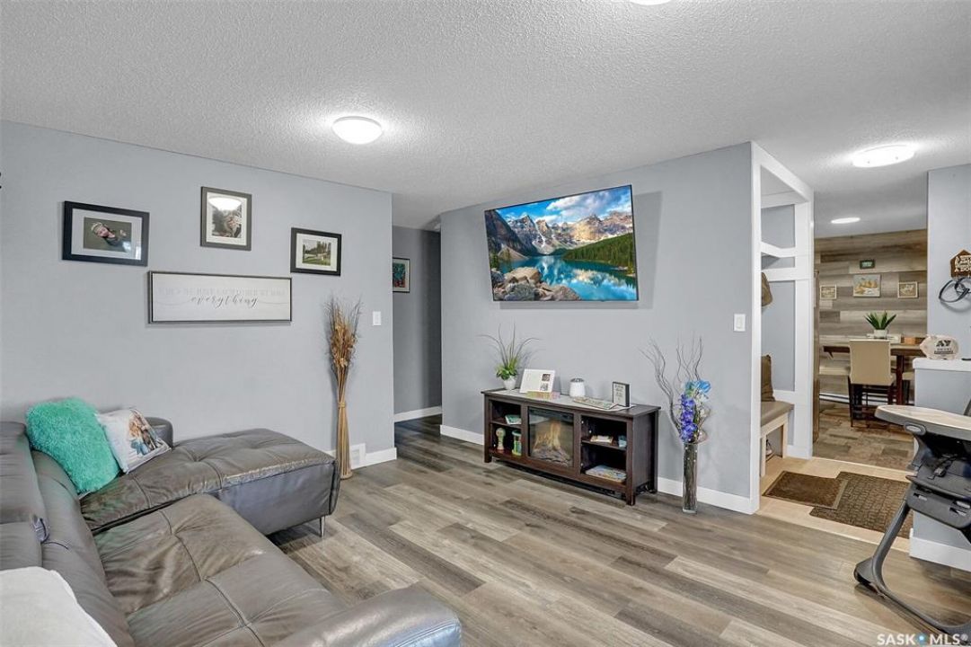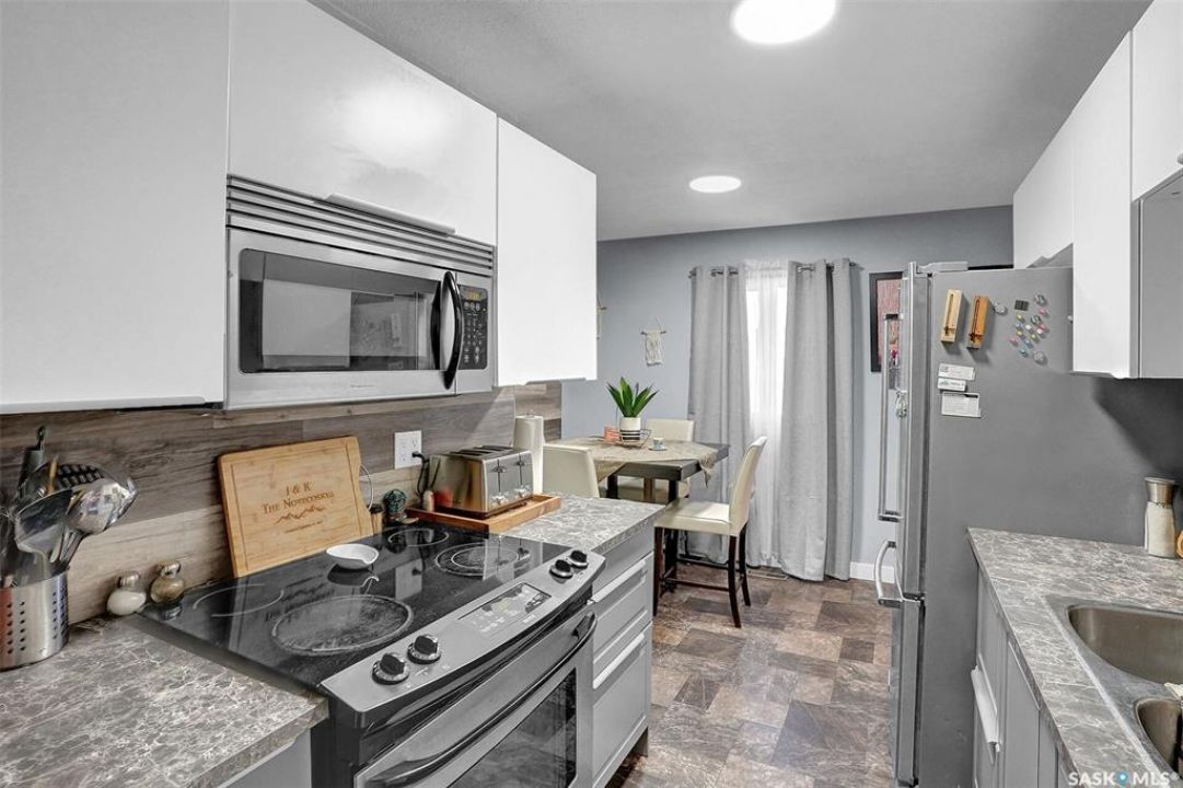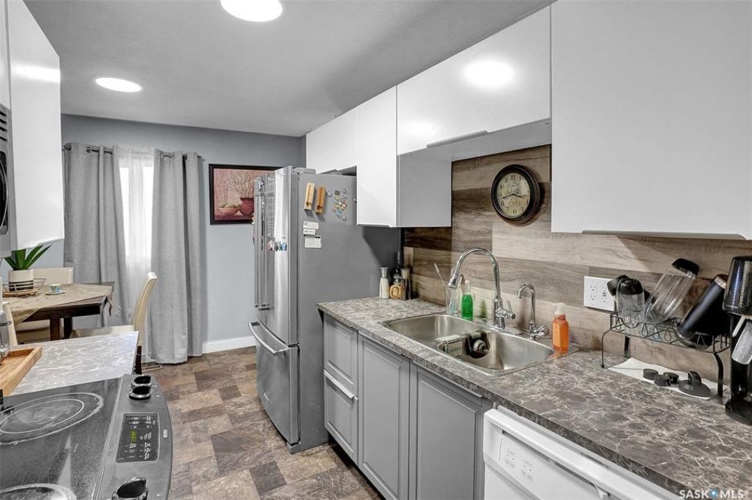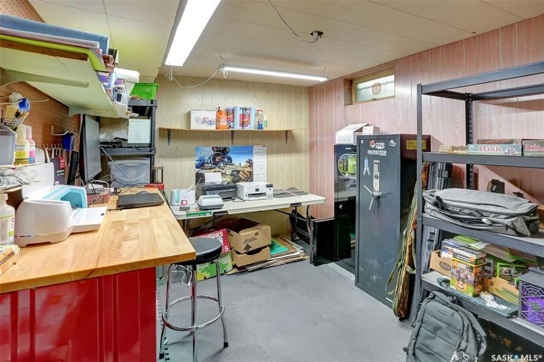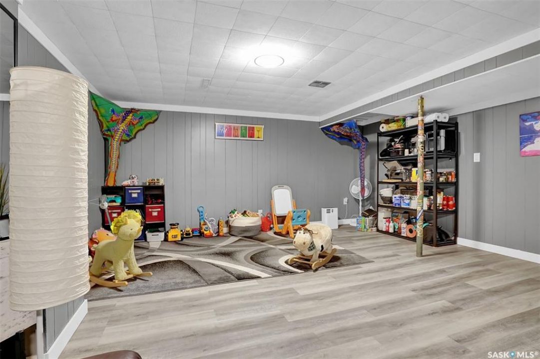 Lovely, well-cared-for bungalow with many updates and renovations is located close to a park and within walking distance of schools. The main floor offers a spacious east-facing living room, an updated eat-in kitchen, three bedrooms, and a full four-piece bath.The finished basement includes a huge recreation room, a two-piece bath, and a den that could serve as an additional bedroom (window does not meet egress). Completing the lower level is the laundry, storage, and utility area.The fully fenced backyard features a covered deck and convenient access to a single garage with back alley access. Extras include- A/C 2023 still under warranty. The TV with mount in the primary bedroom, a TV mount in the living room, and the upright freezer in the third bedroom (negotiable). Water softener has never been used by current owners and can not warrant.
