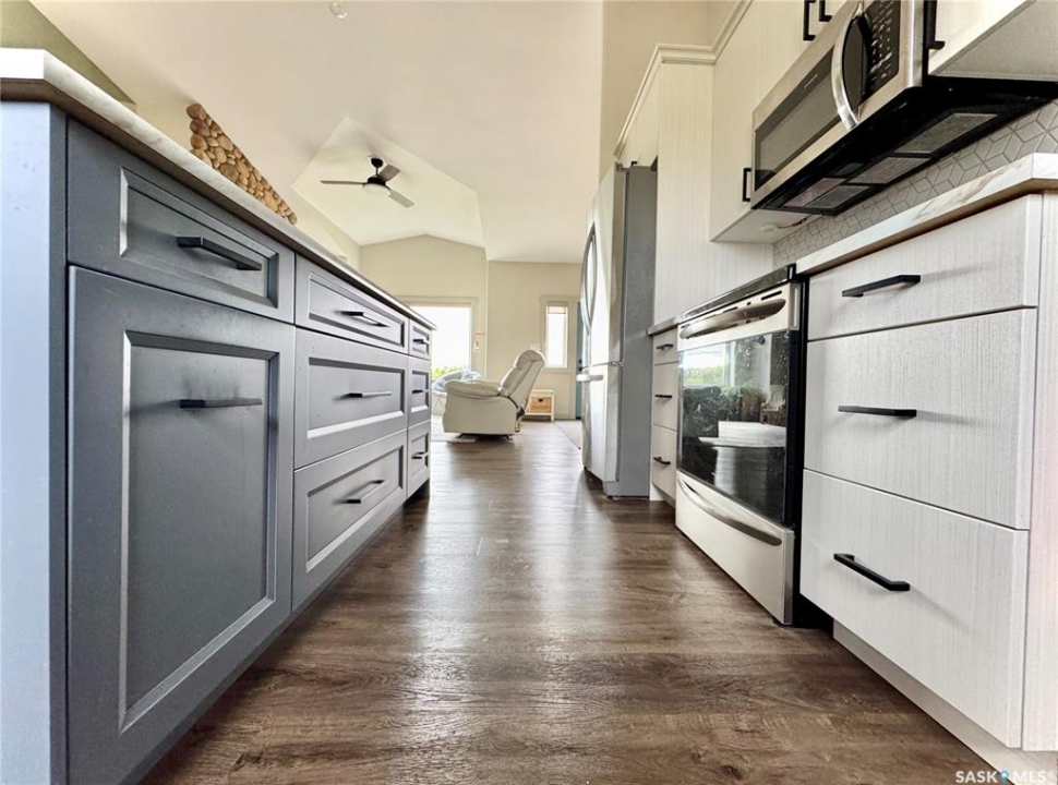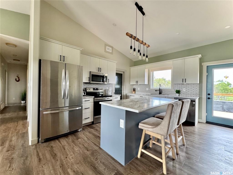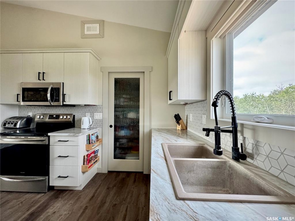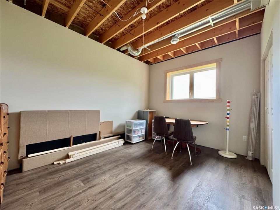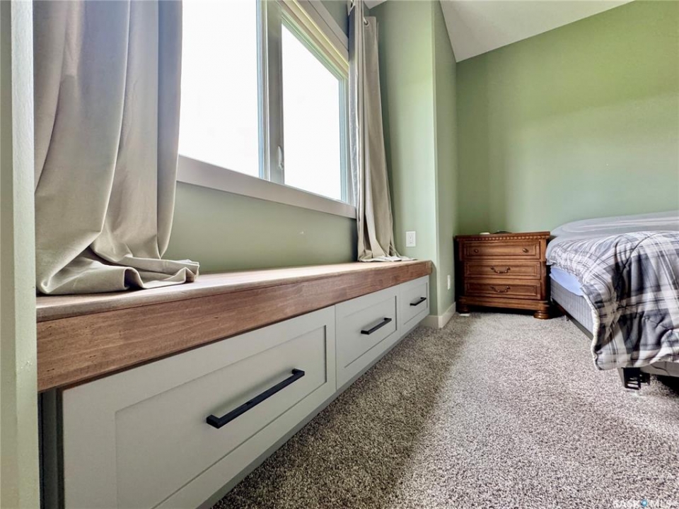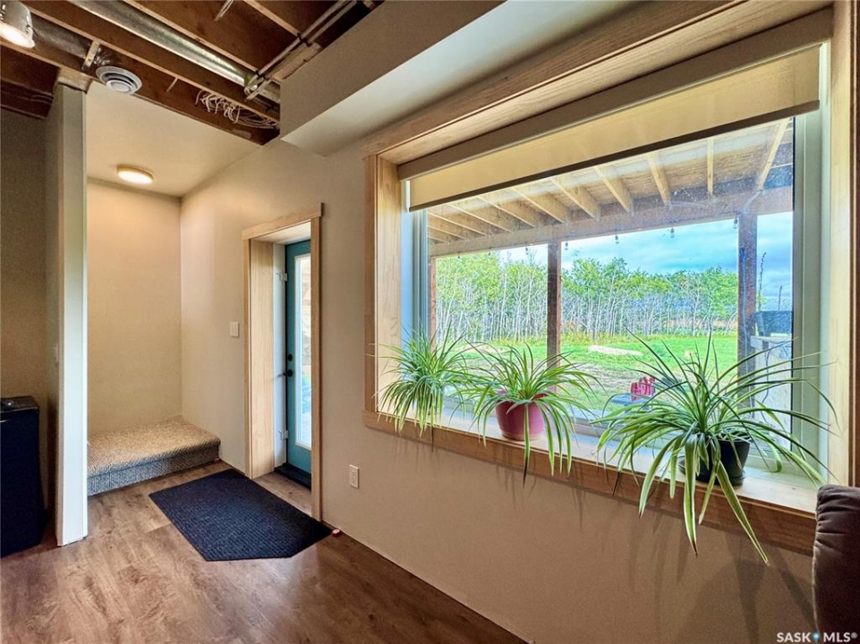 At Natures Edge Acres, nature and new construction come together in a way rarely seen in SE Saskatchewan. Tucked behind a mature shelterbelt where deer and songbirds wander, this 2022 custom build delivers more than 3,000 sqft. of exceptional living space—a chance to own a true countryside original without the wait of building. Designed from the ground up with family and entertaining in mind, the home offers 5 bedrooms and 4 bathrooms, plus a surprise you'll be talking about long after the showing: a 6th bedroom with a built-in slide right at the heart of the house. Whether it's kids at play or simply hauling heavy bags downstairs, the slide turns everyday tasks into something fun. The main living area wows from the moment you walk in. Vaulted ceilings and wall-to-wall windows capture prairie light from sunrise to those legendary Saskatchewan sunsets. A dramatic floor-to-vault river rock fireplace anchors the space—beautiful to look at and practical too, with settings that keep the home warm even if the power goes out. The chef's kitchen is ready for gatherings big or small, complete with a generous prep island, deep dovetailed pot drawers, and soft-close cabinetry. The sink frames tranquil eastern views while the west-facing picture window serves up nightly sunset shows. Built with modern efficiency in mind, the home features geothermal heating and cooling, weeping tile, excellent insulation, and spa-style ensuite showers. The electrical wiring has been thoughtfully planned—“overbuilt,” as the owners like to say—so you're ready for anything from a future basement bar with toe-kick lighting to advanced tech upgrades. Outside, the unfinished shop is already set up for big projects with a welder plug, 30-amp camper hookup, and doors tall enough for a lifted truck. Whether you're after a family retreat, a place to host unforgettable gatherings, or simply room to breathe, this acreage offers a rare combination of new-home comfort and Saskatchewan's natural beauty.