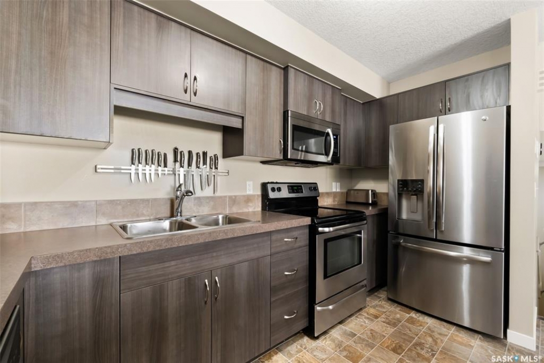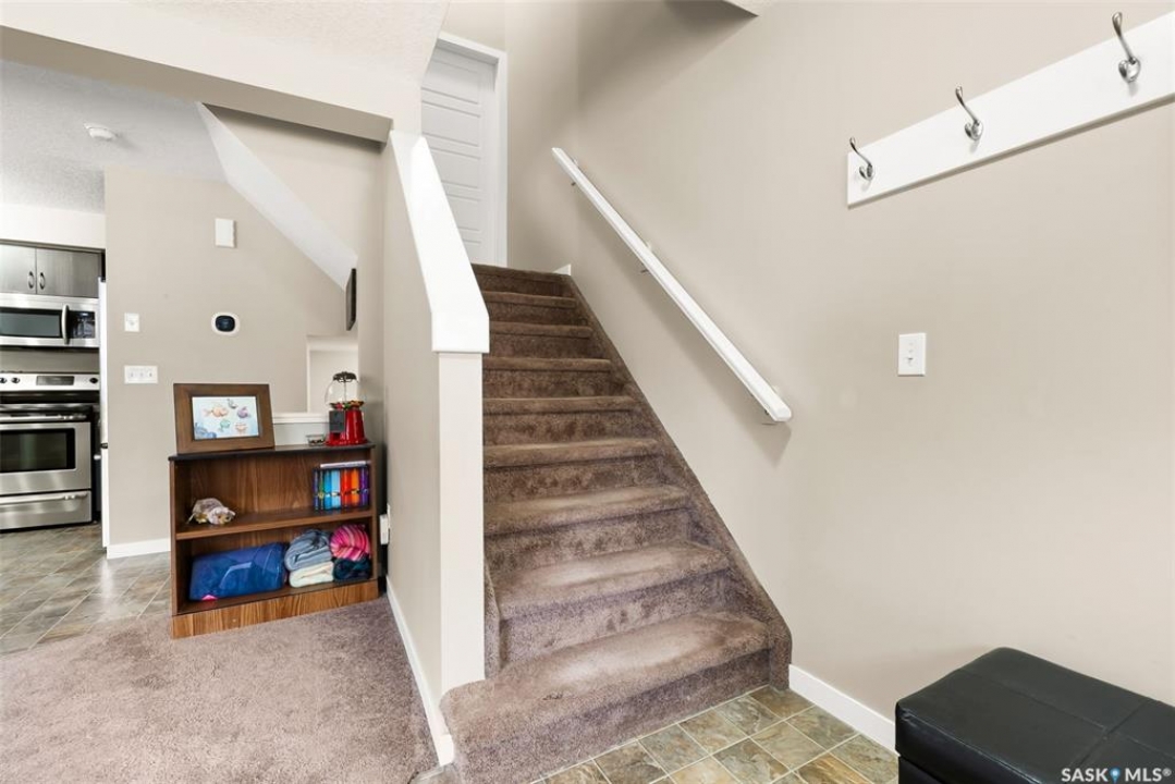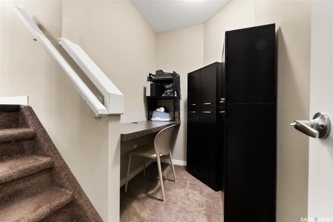 Welcome to your ideal Harbour Landing townhome! This beautifully appointed two storey 2 bedroom, 2 bathroom condo offers smart, efficient living in one of southwest Regina's most sought after neighbourhoods. Low condo fees make this an outstanding value. The main floor offers spacious open concept living room, kitchen and dining area flow together seamlessly. There's also a compact office nook, ideal for a home workstation.Heading to the upper level you will find the primary bedroom that features a walk-through closet and direct access to the 4 piece main bathroom. A second large bedroom plus convenient upstairs laundry complete this second level. Heading down to the lower level you will find a cozy family room, an additional 4 piece bathroom, and an ample storage & utility room. This condo has many upgrades including the high efficiency furnace, central air conditioning, on-demand hot water, and an HRV ventilation system to ensure comfort and energy savings. Included is one designated parking stall, and a wonderful front patio giving you a perfect space for a morning coffee or a small barbecue. Condo fees are affordably low, making this home ideal for first time buyers, downsizers, or those seeking a low maintenance living option. You'll love this location in Harbour Landing, offering walkable access to green spaces and scenic pathways, plus restaurants, shopping, and amenities all within easy reach. Commuting is a breeze, and you'll enjoy being in the heart of Regina's growing and vibrant southwest corridor.