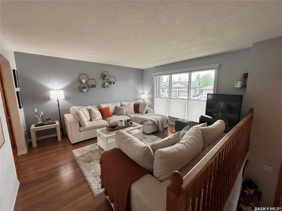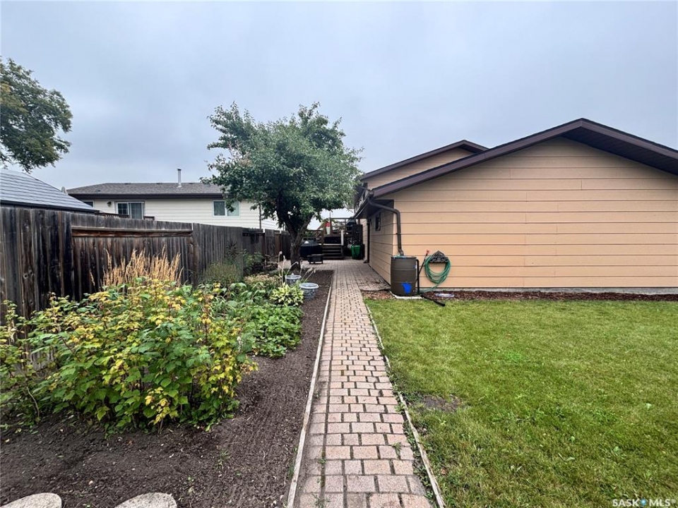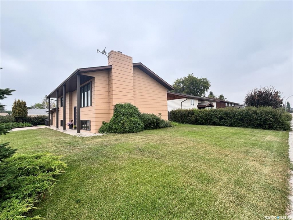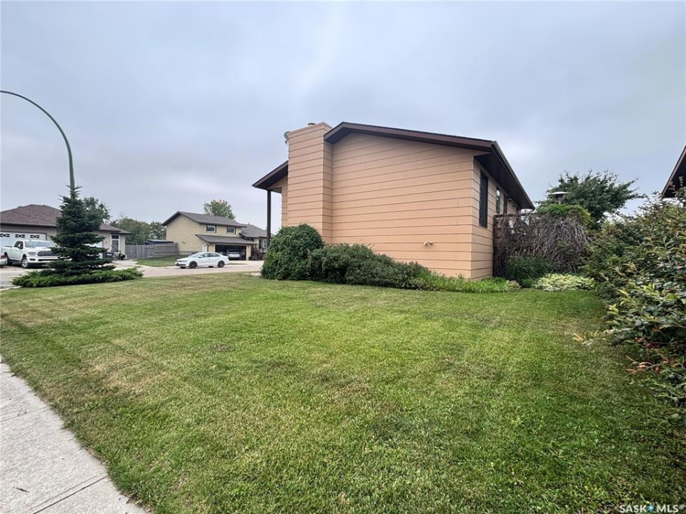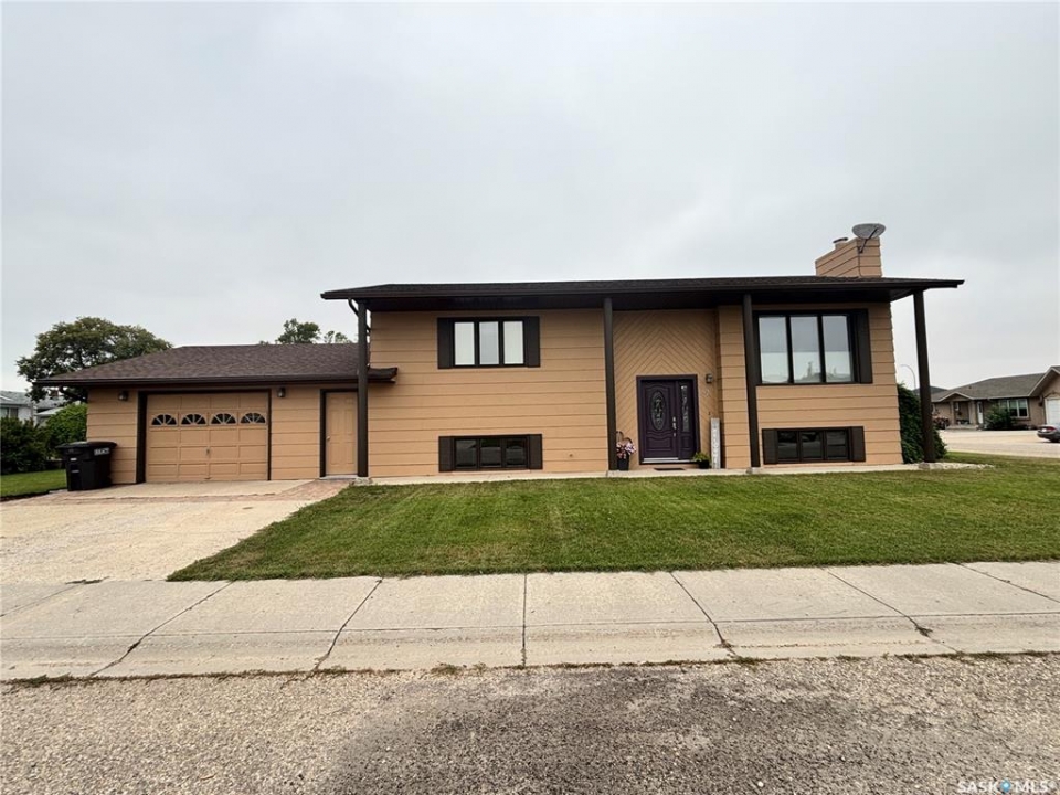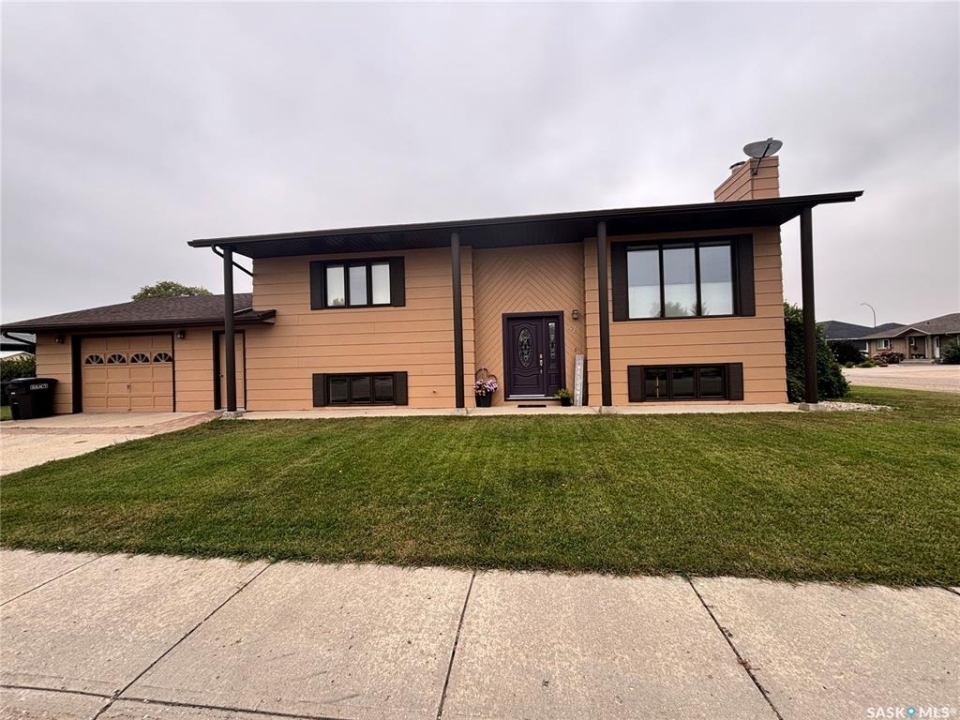Welcome to this well-maintained bi-level home located in the growing community of Lanigan, Saskatchewan. Nestled on a quiet crescent, this property sits on a desirable corner lot within walking distance to schools and parks—an ideal spot for families. The exterior boasts attractive street appeal with a single attached garage, surrounding green space, a small garden area, and a three-tier deck at the back—perfect for entertaining or enjoying the outdoors. Inside, you're greeted with a spacious entrance that offers the option to go up or downstairs. The main level features a bright living room with large windows, flowing seamlessly into the dining room and kitchen. The kitchen provides plenty of counter and cupboard space with classic oak cabinetry, along with a convenient storage closet off the rear entry—large enough to house a stand-up freezer. Two generously sized bedrooms and a four-piece bath complete the main floor. The primary bedroom includes a unique makeup area that could easily be converted back into a two-piece ensuite for added convenience. A handy laundry chute connects the main bath directly to the basement laundry area. The lower level is designed for comfortable living with large windows that bring in natural light, a spacious family room with a cozy wood-burning fireplace, two additional bedrooms, a three-piece bath, and a laundry/utility room with ample storage. With a thoughtful layout, plenty of storage, and a welcoming neighborhood, this home offers comfort and functionality for a growing family.