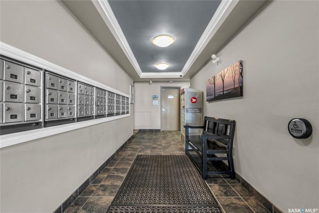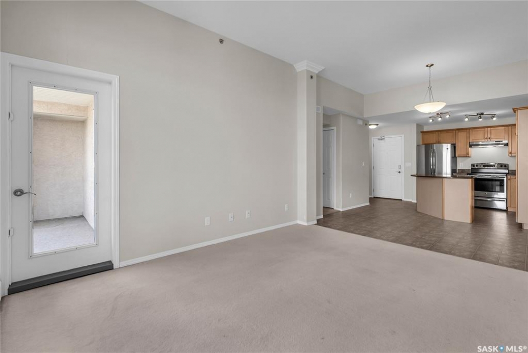 Welcome to unit #414 – 235 Herold Terrace, in the beautiful neighborhood of Lakewood! Conveniently close to many shopping centers, parks, walking trails, bus stops, dog park, and easy access to Circle Drive! Stepping inside your top floor unit, you are greeted with an abundance of natural light flowing throughout. The kitchen provides you with stainless steel appliances, including fridge, stove, dishwasher and hood fan, maple cabinets, pantry and island for additional counter and cabinet space. The living room features 10ft ceilings, a large window and access to your East facing balcony. Coming to the primary bedroom, offering a walk-in closet with custom organizers, and a 3-pc ensuite with sliding glass shower. One additional bedroom, a 4-pc bath, and in-suite laundry room complete this very well-kept home! Additional features include A/C, central vac, and two surface parking stalls! This stunning condo is a must-see in a highly sought after location!