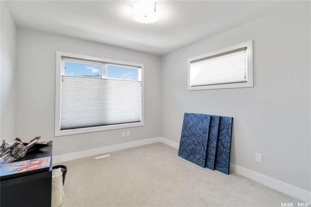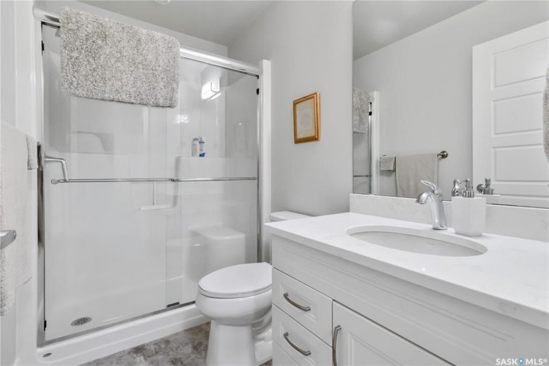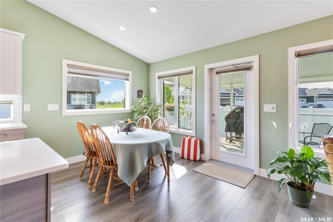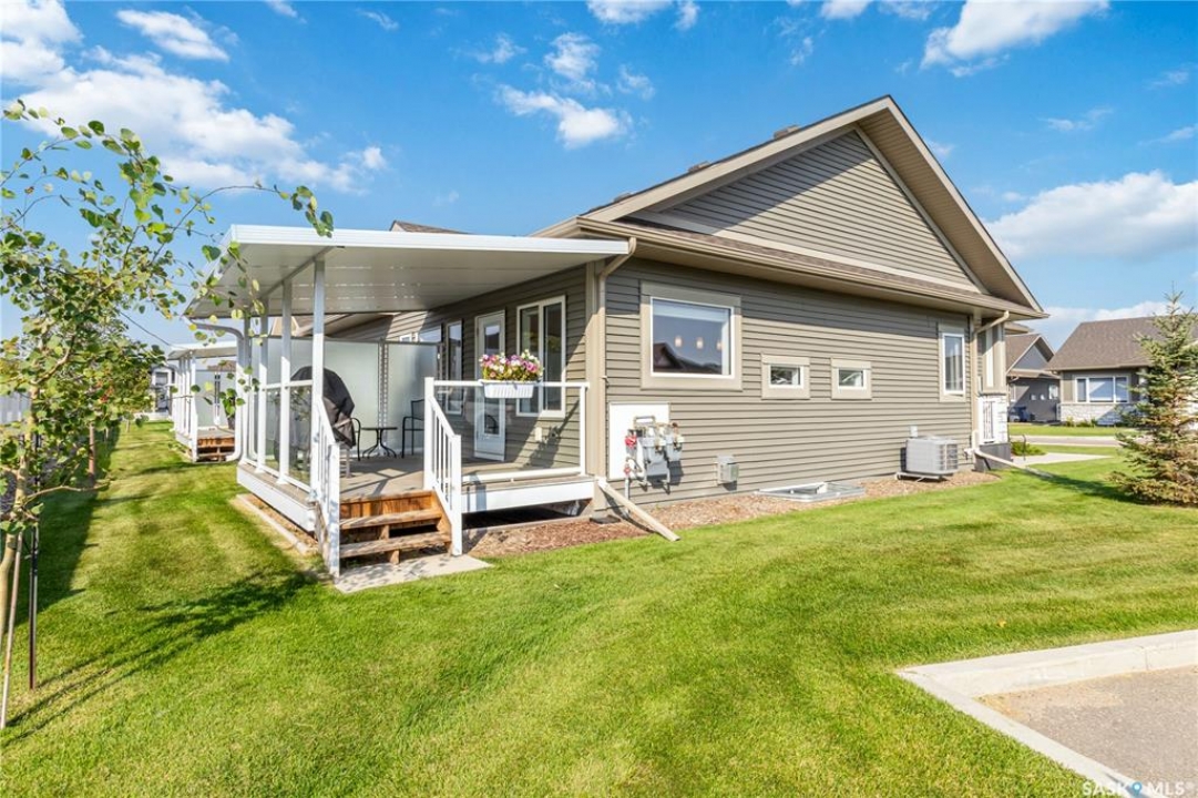 Welcome to #5-435 Palmer Crescent in Warman, a highly desirable bungalow with views of the Legends Golf Course. Situated at the end of the row, this meticulously cared for home offers privacy with no neighbors on one side or behind. The condo is filled with natural light and features a south-facing covered deck. The modern and spacious kitchen boasts extra windows, quartz countertops, a pantry, vaulted ceilings, and an upgraded stainless steel appliance package. The dining area offers golf course views and room for a large table. Down the hall, you'll find a bedroom, a 4-piece bath with vaulted ceiling, a spacious primary suite with a walk-in closet and 3-piece bath, and a laundry room with built-in cabinetry. The fully developed basement, finished by the builder, maintains consistent quality and finishings throughout. It includes a large family room with gas fireplace and built-in shelves. room for a gym, as well as a bedroom, an office (that can easily be converted into a 4th bedroom), a 3-piece bath, and a generous storage/furnace room with utility sink. The garage is fully insulated and comes with a workbench and shelving. Step outside onto the covered deck to enjoy the peacefulness of this quiet complex. Other features include custom blinds, central air, ng bbq hook-up, granite countertops and undermount sinks in all bathrooms. Over $30,000 in upgrades have been invested in this beautiful home. With walking trails and the golf course nearby, this bungalow is the perfect forever home. Dogs allowed with board approval.
