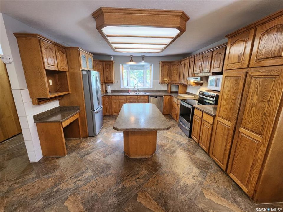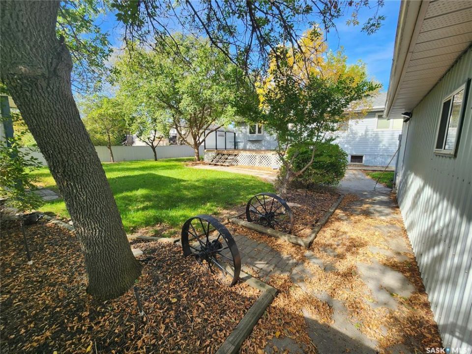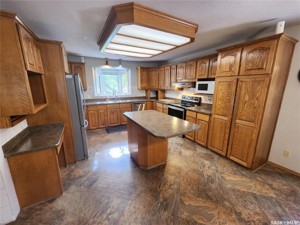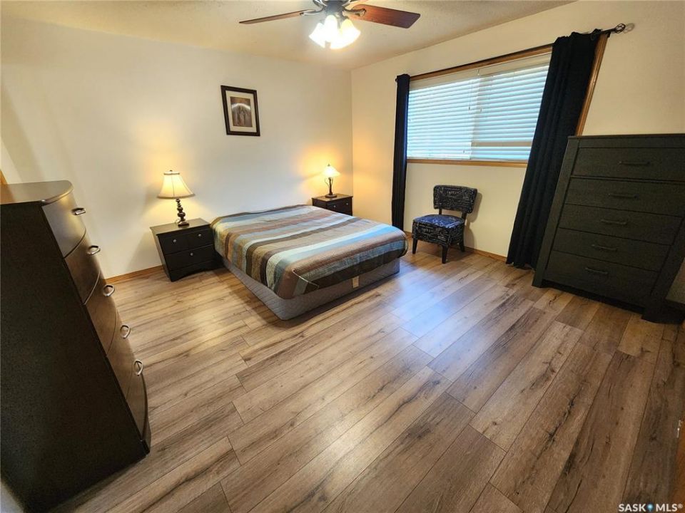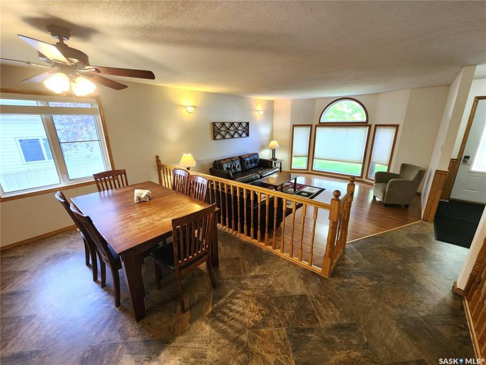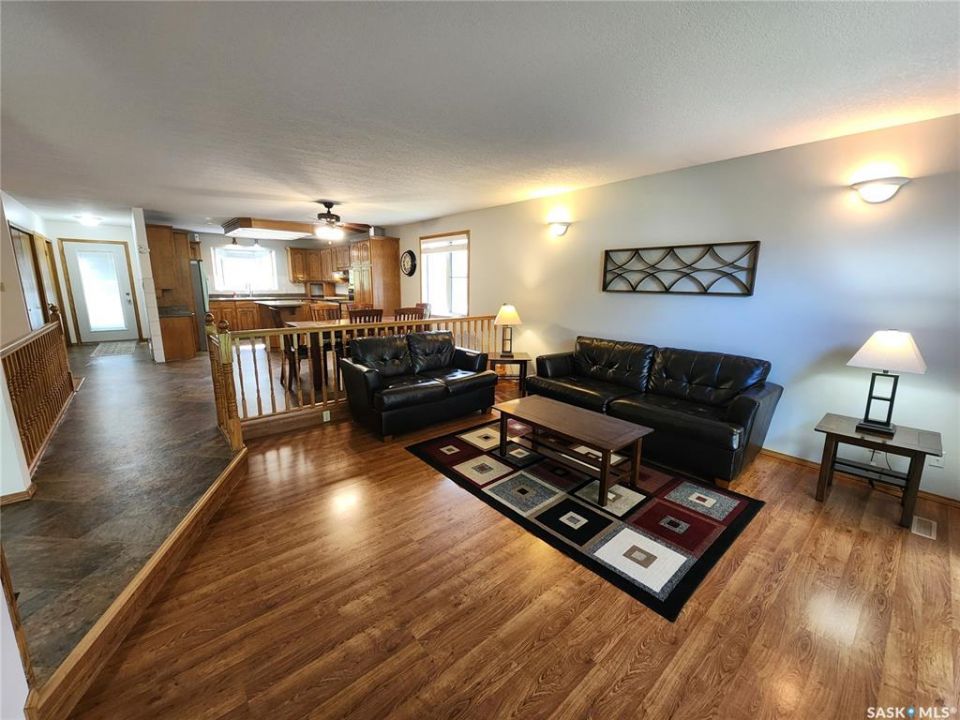 This property is over 1500sqft, has a double attached garage as well as a detached 16' x 28' garage and is located in the quiet community of Lampman. You enter the home directly into a large foyer. The living room is bright, inviting, has beautiful laminate flooring and opens to the spacious dining room. The kitchen boasts ample cabinetry, an island, and stainless steel appliances. � The open concept lends itself well to entertaining with the expansive dining room being open to the kitchen as well as living room. � Just off the kitchen is the laundry closet as well as extra storage closets with direct garden door access to the deck. The master bedroom is super spacious and includes a 3 piece bathroom and large double closets. Two more bedrooms, and a lovely 4 piece bathroom completes this level. The basement includes an expansive family room with wet bar and wood burning fireplace, a bedroom, an office, den, storage room and utility room. The yard is stunning with matures trees, metal fence and large composite deck. This is the perfect family home! Call today to book a showing.