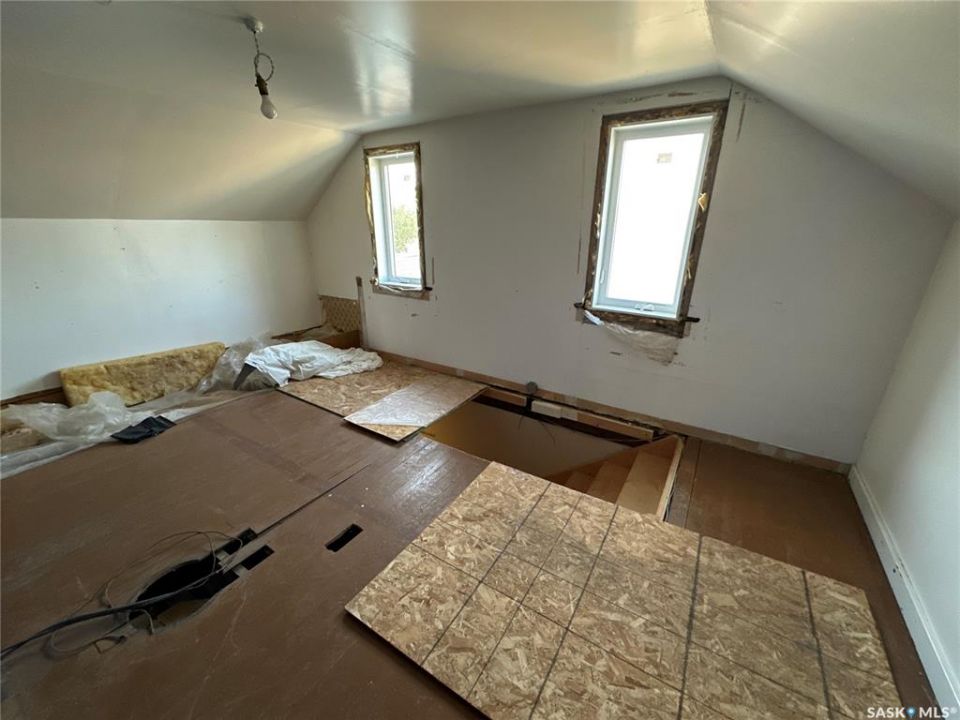 Great location in Rosthern. 1272 sq ft 1 1/2 storey house on a large 55' x 207' lot in Rosthern with room for a rear garage with access from the front drive or the back alley! Wider stairs lead up from the entrance to the main floor that was extensively renovated in the past. Newer wiring & insulation, windows & siding with styrofoam insulation underneath, kitchen & main floor laundry/bath with a tub and a shower. The main floor also has a large living room and a second dining room. A wide stairway also leads to the very functional basement which has a large family room, a storage room, den or office space, and a 1/2 bath in the utility room. Again wide stairs lead to the second floor which remains un-renovated with a large bedroom and a family room that together could be converted to two nice bedrooms.