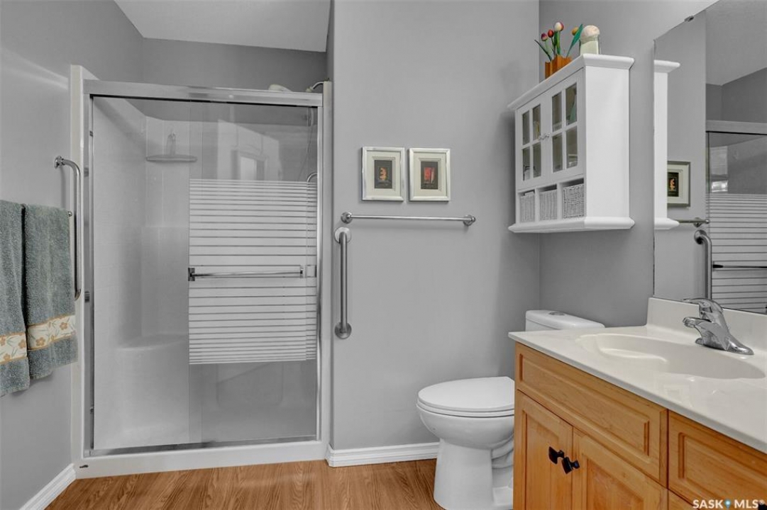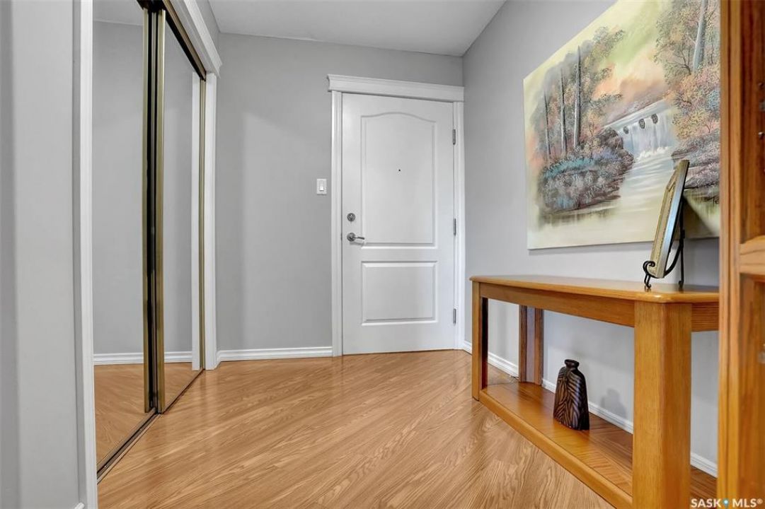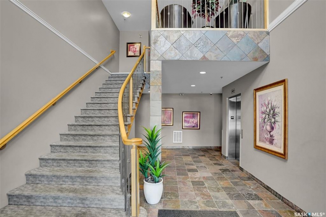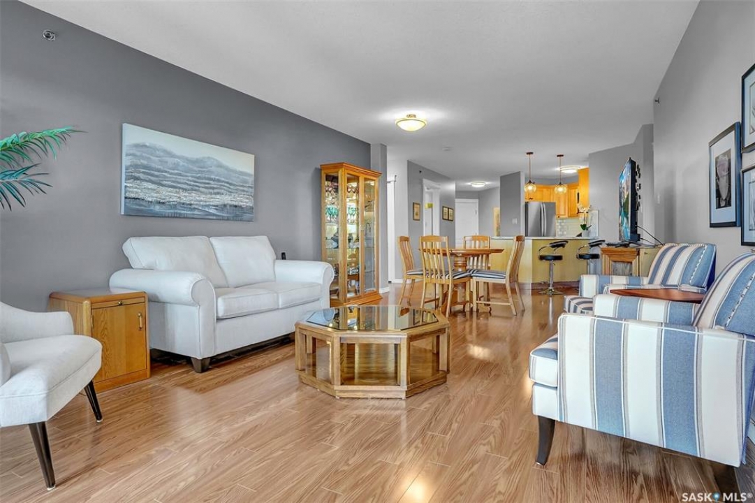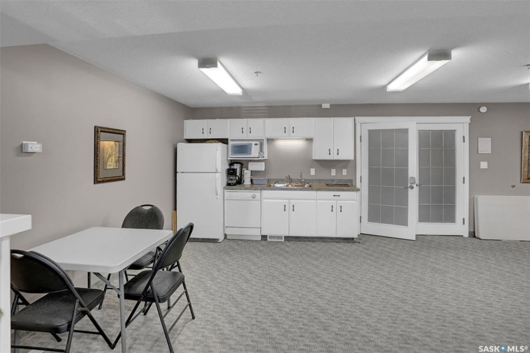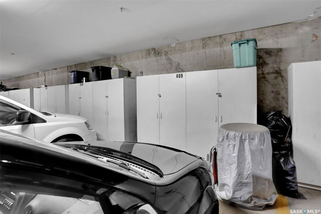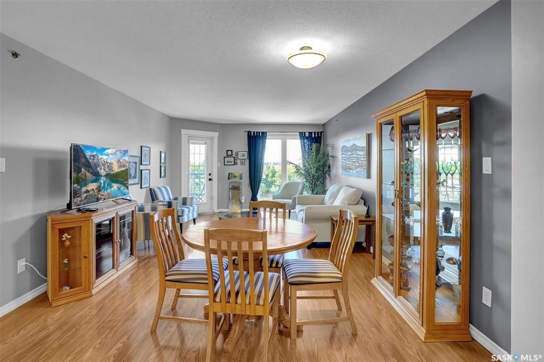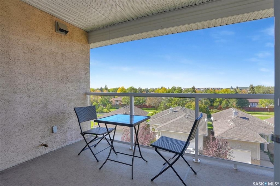 This condo has what so many people ask for! Top floor: facing west: with lots of natural light. Welcome to suite 409! Come inside to the foyer that has plenty of space to display furniture, artwork and even a bench. Lovely colored easy care laminate throughout. As you look forward from the foyer hallway there is a lovely view from the livingroom window. The main living area offers plenty of space for you to arrange the furniture based on your personal lifestyle. Whether you choose to have a dining area or a more casual style with the kitchen eating bar. Or both! The kitchen work space is well designed with lots of cupboards and counter space. Attractive backsplash and cabinet knobs. Fridge, stove, microwave hood fan and dishwasher replaced within the last 4 years. The spacious master bedroom provides two closets and a 3 piece ensuite. The shower has a seat, sliding glass door and grab bars. On the other side of the living room is the very large second bedroom providing plenty of space for chairs and/or a desk. Conveniently located main bathroom. A garden door off the living room opens to the west facing covered deck. Now to the elevator that is a short distance to the elevator. The parking spot in the heated parkade has 2 storage lockers in front. The building offers an amenities room (2nd floor), guest suite and craft room (3rd floor), exercise room, storage room (4th floor), hobby shop with tools, car wash bay in parkade with hose,brushes and shop vac. Lots of outside visitor parking. Condo fees of $490.04 per month include water, sewer, common area maintenance and insurance, exterior building maintenance, garbage, centralized water heater and water softner, lawn care, snow removal and reserve fund. Pets are not allowed. The building location is perfect for access to many amenities, shopping and dining. You will want to check this out!