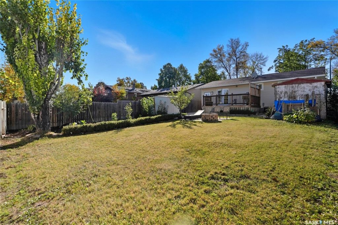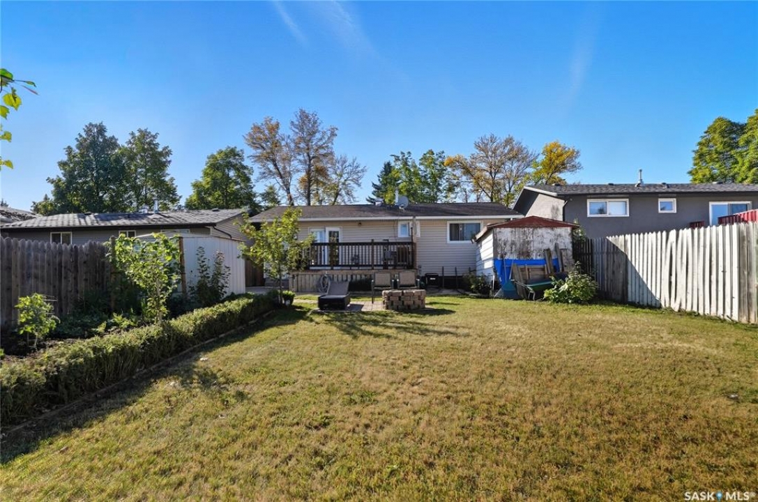 Outdoor: Deck, Fenced, Garden Area, Lawn Back, Lawn Front, Trees/shrubs