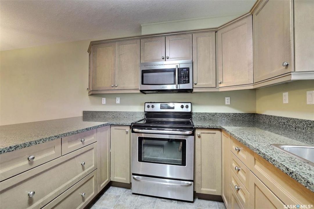 Fantastic corner unit very spacious condo with loads of windows and natural light. Front entry hall accesses huge primary bedroom with 3pc ensuite, 2nd bedroom generous in size, large laundry/storage room and main bath. Gorgeous kitchen with plenty of top quality cabinets and stone countertops, big penisula for sit up bar dining adjacent to large dining room that will accommodate big family get togethers! Massive living room with an abundance of windows with morning east exposure and overlooking greenspace and adjacent private patio/balcony. All appliances are included. Central air and 1 underground heated stall with separate locked storage. Extremely well managed building offering great community with large amenities room with separate kitchenette, bathroom and exercise area. Outdoor patio for socializing and basement workshop for the handyman. Building is close to all east side shopping, parks, Costco with easy downtown access. Call today!
