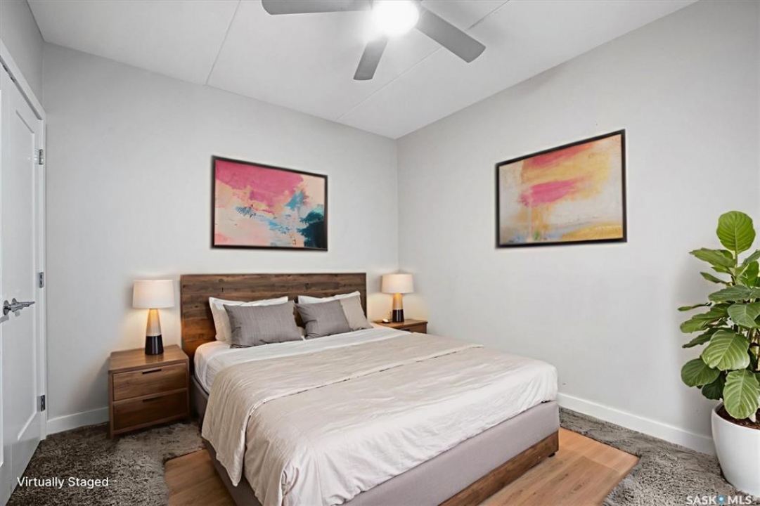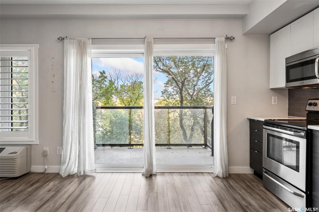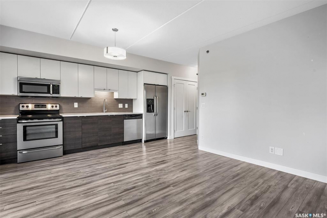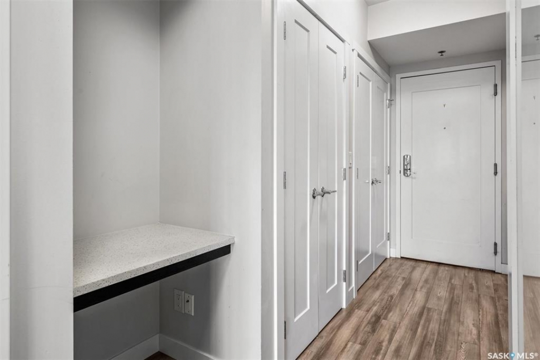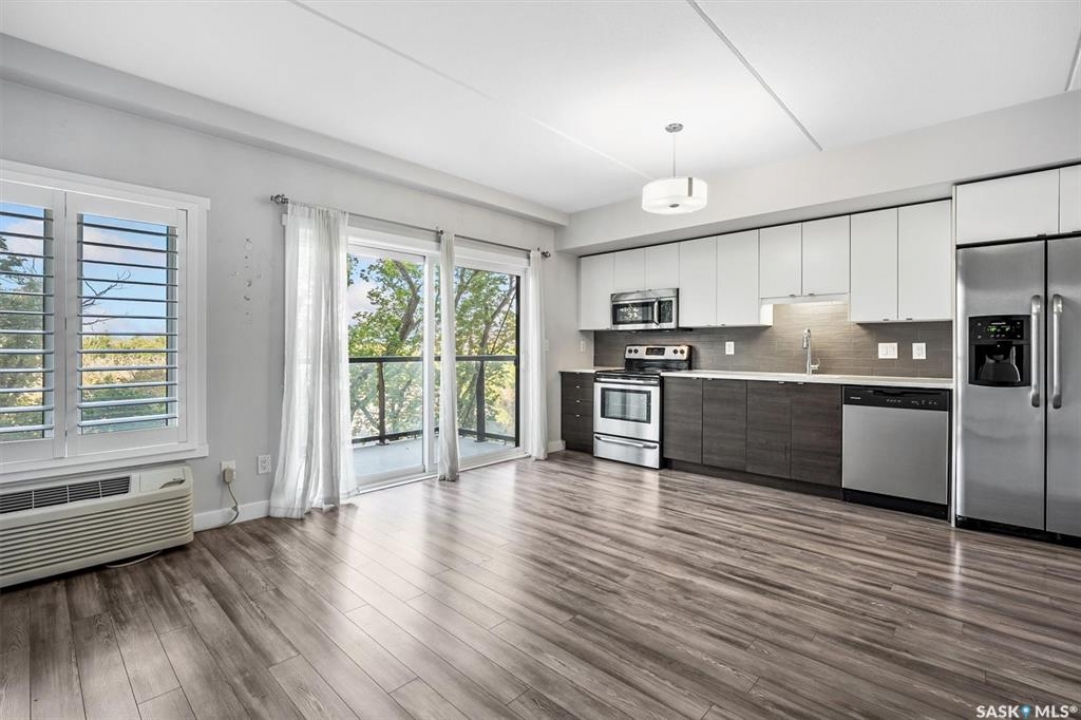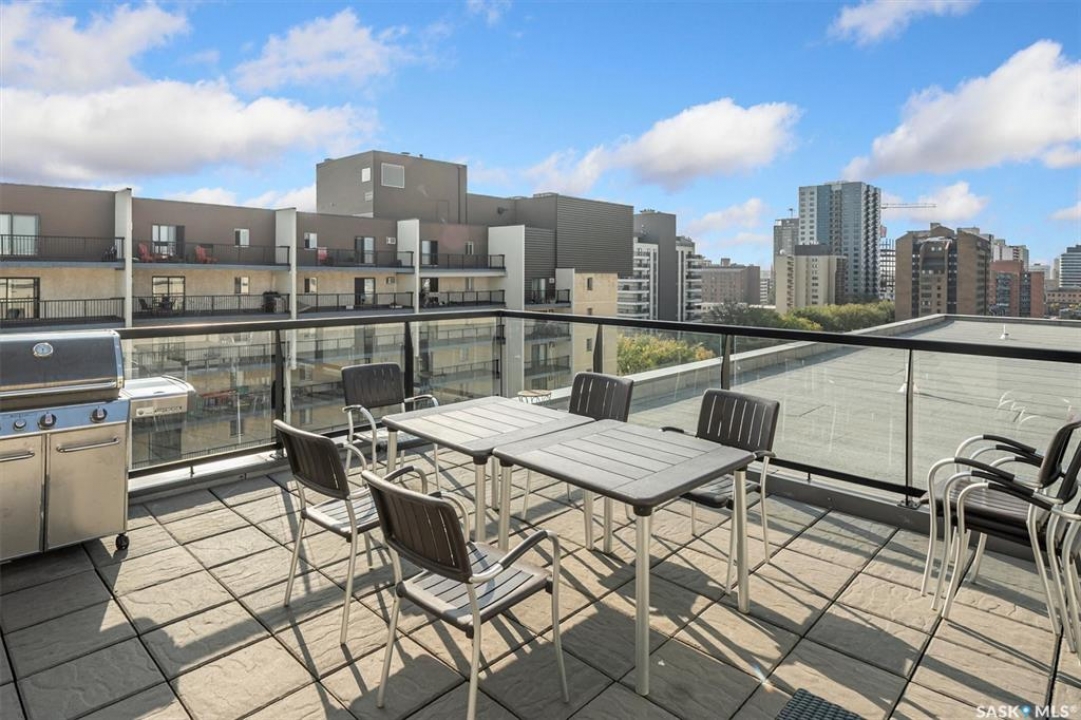 Welcome to The Shangri-La on 4th Ave. This stylish 1 bedroom, 1 bathroom condo is perfectly situated in the heart of Saskatoon. The bright impeccably maintained unit features a functional open concept layout. Enjoy the convenience of a built-in computer workspace, modern kitchen, quartz countertops and tile back splash - ideal for both everyday living and entertaining. You are close to City Hospital, University of Saskatchewan, Royal University Hospital, downtown shops, restaurants and city transit. What a great location offering the best of urban living with easy access to nature. Set in a soundly constructed concrete building, residents can enjoy premium amenities including a rooftop patio with BBQ area, an amenities room with fitness equipment, and the added convenience of one underground parking stall. Don't miss this incredible opportunity to own in one of Saskatoon's most sought after locations. Book your showing today with your favorite Realtor!