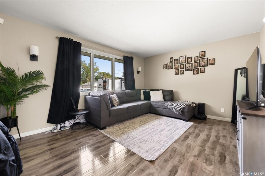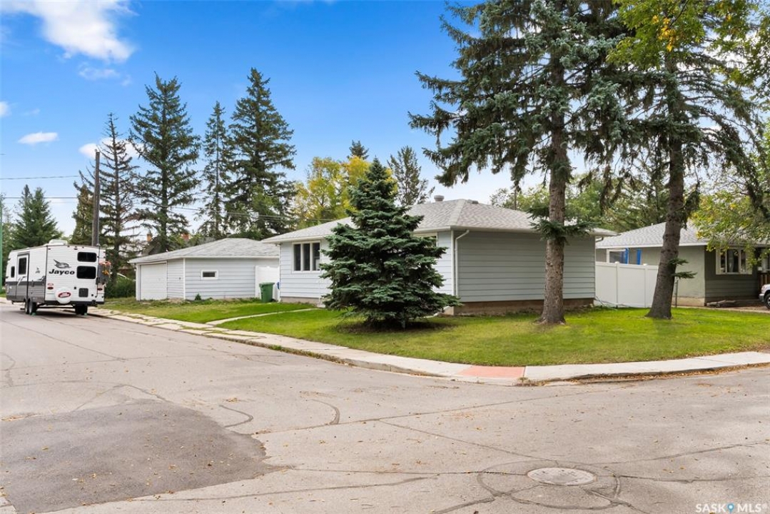 This updated bungalow in Regina's Regent Park neighborhood is ready for its next family to love. With 3 comfortable bedrooms and a 4-piece bathroom on the main floor, there's room for everyone to feel at home. The sunny living room is perfect for cozy movie nights, and the kitchen—featuring crisp white cabinets and newer appliances—makes everyday meals a breeze. The fully finished basement adds even more space to enjoy, with a large rec room for games or movie marathons, a 4th bedroom for guests or teens, a 3-piece bathroom, and a handy shared laundry/utility room. Outside, the home sits on a corner lot with a fenced yard and a double detached garage, offering space to play and plenty of parking. Important updates include shingles, furnace, and fence (2022), plus central air, appliances, and electrical (2023)—giving you comfort and peace of mind. Whether you're just starting out, growing your family, or looking for a move-in-ready home with extra space, this Regent Park bungalow checks all the boxes.