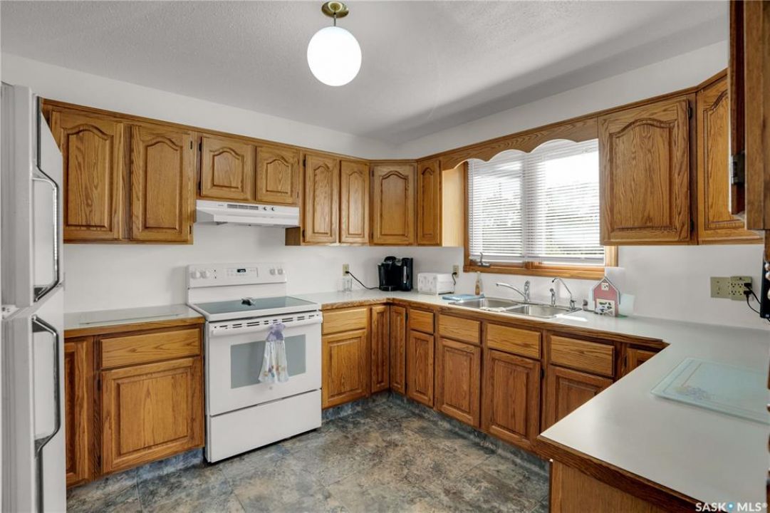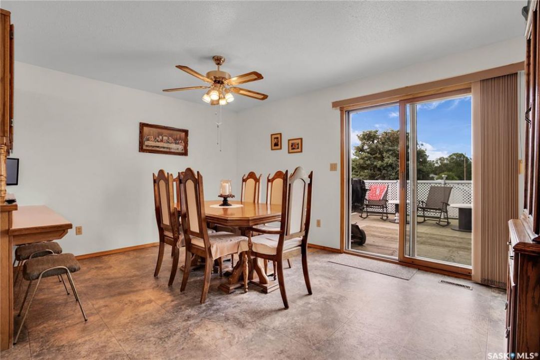 Are you looking for your next home? You won't want to miss this one - pride of ownership shines here! This immaculately maintained bi-level home was built in 1991 and boats over 1,100 sq.ft. with a double attached garage. This 4 bed / 2 bath home provides excellent space for a family. Excellent curb appeal as you pull up. Heading inside you are greeted by a spacious foyer with access to your attached garage. Heading upstairs we are greeted by a good sized living room. Heading back we find a spacious formal dining room with access to your huge tiered deck - perfect for entertaining or your morning coffee. Off the dining room we find a large U-shaped kitchen boasting lots of cabinets and counter space - with an eat-up bar. This is sure to be the heart of this home. Down the hall we find 2 large bedrooms! Finishing off the main floor we find main floor laundry and a 4 piece bathroom. Heading downstairs we have a large family room - the perfect place for the kids to play. There is a second 4 piece bath, 2 more large bedrooms, a den/office and storage spaces! Outside we find a large 50' x 150' lot with lots of privacy from the hedges. Lots of grass and a large garden area as well. This home provides great value for any buyer - excellent family home! Located in the bustling town of Gravelbourg - just minutes from Thomson Lake! Reach out today to book your showing!