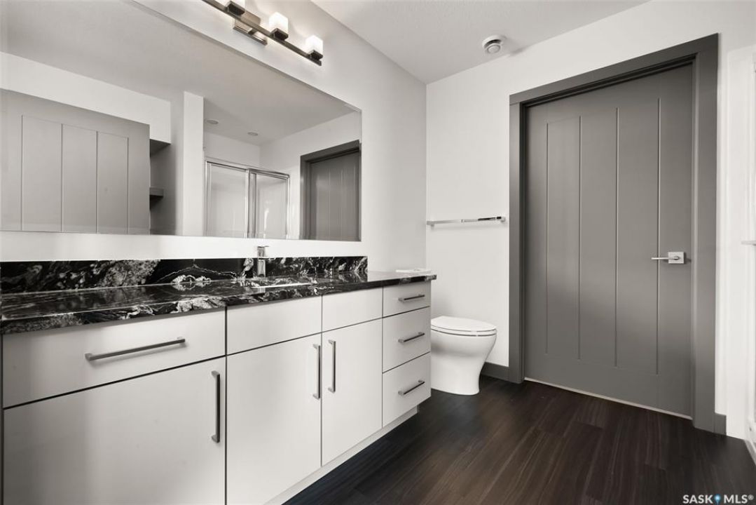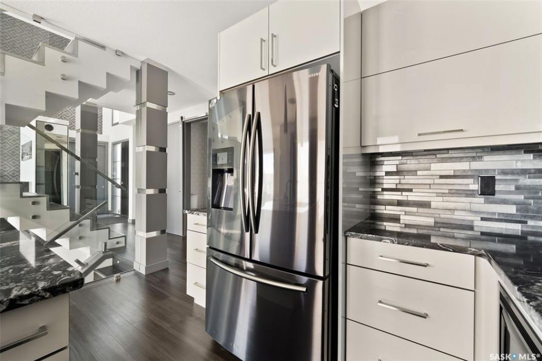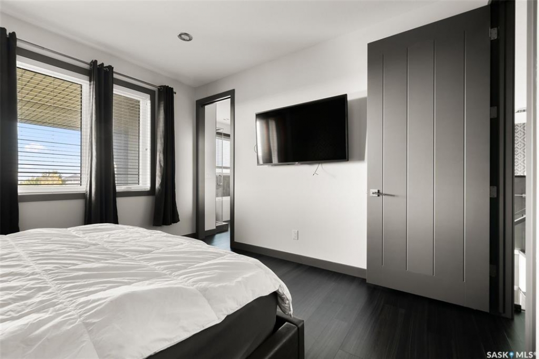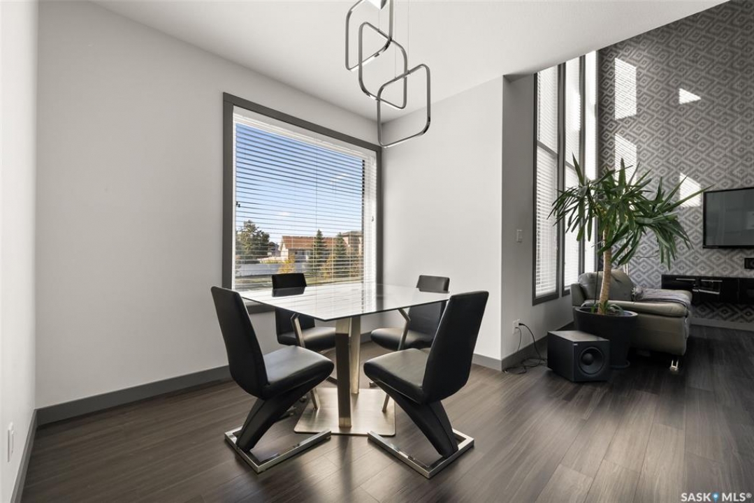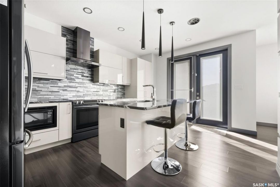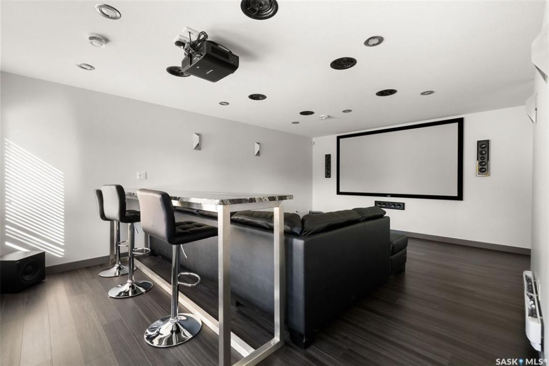 Welcome to this stunning custom-built walkout in Fairways West! This home is in a prime location and backs the beautiful walking path leading to the Goulet Golf Course. The moment you step inside, 19-foot ceilings and floor-to-ceiling windows create a dramatic sense of space and light. A striking glass-and-stainless steel staircase, accented with subtle stair lighting, introduces the home's modern, refined style. The kitchen is both beautiful and practical, featuring custom white cabinetry, a generous sit-up island, granite countertops and premium stainless-steel appliances. There is garden door access from the kitchen which opens onto a private west-facing deck—ideal for morning coffee or evening entertaining while taking in the peaceful green space. Upstairs you'll find the primary retreat, complete with a walk-in closet and a luxurious five-piece ensuite featuring dual vanities, a stand-alone soaker tub and a custom-tiled shower. Two additional bedrooms, a four-piece bath, and a convenient laundry room complete this level. The fully developed walkout basement is built for entertaining or unwinding after a long day. The rec room is set up as a perfect home theatre complete with a projector screen and built-in sound system! A sleek wet bar adds style and convenience, while the fourth bedroom doubles as a guest room, office, or home gym. Expansive windows keep the space bright and welcoming. The oversized double attached garage is a standout—heated, drywalled and equipped with 12-foot ceilings, a floor drain, and water taps. There are built-in speakers throughout the house and receivers are all included. Every detail in this home combines contemporary design with practical luxury. Discover a residence where craftsmanship and lifestyle meet in one exceptional property. This Fairways West show piece is one you do not want to miss out on!