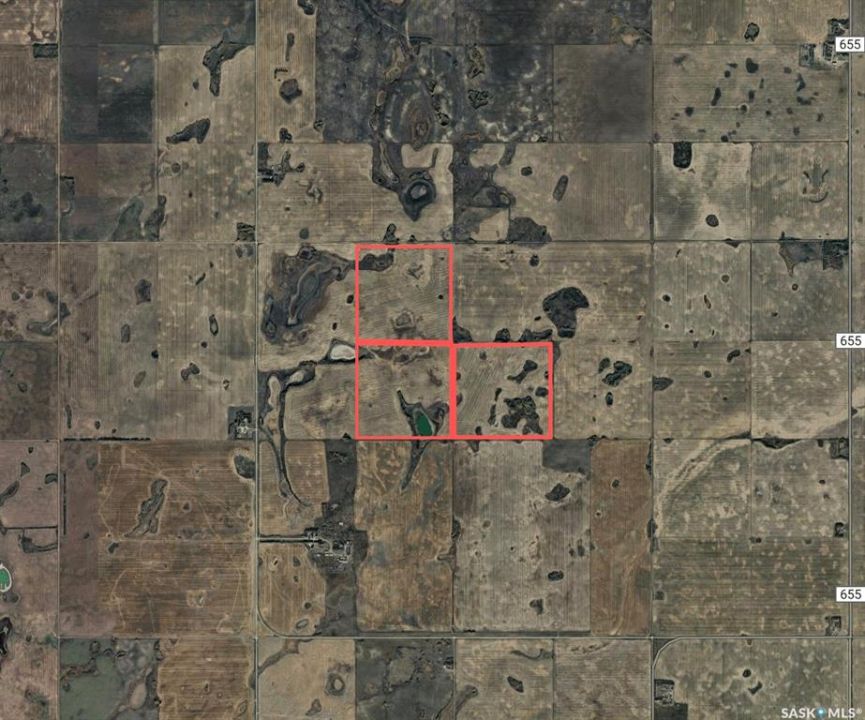 3 quarters touching for sale in the RM of Eagle Creek. The total SAMA cultivated acres are 408 acres and the ISC titles acres are 478.70. The soil classes are F,L,M with SAMA assessments of $348,300, $227,400 and $252,700. Peas and some wheat grown in 2025. Wheat was grown in 2024 and Canola in 2023. Buyer to do their own due diligence regarding the number of acres that are suitable for crop production. $450,000/quarter 3308/SAMA cultivated acres 1.62 x SAMA 2025 assessed value.