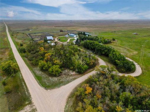 Opportunity knocks in the Holdfast, SK area — a nicely configured ranching yard site on one quarter section of mixed-use land in RM of Sarnia #221. Ideal for expanding your cattle operation or starting a hobby ranch, this property combines infrastructure, reliable water, and prairie charm. Located on the west side of Last Mountain Lake, it also offers great nearby recreation. SAMA field sheets report 125 cultivated acres, currently in tame hay but suitable for crop production. The land is partially fenced with 4-strand barbed wire in excellent condition; about 57 acres are not yet fenced and could add grazing capacity. Water is key, and this property is well supplied with an artesian well, another water well, and two spring-fed dugouts. The 1,800 sq ft home, built in 1915, has been very well cared for and offers 4 bedrooms, 2 bathrooms, a spacious living room, south-facing rec room, and a private primary bedroom tucked away from the main living area. The yard is sheltered by mature trees and well arranged for mixed farming. Outbuildings include: 40x56 quonset with power, 78x42 pole shed, 36x58 barn, butcher house with power & heat, 3-car detached garage, smoking shed, well house, and 3 sheds. The artesian well feeds a 400-gallon trough for livestock. Wooden corrals with gates/panels (some included) provide livestock handling. Carrying capacity for fenced land is ~15 head, with potential to increase by fencing ~57 additional acres. If you're looking for more land, two extra quarters are available separately just southwest (SK019387). With infrastructure, water, and proximity to recreation, this is an affordable opportunity to farm and ranch in a productive area.