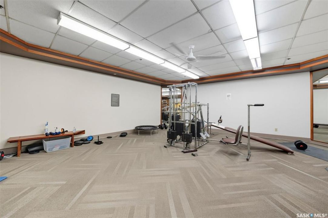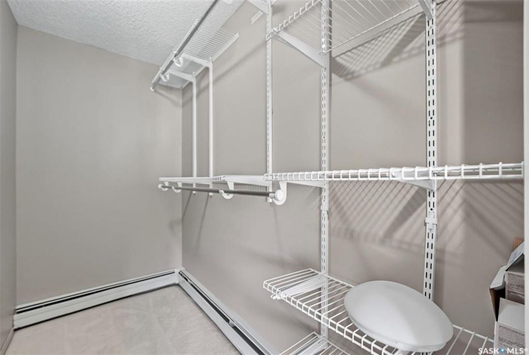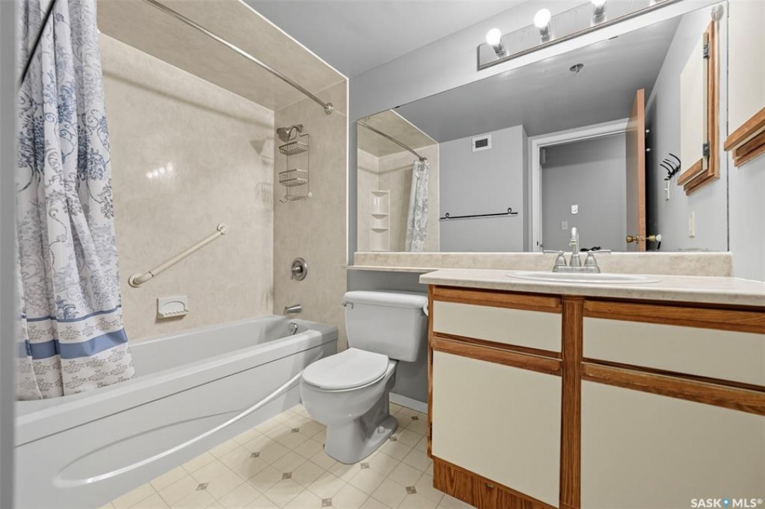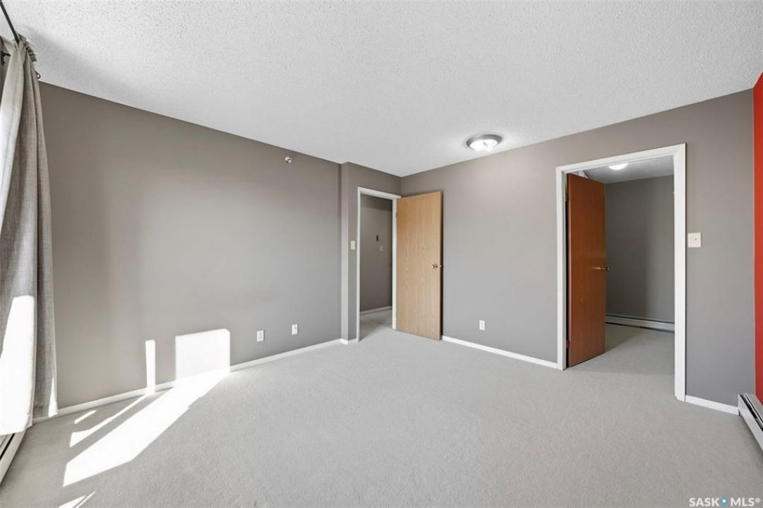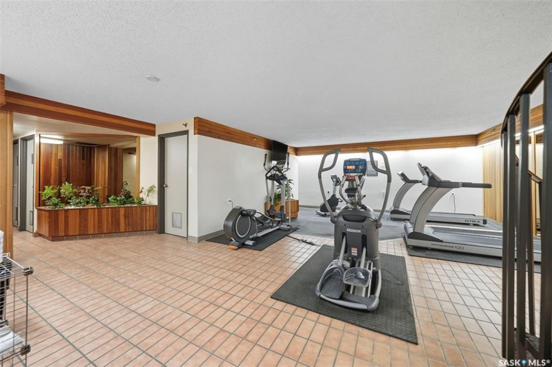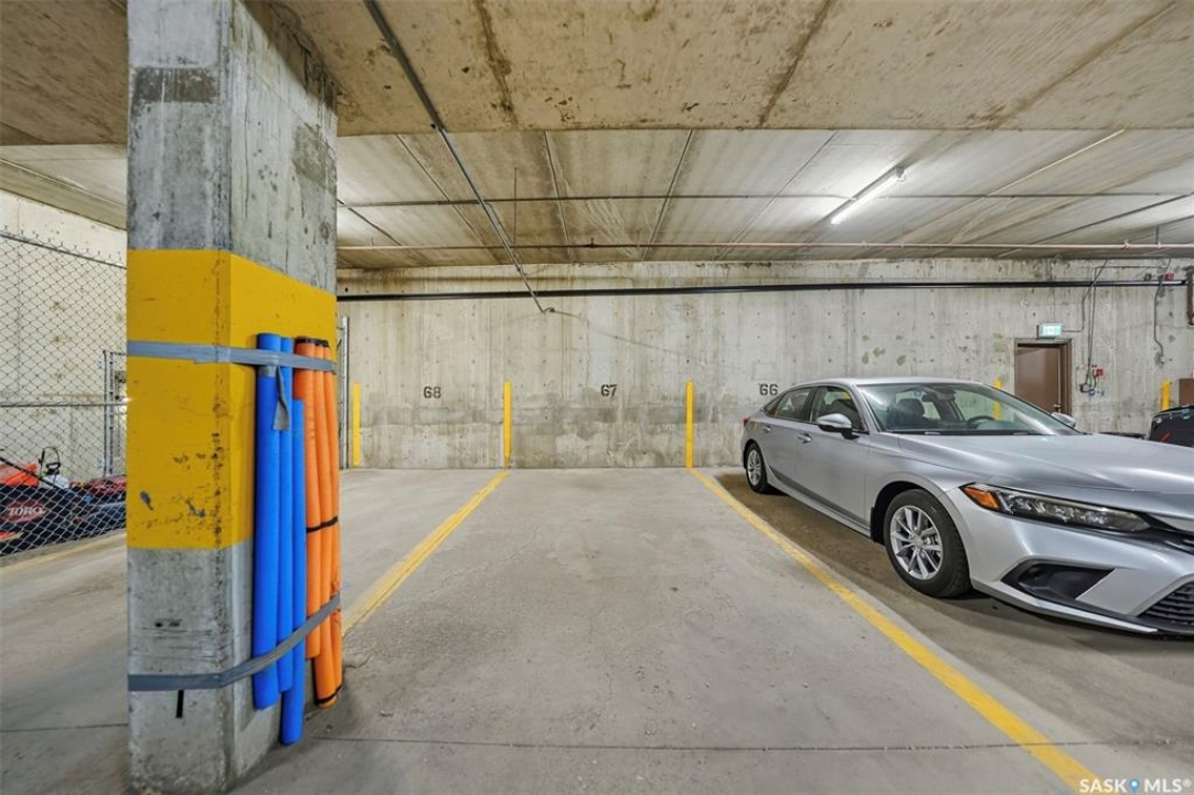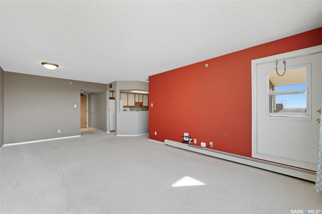17th floor condo with an AMAZING VIEW of the river and downtown city lights from this sunny, south-facing 2 bedroom and 1 bathroom condo located in the Hallmark Building. The living room has plenty of room and lots of natural light with patio doors to the balcony. The kitchen has plenty of cabinet space and comes with all appliances. The primary bedroom has a spacious walk-in closet and has patio doors to the south facing balcony. The 2nd bedroom is a good size and has a closet. The 4-piece bath is conveniently located beside the primary bedroom and this condo has in-suite laundry. The concrete balcony has space enough for a BBQ and a patio set to enjoy the river views. This condo has all new windows, comes with one underground parking stall and a secure storage room. The 27 storey Hallmark building features a renovated lobby area with new elevators, on-site convenience store, hair salon, fitness facilities with weights, cardio, sauna and a squash/racquetball court. Super convenient downtown location close to the river, U of S and all downtown amenities.