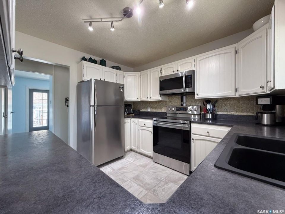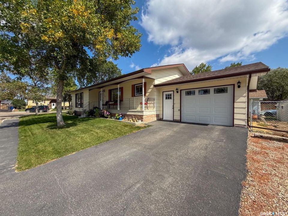 Welcome to 568 Poplar Crescent in the vibrant community of Shaunavon! This 1,328 sqft bungalow offers a welcoming layout and fantastic entertaining spaces. Step onto the covered front porch — the perfect spot for a peaceful morning coffee. Straight through the front door, you'll find 3 of the 4 main-floor bedrooms, all well-sized and conveniently located next to the updated 4-piece bathroom. To the left of the entry is the sunny living room with large windows that bring in an abundance of natural light, while to the right is the dining area and kitchen, where you'll appreciate the functional layout and easy flow of space. Just off the kitchen is the 4th bedroom or home office — featuring its own 2-piece ensuite and garden doors that lead to a backyard deck ideal for summer BBQs or evening drinks. Downstairs, the fully developed basement is ready for entertaining, offering a spacious rec room with a show-stopping wet bar at one end and a cozy wood-burning fireplace at the other. One additional bedroom, a 3-piece bathroom, a den/storage room, laundry/utility room round out the lower level. The backyard is fully fenced and thoughtfully designed with a deck, 8x8 shed, garden area, and underground sprinklers in the front and side yard. The home also includes a single attached garage, a well-maintained furnace with regular servicing, a 100-amp panel, and a water heater from 2019. Located in a friendly, welcoming town with schools, parks, shops, and recreation close by, Shaunavon offers small-town charm with all the essentials. Whether you're starting out, growing your family, or looking for a move-in ready place with room to breathe — this is a home that delivers.