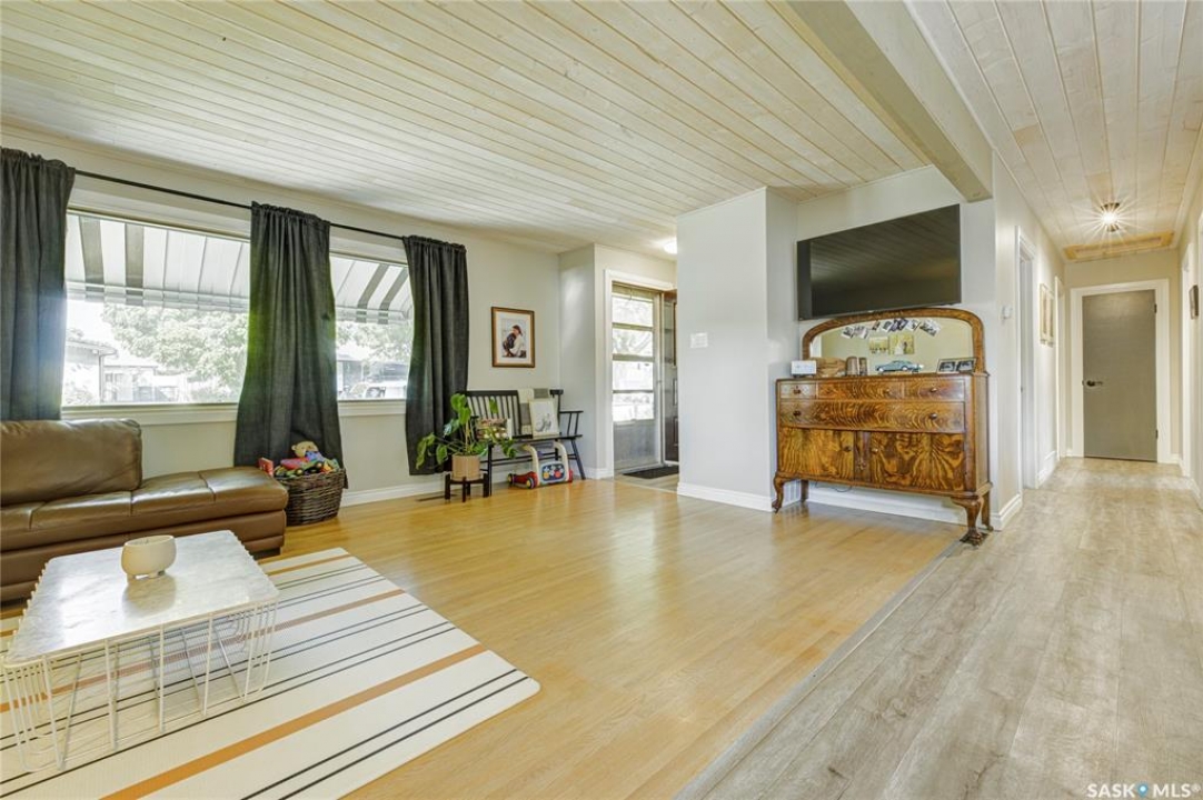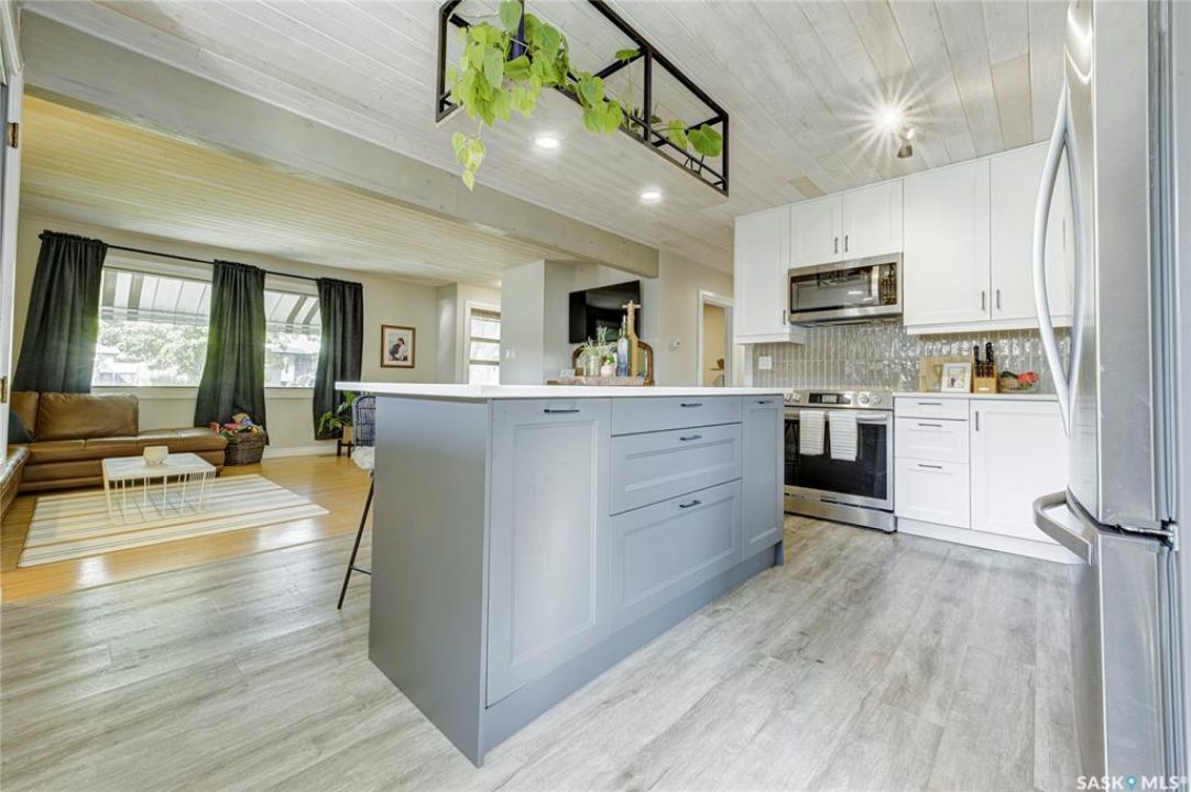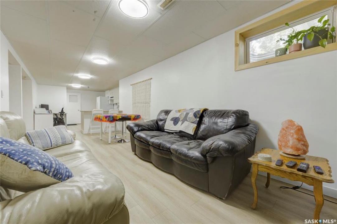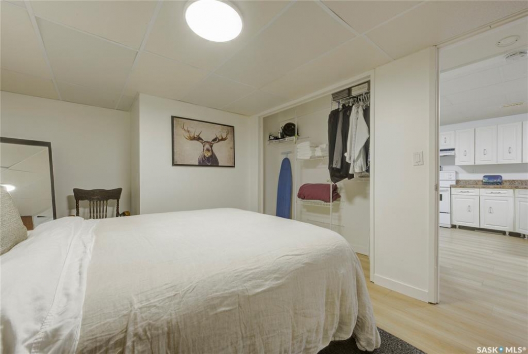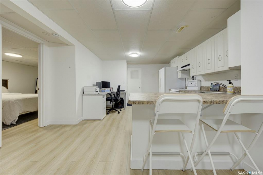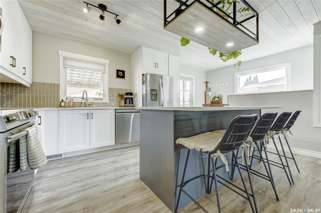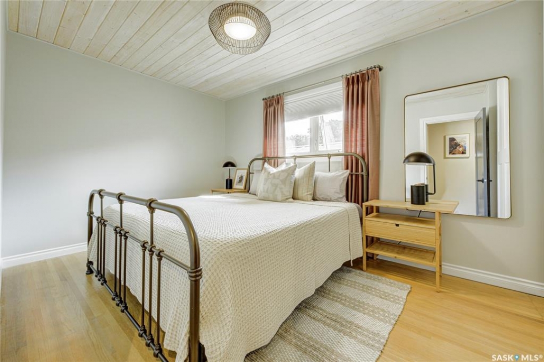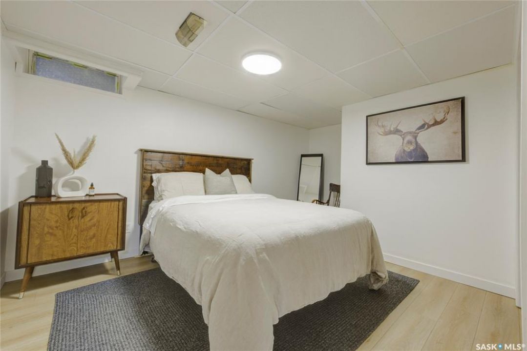 Beautifully Updated Bungalow in Richmond Heights! Nestled in the desirable, tree-lined community of Richmond Heights, this fully updated bungalow offers the perfect blend of modern comfort and convenience. Ideally located close to the river, downtown, the University of Saskatchewan, SaskPolytech, and with quick access to Circle Drive, this home is a rare find. Featuring 4 bedrooms and 2 bathrooms, the property includes a non-conforming 1-bedroom basement suite with its own laundry—ideal as a mortgage helper or for extended family. One of the upstairs bedrooms has been converted into a convenient laundry room, adding flexibility to the layout. The main floor boasts a stunning kitchen with quartz countertops, stainless steel appliances, and a stylish open feel accented by pine tongue-and-groove ceilings that flow through the living room, kitchen, and primary bedroom. The living room and primary Bedroom are finished with original hardwood floors, creating a warm and inviting space. Outside, you'll find plenty of parking with a driveway that accommodates 3 vehicles, plus a double detached garage featuring a floor drain, a work bench and built-in exhaust fan—perfect for hobbyists or those who appreciate a functional workspace. With every detail inside updated within the past five years, this home is move-in ready and located in one of Saskatoon's most sought-after areas.