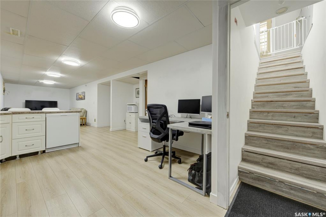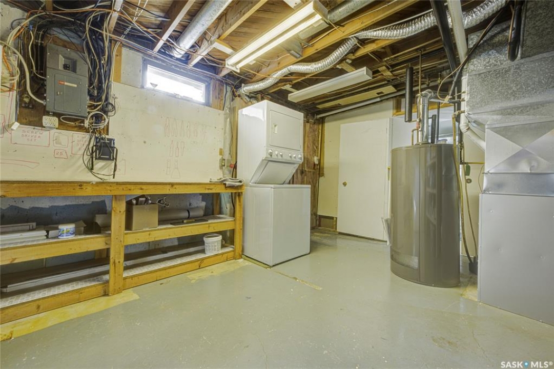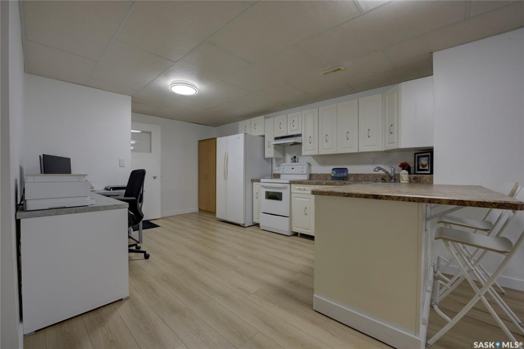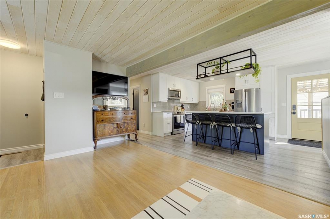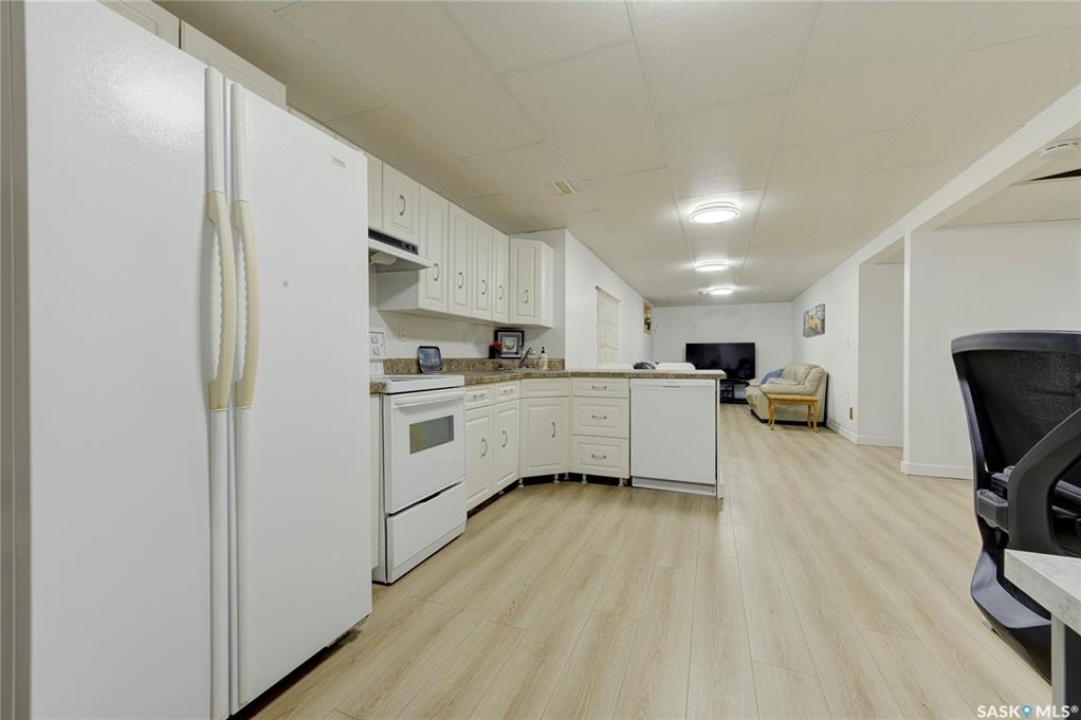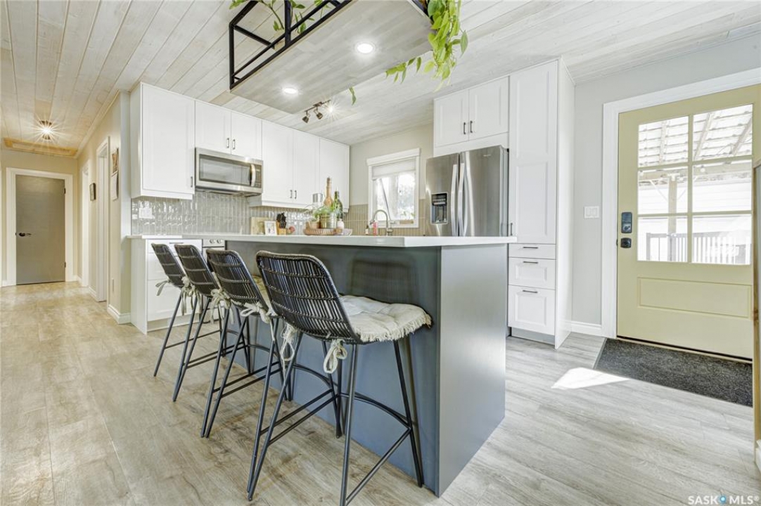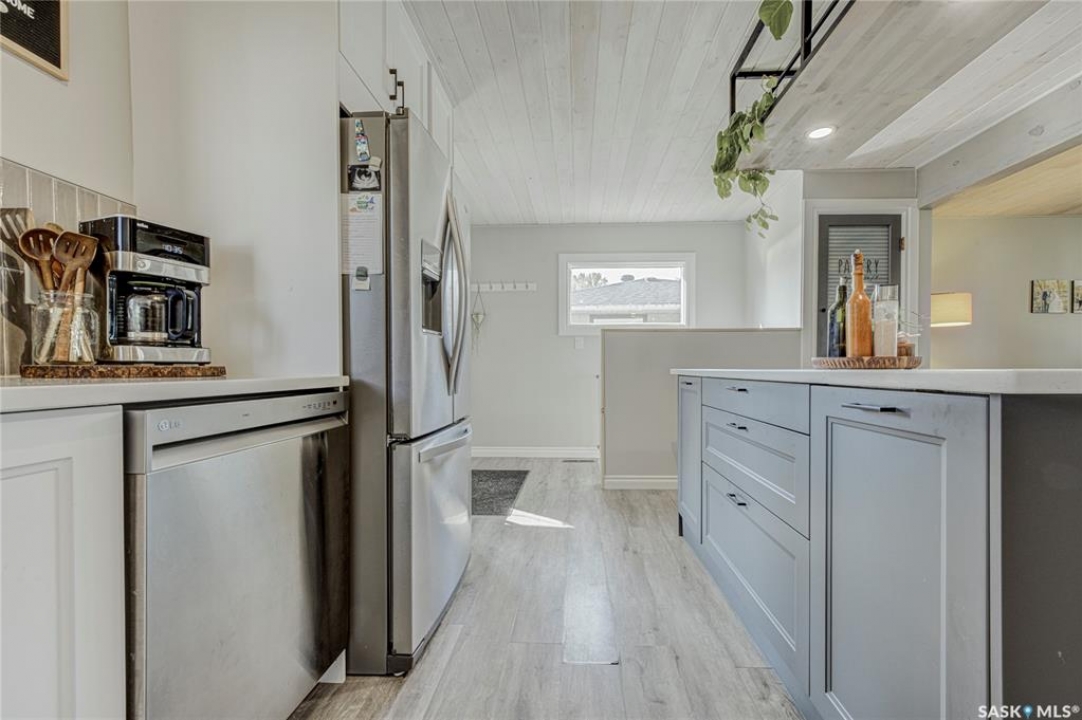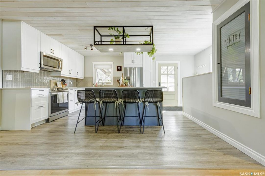 Beautifully Updated Bungalow in Richmond Heights! Nestled in the desirable, tree-lined community of Richmond Heights, this fully updated bungalow offers the perfect blend of modern comfort and convenience. Ideally located close to the river, downtown, the University of Saskatchewan, SaskPolytech, and with quick access to Circle Drive, this home is a rare find. Featuring 4 bedrooms and 2 bathrooms, the property includes a non-conforming 1-bedroom basement suite with its own laundry—ideal as a mortgage helper or for extended family. One of the upstairs bedrooms has been converted into a convenient laundry room, adding flexibility to the layout. The main floor boasts a stunning kitchen with quartz countertops, stainless steel appliances, and a stylish open feel accented by pine tongue-and-groove ceilings that flow through the living room, kitchen, and primary bedroom. The living room and primary Bedroom are finished with original hardwood floors, creating a warm and inviting space. Outside, you'll find plenty of parking with a driveway that accommodates 3 vehicles, plus a double detached garage featuring a floor drain, a work bench and built-in exhaust fan—perfect for hobbyists or those who appreciate a functional workspace. With every detail inside updated within the past five years, this home is move-in ready and located in one of Saskatoon's most sought-after areas.