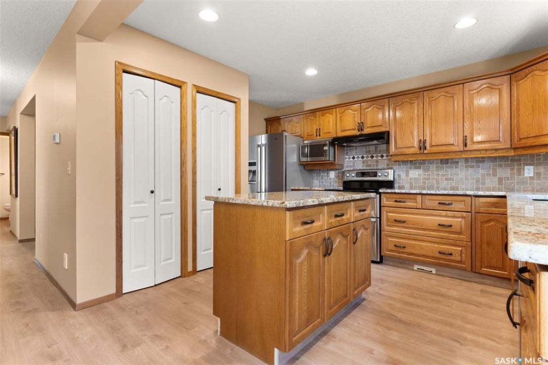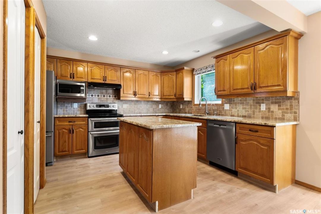 Welcome to 3562 Hazel Grove, a Varsity Homes custom built in 1994 home nestled in the charming east end community of Woodland Grove. This meticulously kept 2300+ sq ft 2 storey is overflowing with space and is ready for it's new family. Ideally situated close to schools, parks and all essential amenities. Upon entry the new flooring flows through the main floor. The front multi purpose room with a huge picture window could be a perfect reading den, play room or office. In the heart of the home we have a stunning oak kitchen with a centre island, stainless steel appliances, granite counters, tiled backsplash and a nice sized pantry. The kitchen is open to the casual family dining area that includes a garden door to the backyard and the cozy family room with a wood burning fireplace. The formal dining room is ideal for entertaining family and guests. The 2-piece powder room and the practical main floor laundry with direct access to the double garage plus a garden door to the outside completes the main floor. The 2nd floor has 4 bedrooms to ensure that every family member has their own space. The primary bedroom is oversized, featuring a spacious walk-in closet and an ensuite. The ensuite includes a sunken tub, a separate shower and a large vanity with ample storage space. The other 3 bedrooms are generously sized, and the family bathroom completes this floor. Down to the basement featuring new carpeting, this space offers a versatile rec room, a 5th bedroom ideal for guests or family, a recently renovated 3-piece bathroom and a large room for storage or could be customized for your needs. The pride and joy of this property is the stunning private yard with a beautiful deck perfect for relaxing or entertaining, a cozy firepit area, beautiful landscaping, is fully fenced for privacy and security and includes a convenient shed for extra storage. Furnace is approx 4-5 years old. This home combines functionality and potential for a growing family in a great location.