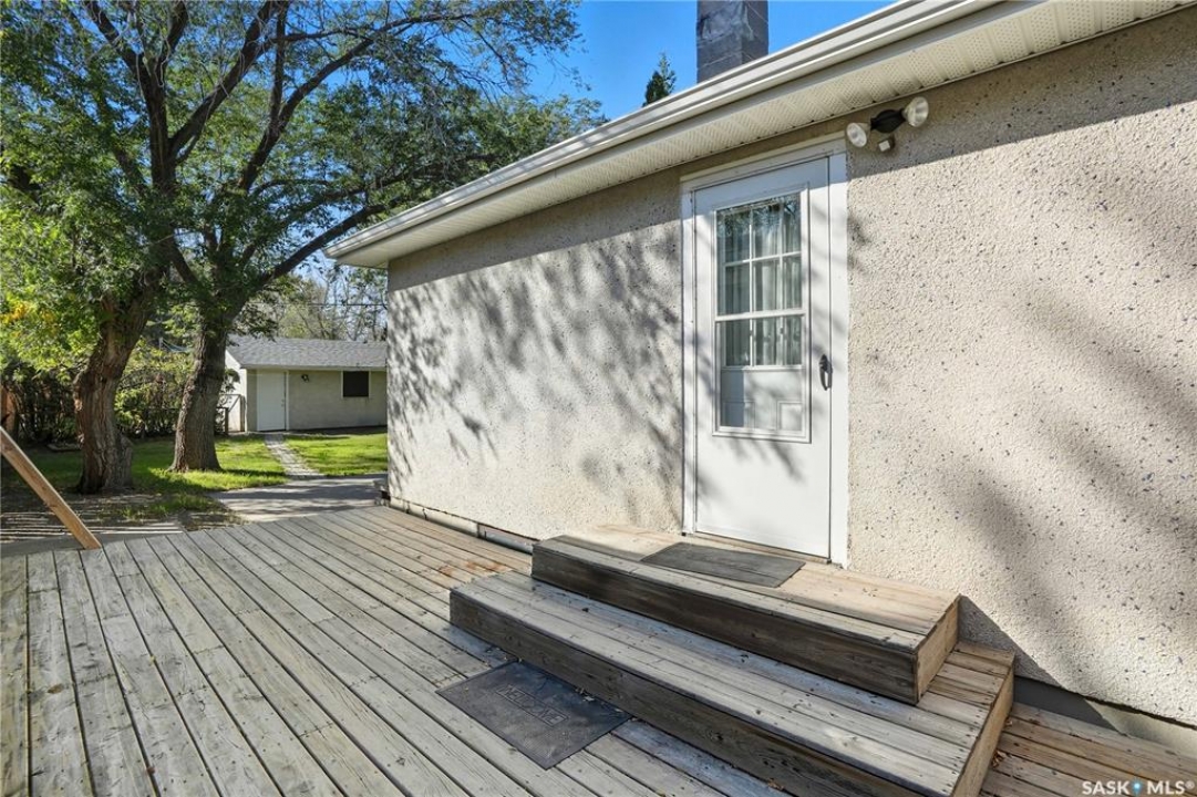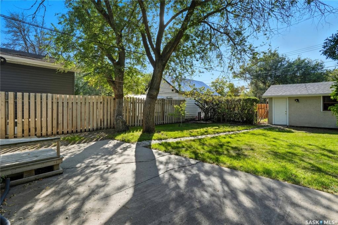 Welcome to 700 Connaught Street located in the family friendly neighbourhood of Rosemont. This property is conveniently situated close to parks, schools, grocery stores, restaurants and offers easy access to Lewvan Drive. This charming home boasts wonderful curb appeal with a large front yard and an abundance of mature trees. The exterior has been tastefully updated with vinyl siding and rock imitation along with a lovely front deck. Extra insulation has also been added for improved comfort and energy efficiency. As you you enter the house you will be greeted by the living room with a large front window allowing tons of natural light to shine in. The piano can stay if the buyer so chooses. The kitchen is very spacious and offers plenty of counter space and wood cabinets with under mounted lighting. All appliances are included. The attached dining room is the perfect spot for entertaining. The 4 piece bathroom offers newer flooring a jet tub with a tile surround. Lastly you will find 2 comfortable bedrooms and a laundry room with the included washer and dryer which were purchased this year. The fully fenced private backyard provides ample space with a spot for a garden, a generous deck, plenty of greenery and backs a lane. Completing this property is a 1.5 car detached garage with brand new shingles. The garage is large enough to park your car while also allowing enough room for a work space. The side yard also provides an additional gravel driveway for parking. Additional features include: newer windows, energy efficient furnace installed in 2017, central air conditioning, and newer shingles/fascia/soffits and leaf guards replaced in 2020. This property is a must see!