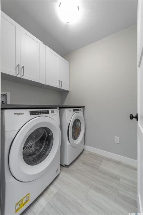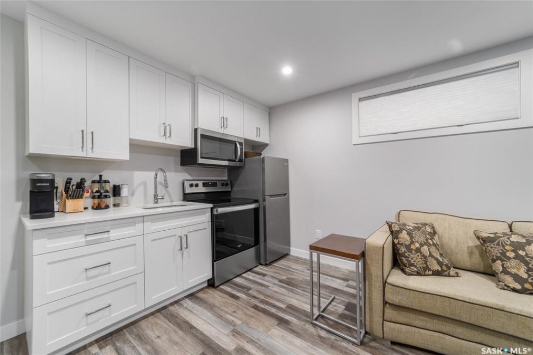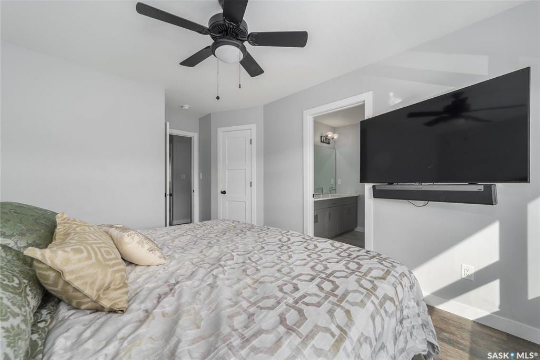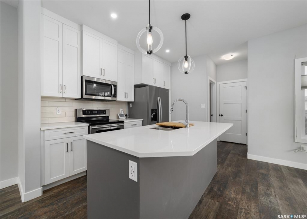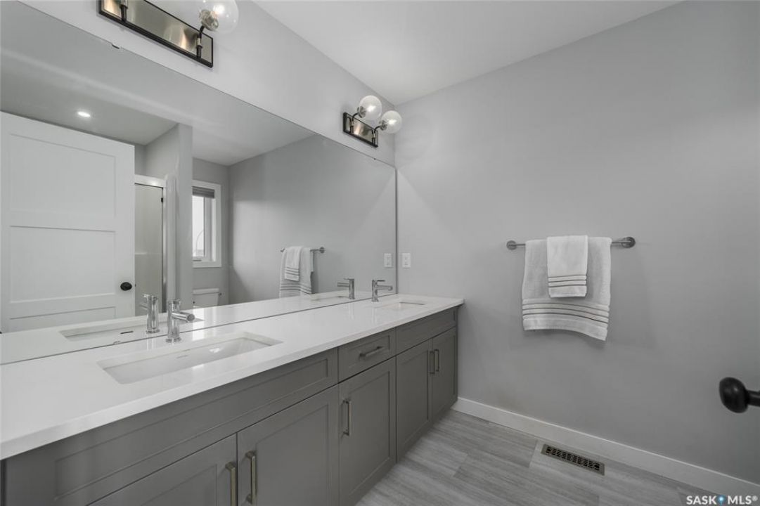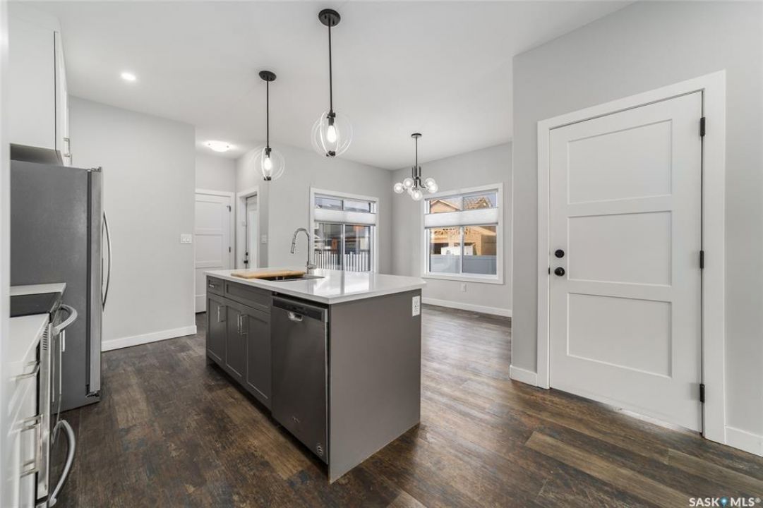 Welcome to 5140 E Simard Ave, located in The Towns in East Regina. This thoughtfully designed property offers the perfect blend of modern living and investment potential, featuring a regulation 1 bedroom suite with separate sidewalk and side entry, a great opportunity to live in style and convenience while generating additional rental income. As you step inside, you are greeted with 9ft ceilings, large windows with top-down bottom-up blinds that allow the natural light to flood in without sacrificing privacy as well as durable luxury vinyl plank flooring that flows through the entire home. The kitchen boasts white cabinetry, quartz countertops, tiles backsplash and stainless steel appliances with induction stove. A 2 piece bath with vanity and a generous size closet for additional storage finish off the main level. Upstairs, the vinyl plank flooring and natural light continue to flow into the primary bedroom with walk-in closet and ensuite that consist of a large double vanity and walk-in showing. 2 more bedroom, a 4 piece bath and laundry room with additional cabinetry and quartz countertops. All bedrooms upstairs come with black out blinds and ceiling fans with remotes. The quartz countertops, white cabinetry and luxury vinyl plank flooring continue to the lower level suite with galley style kitchen, in-suite laundry and air exchanger. The exterior and mechanical upgrades make life easy. Front and back underground sprinklers controlled by Rachio app, Eco bee thermostat. The detached heated and insulated garage, Wi-Fi enabled garage remotes, 100amp panel, 240v, and wired internet. The corner lot not only gives added yard space, but also allows for additional street parking along the side. This neighborhood is known for its abundance of playgrounds, walking paths and green space, close proximity to shopping, groceries, gas and restaurants as well as medical clinics and pharmacies, with everyday convenience just minutes away at Acre 21 and Victoria East amenities.