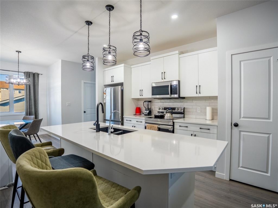 Welcome to 7956 Lentil Ave, a beautifully designed two-storey townhome located in the sought-after community of Westerra. This Pacesetter built home offers over 1,200 sq ft of modern living with a thoughtful layout perfect for families and first-time buyers alike. The second floor features three comfortable bedrooms, including a generous primary suite, and two full bathrooms, providing plenty of room and privacy for the whole family. On the main floor, you'll find a bright, open-concept living space with a stylish kitchen, dining area, and a convenient half-bathroom. Outside, enjoy the benefit of a single-car detached garage and a private yard—ideal for entertaining or relaxing. Best of all, this property comes with no condo fees, giving you freedom and flexibility in homeownership. Located in the growing Westerra community, you'll be close to parks, walking paths, schools, and all the amenities Regina's west end has to offer. Don't miss your chance to own this move-in ready home in a fantastic neighborhood!
