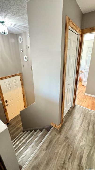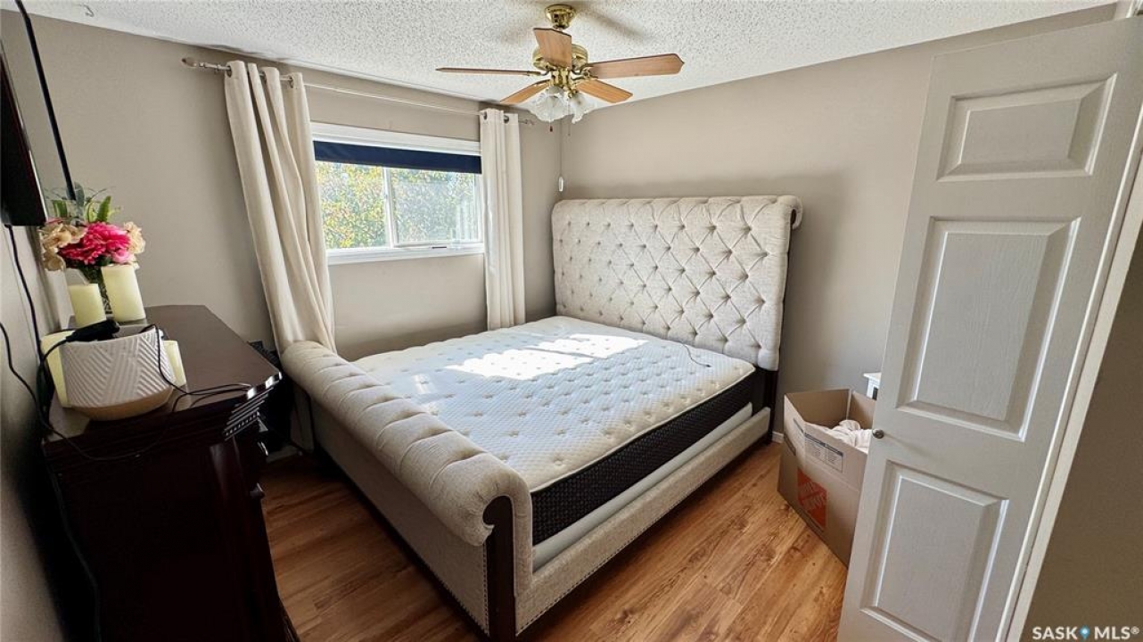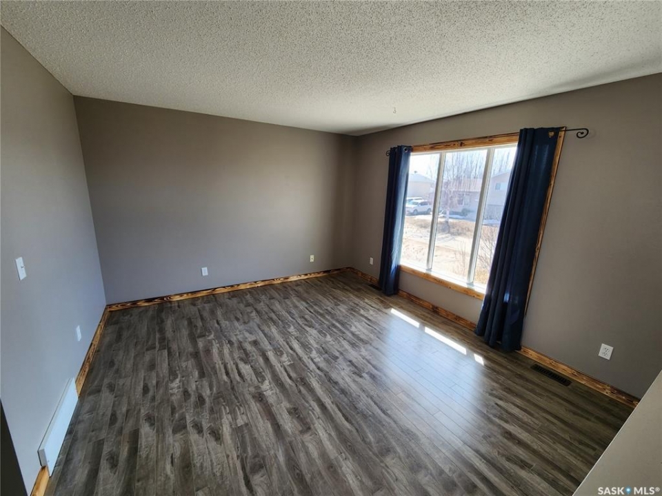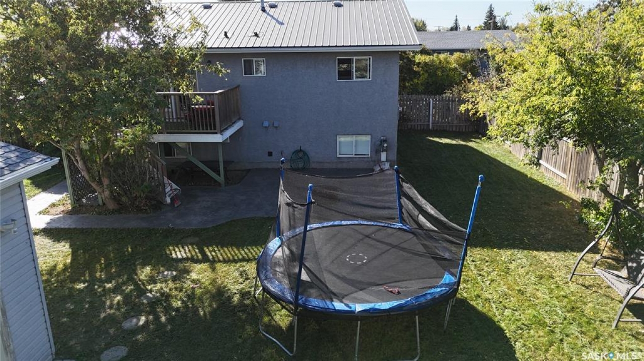 Welcome to 303 4th Street in Dundurn, Saskatchewan. This spacious 984 sq ft bi-level home is located just 30 minutes south of Saskatoon and only five minutes from Blackstrap Provincial Park. Perfect for families, first-time buyers, or anyone looking for more space, this 5-bedroom, 2-bathroom property offers excellent value with room to add instant equity. Set on a 66' x 126' lot, the yard features MATURE TREES, STUCCO SIDING, a METAL ROOF on the house (garage has asphalt shingles), and an OVERSIZED 28' x 24' fully insulated double detached garage. Inside, the bright, functional layout includes a welcoming living room with large SOUTH FACING windows, a kitchen with concrete countertops, white cabinetry, pantry, and stainless steel appliances. The adjacent dining nook opens to the back deck, creating an easy indoor-outdoor flow. Durable laminate flooring is found throughout the home for a clean, modern look. The main floor offers three bedrooms and a full 4-piece bathroom. The fully finished basement adds two more spacious bedrooms, a family room, a 3-piece bathroom, extra storage and laundry/utility space. Recent updates include a washer/dryer, laminate flooring, trim, bathroom fixtures, and the home is equipped with forced-air natural gas heating, an owned furnace, and a gas water heater. Appliances are included, making this home move-in ready. This Dundurn real estate listing backs onto open fields for peaceful prairie views while keeping you close to Saskatoon and Blackstrap Provincial Park. A rare opportunity to enjoy small-town living with modern convenience!