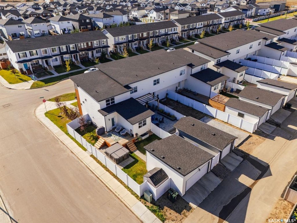 Welcome to 143 Westfield Rd. in Brighton! This stunning 1082 sq. ft. corner townhouse is filled with natural light thanks to expansive floor-to-ceiling windows and southern exposure. The main floor boasts a bright, open-concept design with a spacious living room featuring a full wall of south-facing windows and remote-controlled electric blinds. The kitchen/dining space offers European-style appliances, an oversized eat-up island. Convenient main floor laundry, a two-piece powder room, and a full primary suite with walk-through closet and three-piece ensuite complete this level. Upstairs, a gorgeous loft overlooks the main floor, creating an airy, light-filled retreat. The second primary bedroom features a three-piece ensuite and large walk-in closet. The fully finished basement offers even more living space with a large family room, games/fitness area, a spacious bedroom, and a four-piece bathroom. Enjoy the oversized backyard that comes with this corner lot, fully fenced with no-maintenance PVC, complete with a large deck and beautiful patio—perfect for entertaining. A double detached garage adds convenience. Located in one of Saskatoon's most vibrant neighborhoods, this home is steps away from shops, restaurants, theaters, and all the amenities Brighton has to offer.