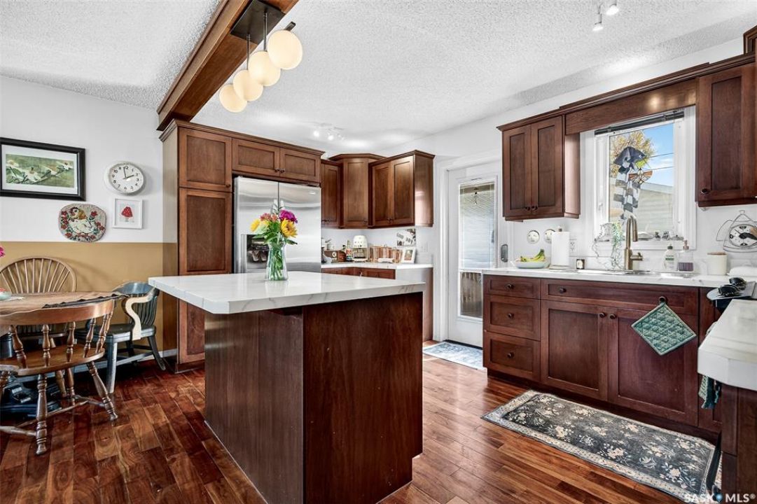 Warm & Welcoming Bi-Level on South Hill — Steps from the New School! This lovely bi-level is perfectly nestled in a quiet South Hill neighborhood — just a short walk from the brand-new joint-use elementary school, making it an ideal spot for families with young kids or anyone who values a great community feel. This home features 3 comfortable bedrooms and 2 bathrooms, with a layout that's both functional and cozy. The main floor features a bright, open living area, a kitchen that offers plenty of cabinet space and a handy island — perfect for meal prep, casual breakfasts, or helping with homework while cooking dinner. Down the hall you will find two bedrooms, and a full 4-piece bath! Downstairs, there's even more room to spread out with a large family room, a great sized bedroom, a convenient half-bath, and tons of space for movie nights, playtime, or guests. Through the garden door in the kitchen, enjoy easy access to your backyard oasis — complete with a deck, patio area, and an awesome kids' play structure! Whether you're entertaining friends or enjoying a quiet evening outside, this space is ready for it all. Finally, the oversized double garage is a real bonus —perfect for hobbies, storage, and keeping the snow off the car come winter!! Don't miss your chance to make this South Hill gem yours!
