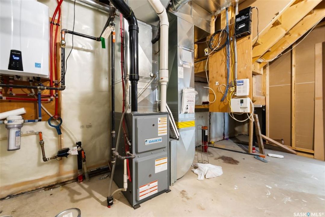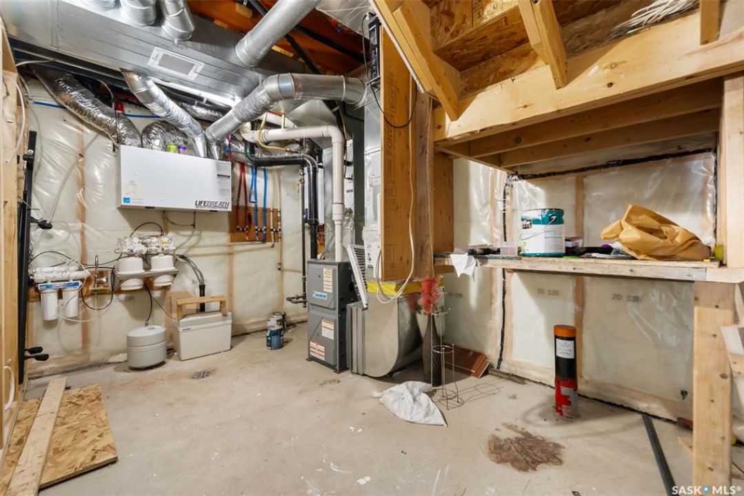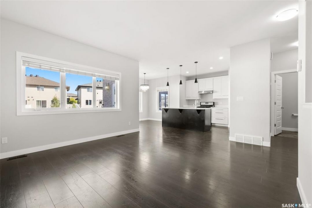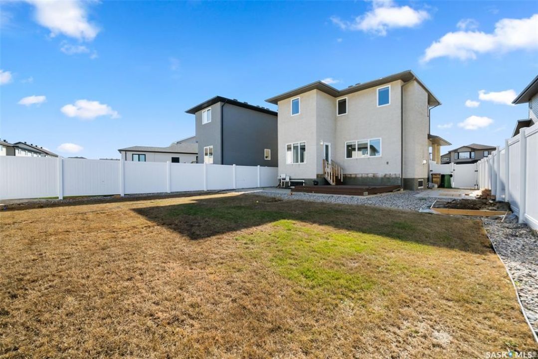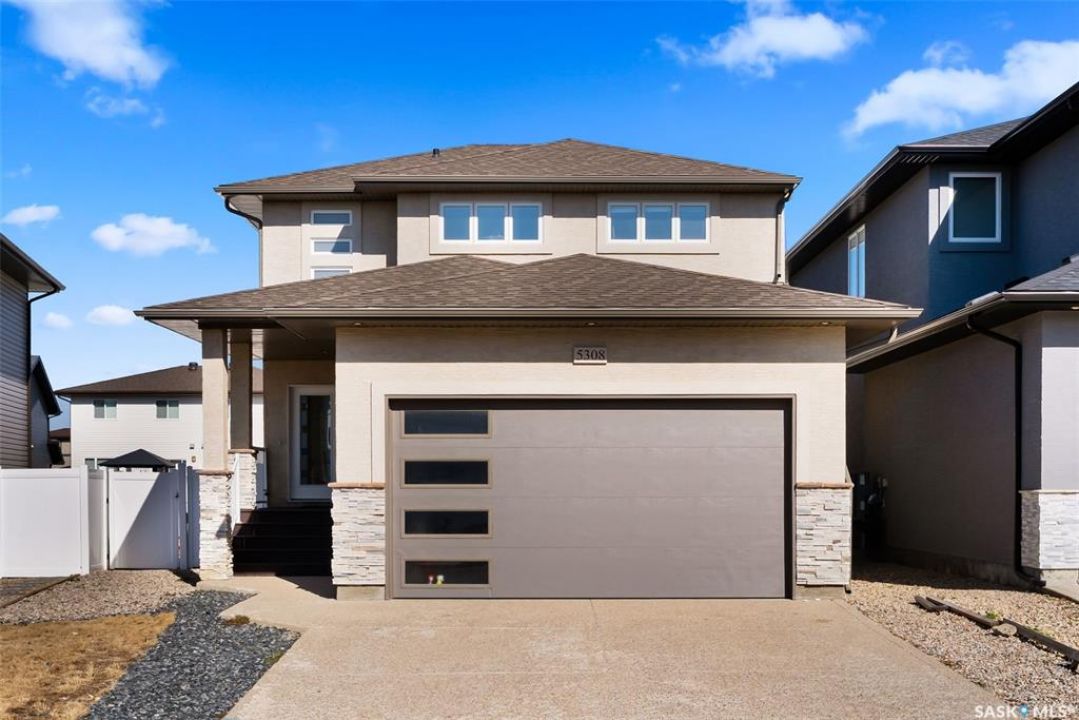 Welcome to 5308 Green Alder Way E, a beautiful 2-storey home located in the highly sought-after neighbourhood of Greens on Gardiner. Built in 2016, this 1,656 sq. ft. property offers modern finishes, a functional layout, and plenty of space for the whole family. The main floor is bright and open, featuring a spacious living room with a striking feature wall and fireplace, perfect for cozy evenings. The sleek kitchen showcases white cabinetry, quartz countertops, stainless steel appliances, a large island with bar seating, and is complimented by a stylish dining area with a modern chandelier and large windows overlooking the backyard. A convenient 2-piece bath and main floor laundry complete this level. Upstairs, you'll find three comfortable bedrooms, including a large primary suite with a walk-in closet and a 5-piece ensuite featuring double sinks, a soaker tub, and a separate shower. Two additional bedrooms and a full 4-piece bath provide plenty of room for family or guests. The fully finished basement offers even more living space with a spacious recreation room, an additional bedroom, office space, and a 4-piece bath—ideal for teenagers, extended family, or a home office setup. Outside, the backyard is fully fenced and landscaped with a patio, deck, and low-maintenance rock accents—ready for you to add your personal touch. The double attached garage provides secure parking and extra storage. Located within walking distance to schools, parks, shopping, and all East Regina amenities, this home combines style, comfort, and convenience. This property is move-in ready and waiting for its next owners. Don't miss your opportunity to live in one of Regina's most desirable communities!