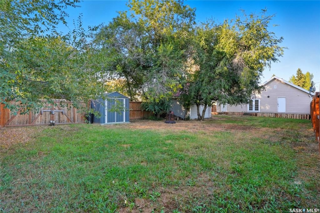Small-Town Charm Meets Big Value in Harris! Welcome to 105 Main Street in Harris, SK — a friendly rural community just 45 minutes from Saskatoon and 20 minutes from Rosetown. This massive bungalow offers incredible value and plenty of room for the whole family. Inside, you'll find an open-concept living and dining area, perfect for entertaining, plus 4 oversized bedrooms, a den, and 3 full bathrooms. A designated laundry area makes daily living easy. Step outside to enjoy a beautiful covered front veranda and a huge fenced backyard with mature trees, a deck, storage shed, and a smaller detached garage/workshop — ideal for projects or extra storage. Major renovations were completed about 10 years ago, including laminate flooring, updated kitchen cupboards and countertops, bathrooms, plumbing, electrical, and windows. Plus, you'll enjoy peace of mind with a maintenance-free metal roof, new furnace (2024), water heater (2023), and fence (2021). Located right on Main Street, you're just steps from the grocery store, credit union, post office, and pub. This is an affordable family home with unmatched value — small-town living at its best! Contact your favourite REALTOR � today to book a viewing. Buyer to verify all measurements.