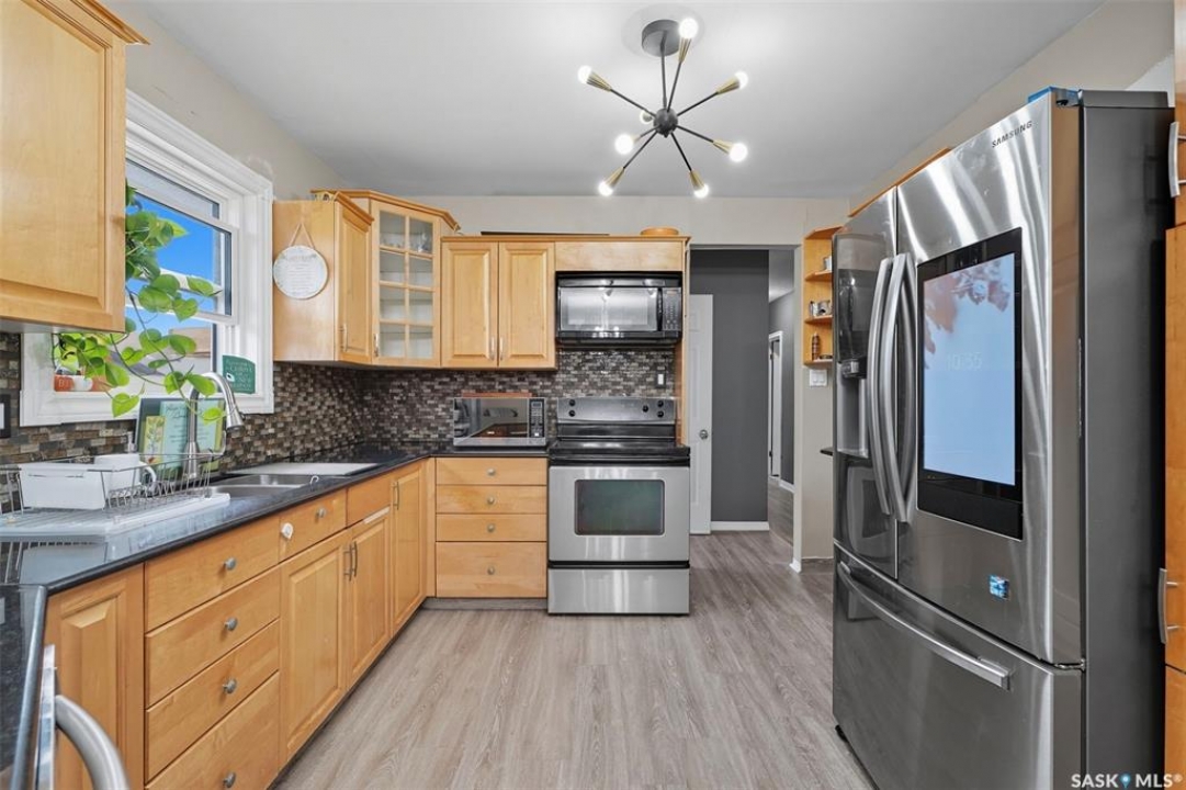 Your opportunity to own a large, sunny, bright bungalow in the sought after Adelaide/Churchill neighborhood. Total of 5 bedrooms, and two upgraded bathrooms. Garage is 22X22 and there is additional room behind for RV or additional vehicles. Light maple custom kitchen, with granite countertops, spacious dining room, and huge living room overlooking a unique, trendy front yard, with grass & unique maintenance free design as well. Modern choice of laminate flooring throughout the main floor. Basement is fully developed. Home is located near bus, schools, and a short jaunt to shopping & grocery.