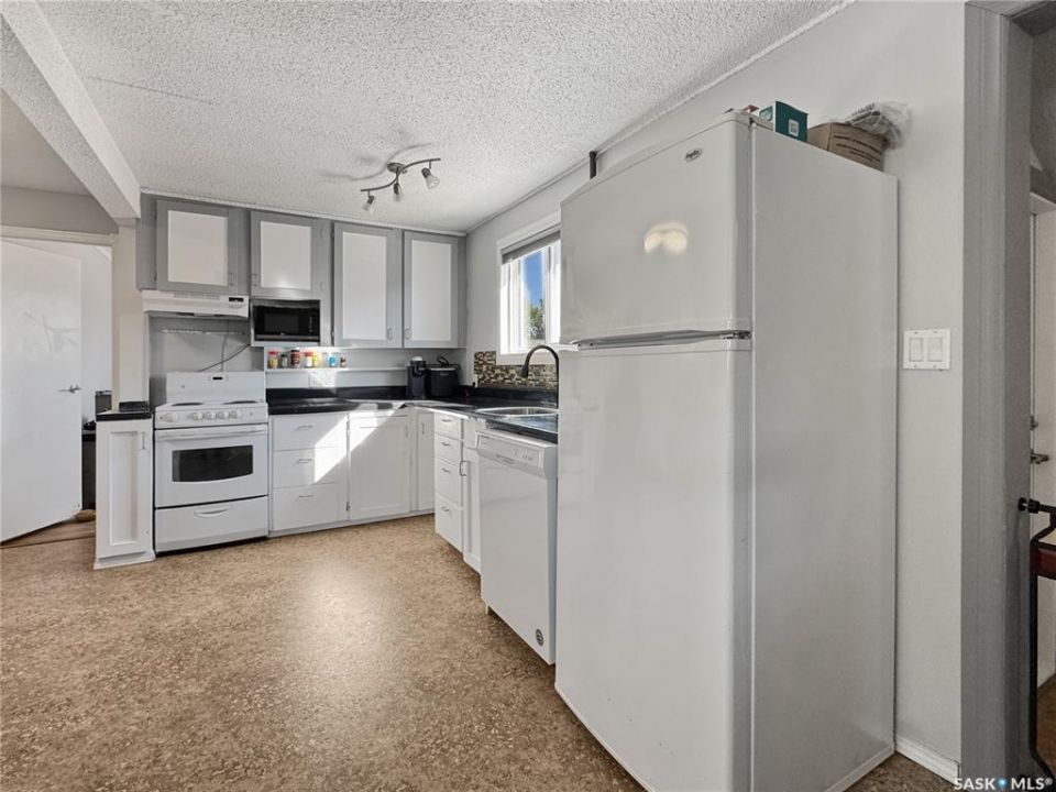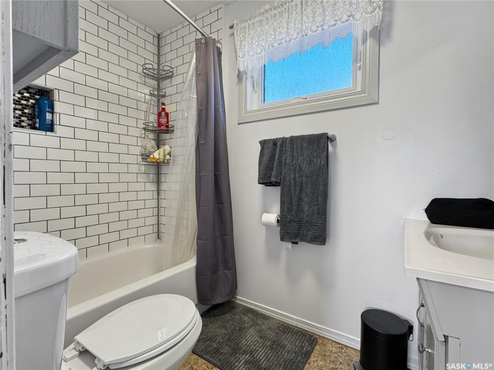 Nestled in a peaceful neighborhood, this adorable two-bedroom, one-bathroom home offers 752 square feet of cozy comfort. The main floor features a bright living area and a stylish kitchen with beautiful white cabinets and modern conveniences that make meal prep a breeze. The bathroom showcases a beautifully tiled tub surround, while the basement, partially finished with a subfloor and roughed-in bathroom, offers endless potential for expansion. Thoughtful updates throughout provide peace of mind, including a completely redone electrical system (2021), plumbing updates, windows (except 1 in porch), renovated porch (2019), renovated master bedroom (2021), and upgraded furnace (2005). The insulated double-car garage, brand-new washer and dryer, and landscaping improvements round out this well-maintained home. Affordable utilities average $80/month for power and $60/month for energy, with water, garbage, sewer, and recycling billed every two months at approximately $200. With its combination of charm, modern updates, and potential, this home is perfect for first-time buyers or anyone seeking a comfortable, move-in-ready property. Schedule your viewing today!