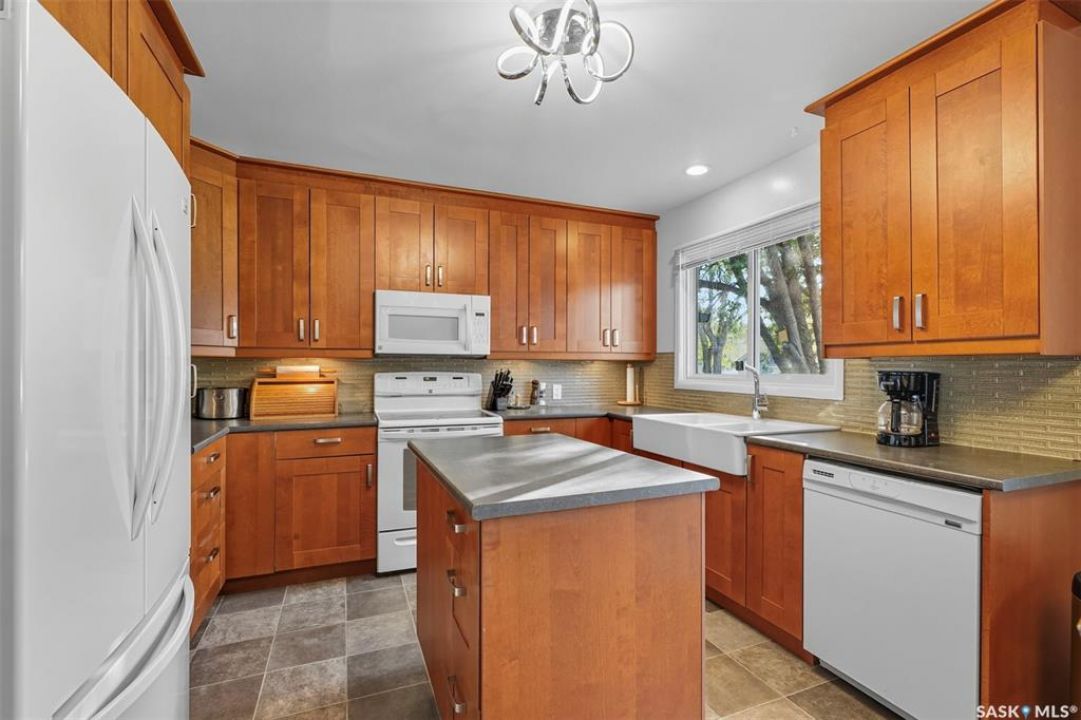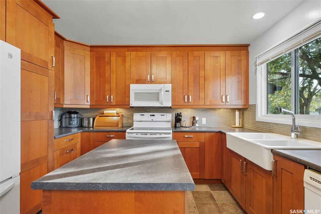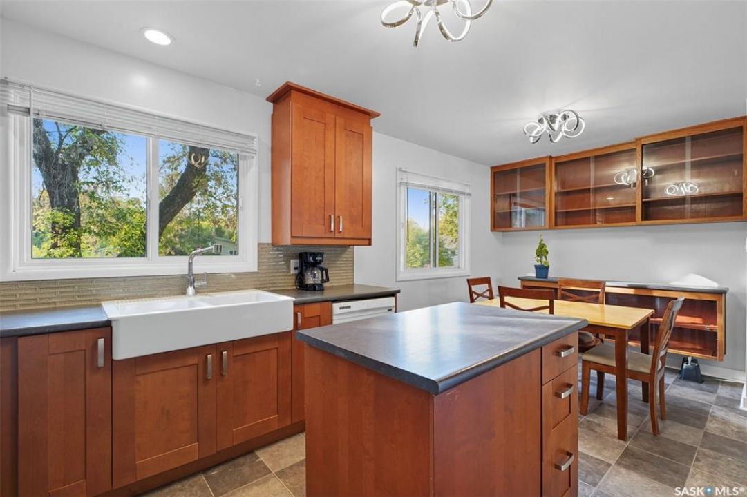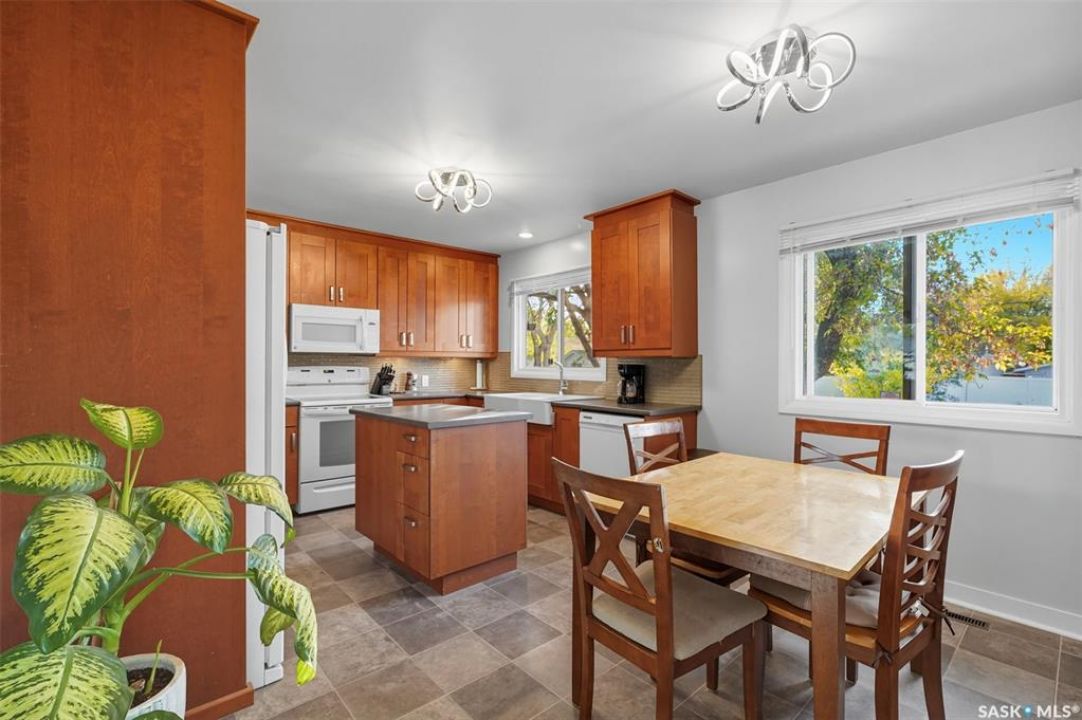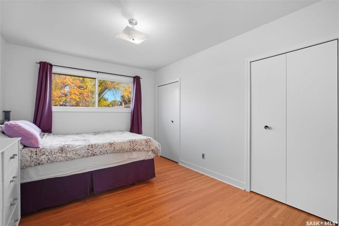 Looking for a home in the desirable Holliston neighbourhood? This 1,041 sq/ft bungalow is the perfect blend of character and updates, offering comfort, convenience, and excellent potential. The Main floor features 3 Bedrooms & 1 Bath, Original hardwood floors throughout much of the home with an Updated kitchen and bathroom for modern style and function Newer windows and shingles plus a fresh coat of paint, making this home move-in ready. The lower level is Fully developed basement with a 1 bed, 1 bath nanny suite, Potential to convert to a secured separate suite for added income or extended family. The outside exterior an Irregular rectangular lot shape with impressive dimensions: 78' frontage, 60' width at back, approx. 144' deep sides. Fully fenced with low-maintenance white vinyl fencing Fully landscaped and established with garden boxes and perennials ready to bloom each spring. A Single attached garage for added convenience Holliston is one of Saskatoon's most sought-after neighbourhoods—close to schools, shopping, Market Mall, parks, and easy access to Circle Drive and all city amenities. Size: 1,041 sq/ft bungalow Bedrooms: 3 up + 1 down Bathrooms: 2 total. October/November possession is possible Don't miss this opportunity to own in a fantastic neighbourhood with a property that checks all the boxes for family living, investment potential, and long-term value.