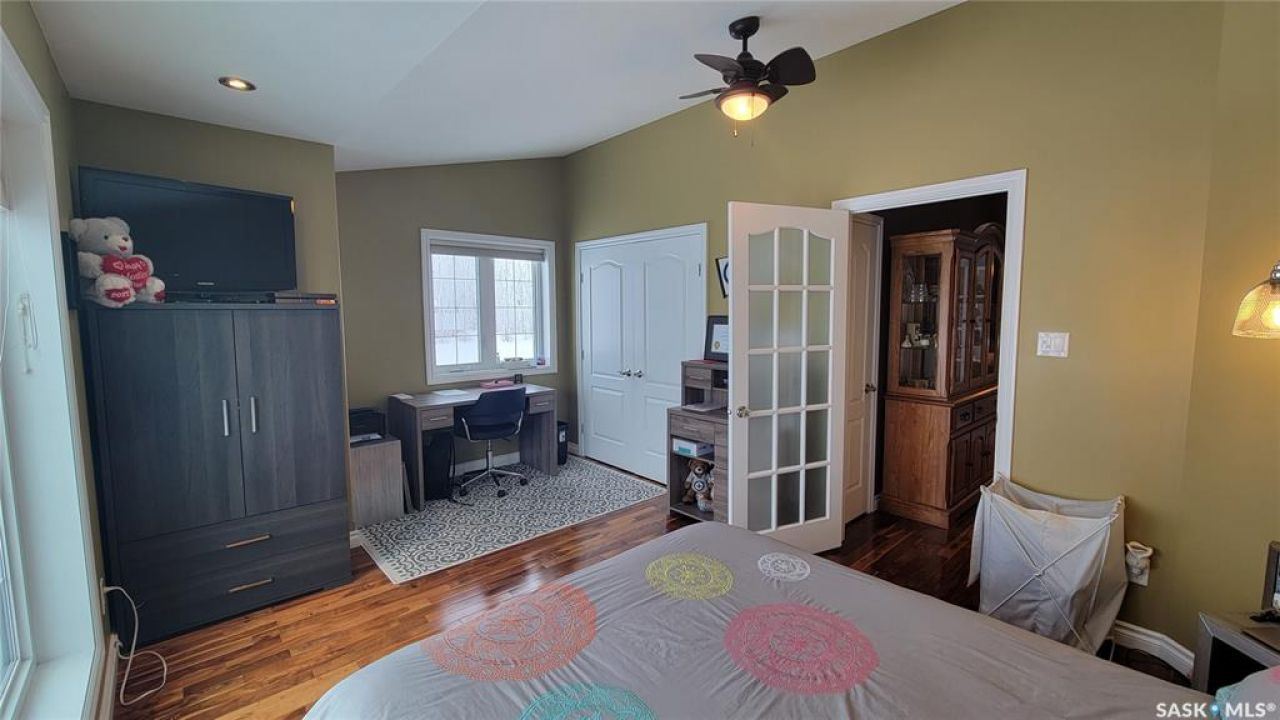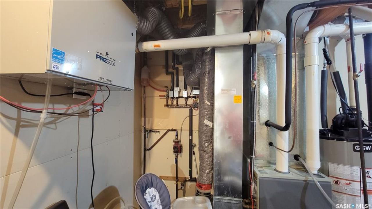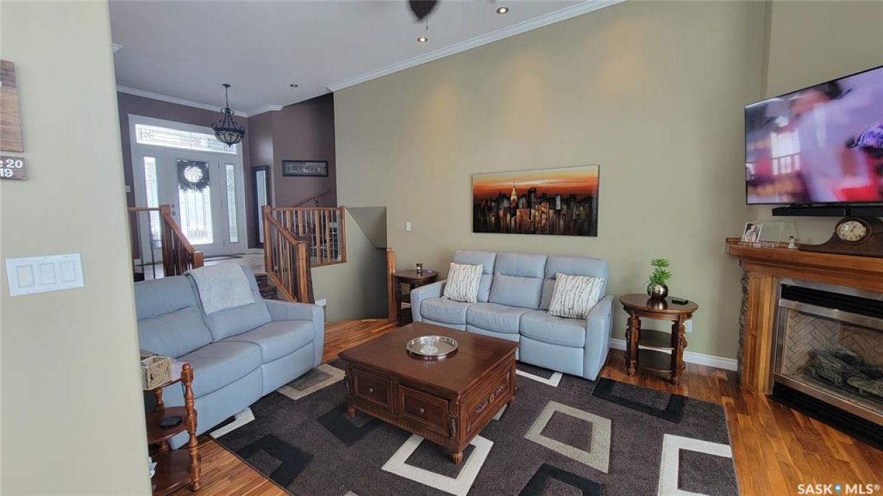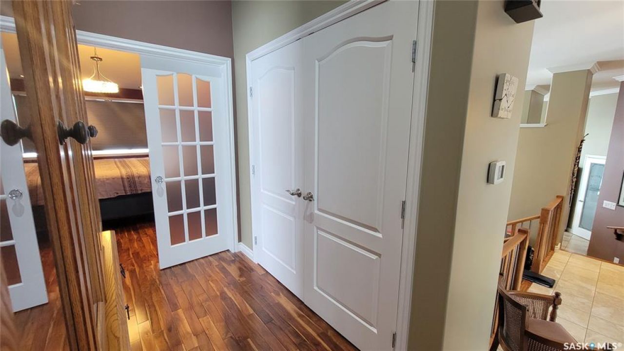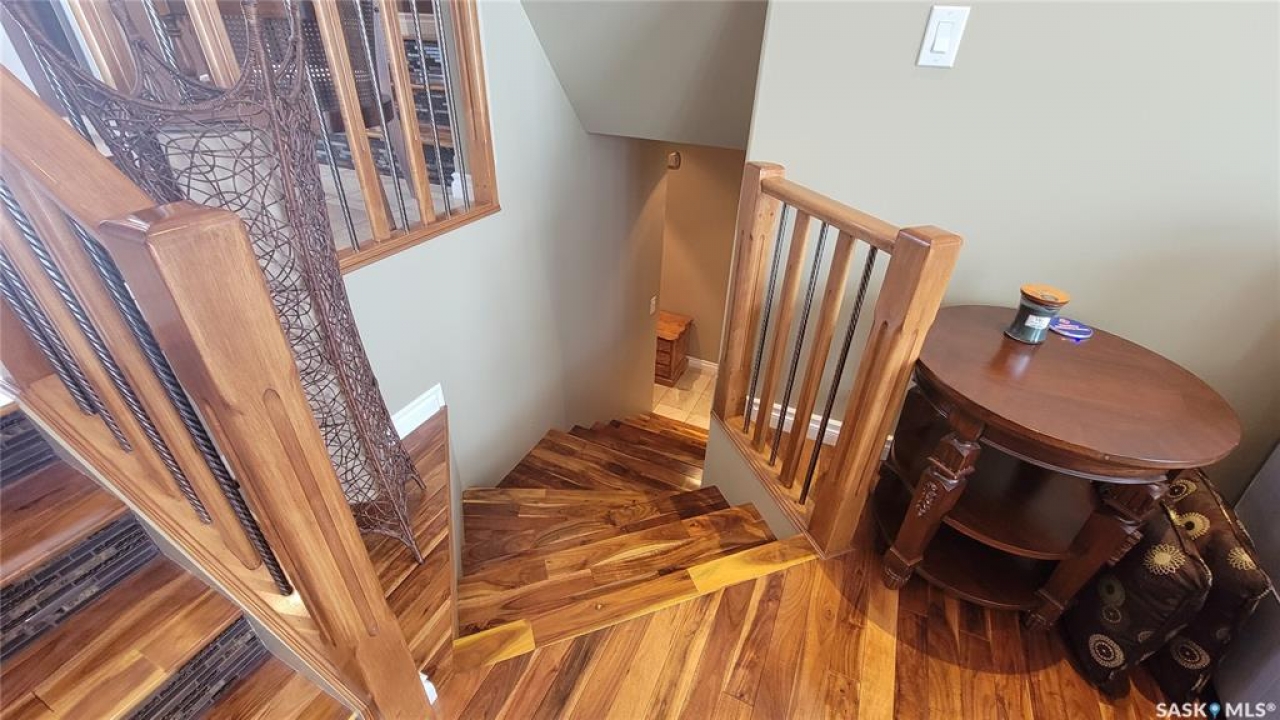 Executive style 1613 sq. ft. 4 level split home built in 2009; sellers are original owners and tons of pride showing in this one; 2 bedrooms and 2 baths on upper level, 1 bedroom on 1st lower level; spacious primary bedroom features a walk-in closet plus 3 pce ensuite with a beautiful tiled walk-in shower; main bath features a corner jetted soaker air tub; Kitchen and dining has 12' ceilings, tons of cherry finish maple cabinets, quartz counter tops, expansive island with built-in dishwasher, walk in pantry and limestone tile flooring, built in oven & microwave stainless steel combo, 36" ceramic stove top; reverse osmosis; main floor laundry/mudroom; living room features a vaulted ceiling, stunning acacia hardwood floors & natural gas fireplace; your first lower level hosts family room with a natural gas fireplace, 3rd bedroom & 3pc bath; very bottom or 4th level is unfinished but can be a future bedroom if so needed; 14' ceilings in finished double attached garage with in-floor heat, basement has plumbing installed for in floor heat too; 35 year asphalt shingles; hardy plank siding; ICF block basement; underground sprinklers; 12x18 garden shed; triple paned Argon windows; air to air ex-changer; water softener; sump pump; central air conditioning (2018); new humidifier installed in fall of 2023; so many more features; price out cost to build new and you will see the value in this one!
