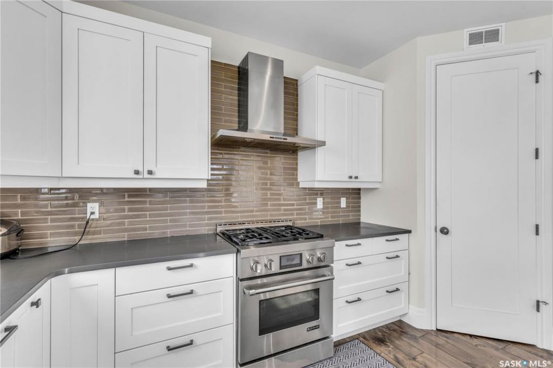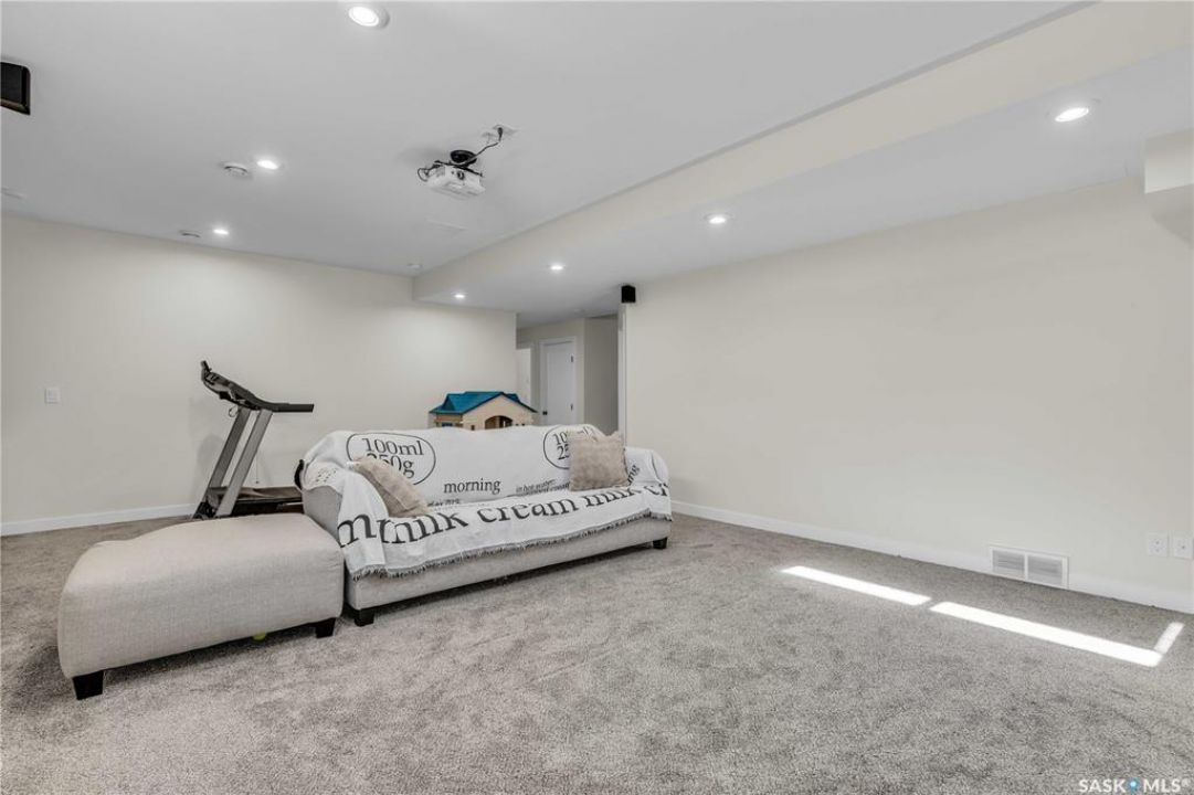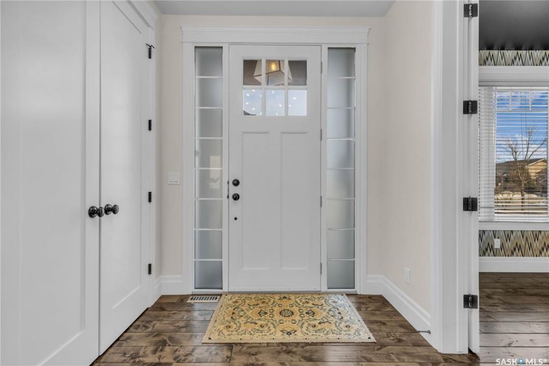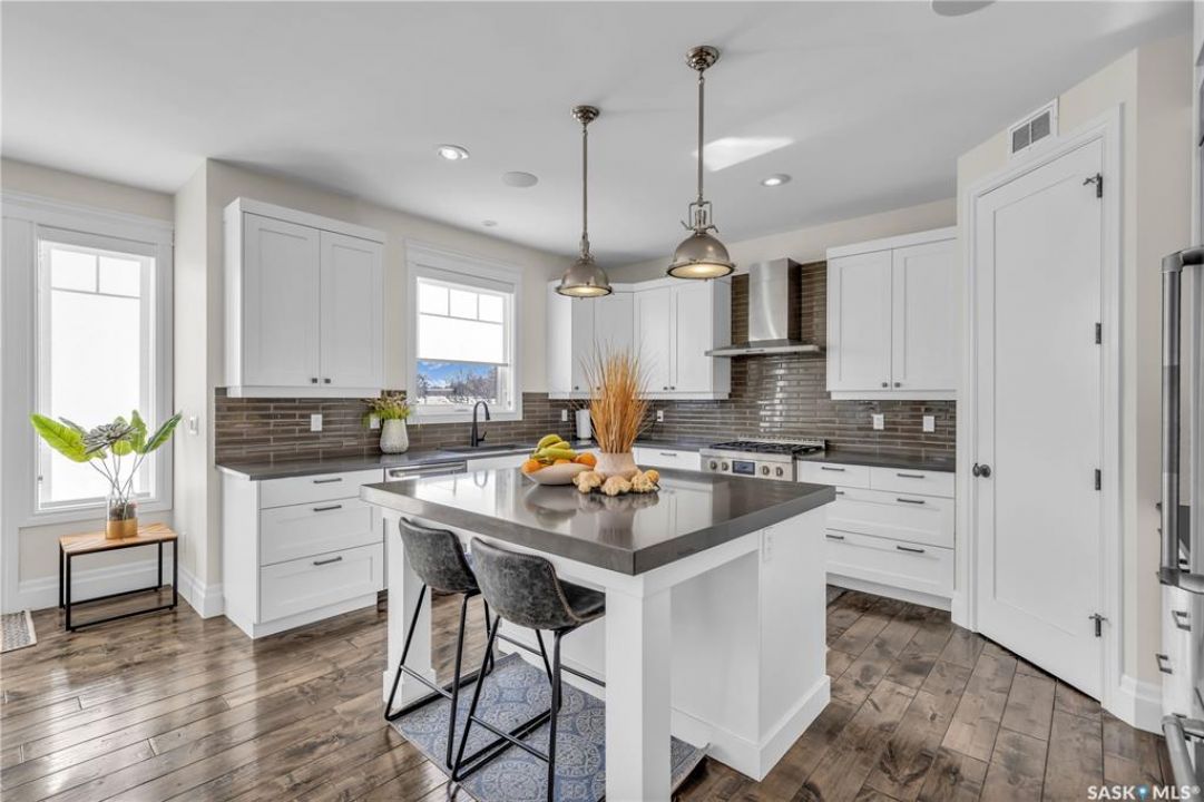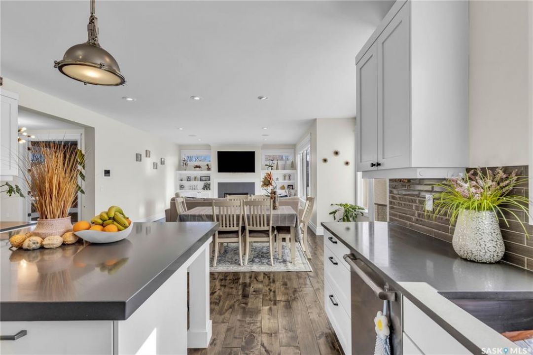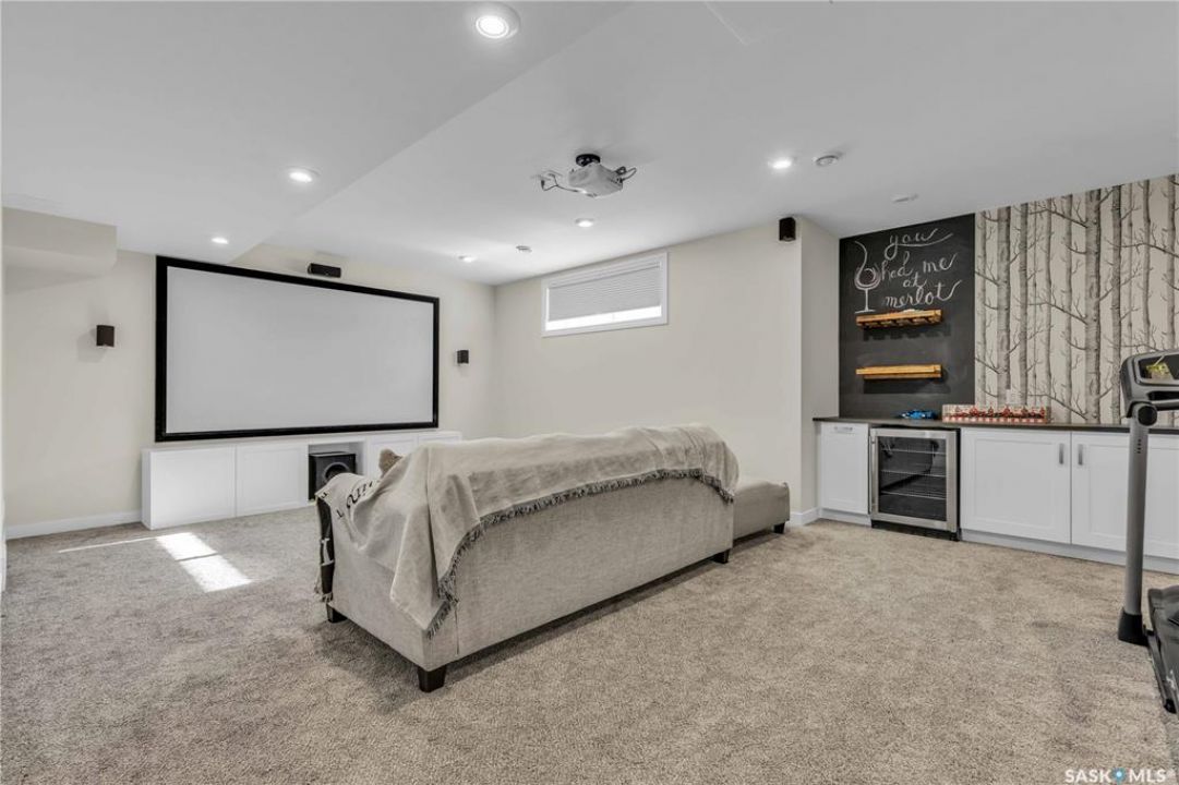 Welcome to this beautifully designed 2,434 sq. ft. two-storey home, custom built by Valentino Homes, offering timeless elegance, high-end finishes, and a premium location backing directly onto Arbor Creek Park. Upon entry, you are greeted by 9-foot ceilings, solid 8-foot core interior doors, Restoration Hardware lighting, and an abundance of natural light flowing through wide windows. The open-concept main floor showcases a spacious living room with a natural gas fireplace and custom cabinetry, seamlessly connected to the dining area and a stunning white kitchen featuring quartz countertops, island with seating, corner pantry, and premium JennAir appliances. A main floor office with French doors, a powder room, and a functional mudroom with direct access to the heated 24x25 double garage (10' ceiling) complete this level. Upstairs, the luxurious primary suite offers a walk-in closet the size of a room and a spa-like ensuite with heated tile floors, dual vanities, an oversized walk-in shower, and private water closet. Two additional large bedrooms with park views and hardwood floors, a 4-piece bath, and a bright laundry room with a window provide comfort and convenience for family living. The fully finished basement is designed for entertainment and relaxation, featuring a massive family room with projection screen, custom wet bar, a fourth bedroom, full bathroom, and plenty of storage space. Additional highlights include hand-scraped hardwood floors, built-in audio with Control4 system, custom blinds, and 9-foot ceilings on all three levels. The low-maintenance south/west-facing backyard offers private gated access to Arbor Creek Park, making it perfect for peaceful walks and enjoying stunning views year-round. This is an exceptional opportunity to own a truly remarkable home in one of Saskatoon's most desirable neighborhoods.